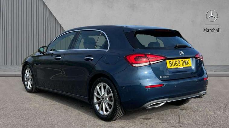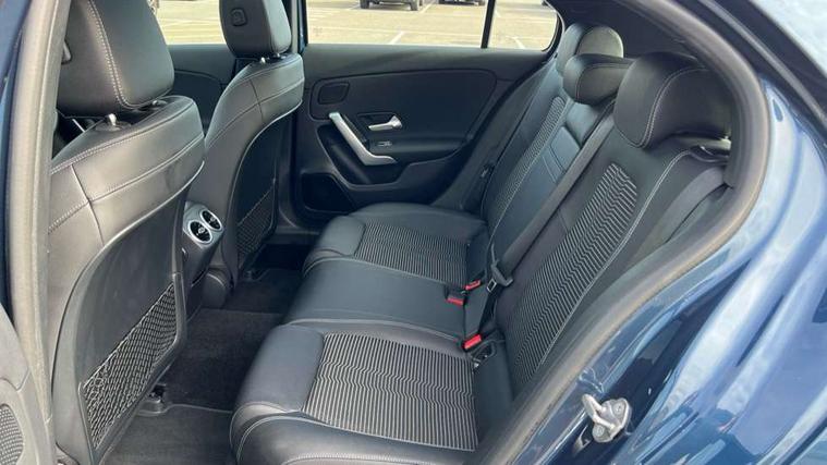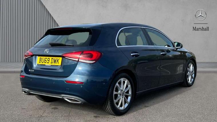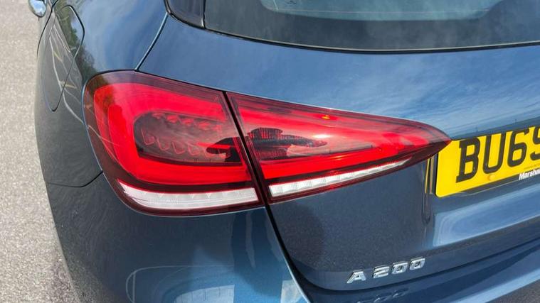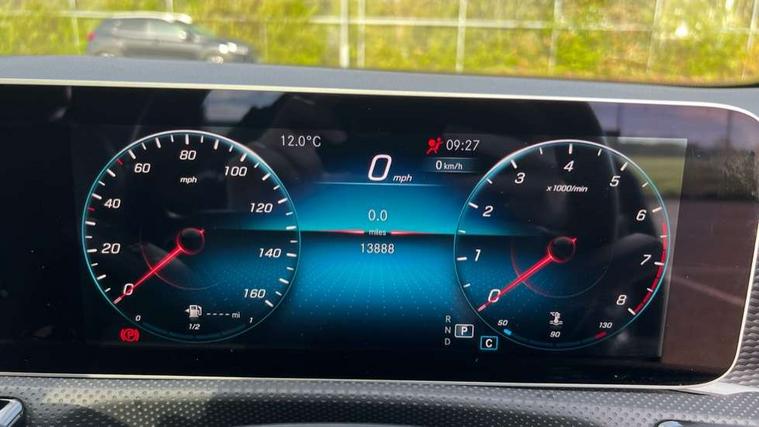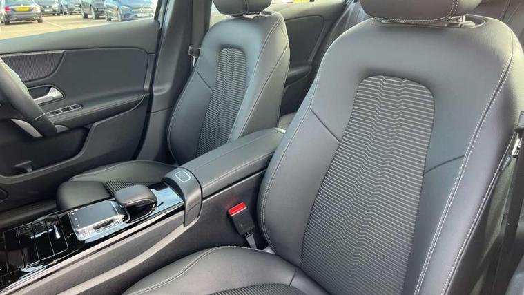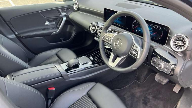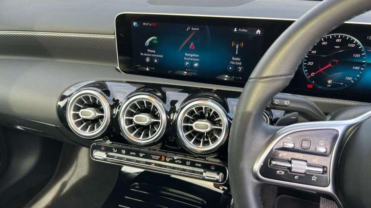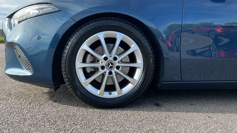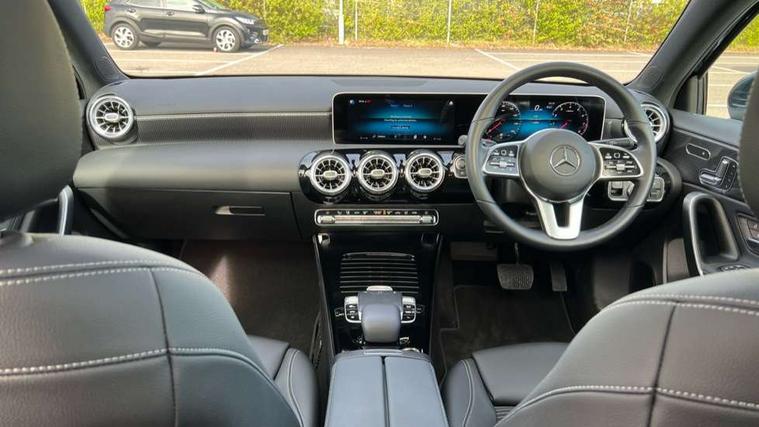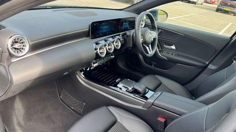 10.25" Digital instrument cluster display screen, 180 degree rear view camera with parking guidelines, Active lane keep assist, Active park assist with parktronic system including front and rear parking sensors, Attention assist, Brake pad wear indicator warning light, Direct steering, DYNAMIC SELECT with a choice of driving modes (ECO, Comfort, Sport and Individual), ECO start/stop function, Fluid level warning indicator for fuel, oil, coolant and washer fluid, Hard-disk navigation, Hey Mercedes Voice activation, Lamp failure indicator, Mercedes me connect including emergency call system, accident recovery, breakdown and maintenance management, Outside temperature gauge, Radio aerial integrated into roof spoiler, Service indicator (ASSYST), Speed sensitive power steering, Trip computer, Lowered comfort suspension, DAB Digital radio, Dual bluetooth interface, 2 USB ports (type C), MBUX multimedia system with DAB digital radio and touchpad including satellite navigation, Mid-range sound system, 4 Electric Front and Rear windows, Active aerodynamics with AIRPANEL in the front apron, Adaptive brake lights, Blue tinted glass, Body colour bumpers, Body colour door handles, Body colour side skirt, Body coloured door mirrors, Chrome beltline trim, Chrome weather strip, Diamond radiator grille with black pins with one louvre in silver + chrome insert, Electric adjustable and heated door mirrors with integrated LED side indicators, Exhaust system - Twin trapezoidal tailpipes in polished stainless steel, Heated glass rear windscreen + timer control, LED daytime running lights, LED tail lamp, LED third brake light, Multibeam LED with adaptive highbeam assist plus, Panoramic sliding sunroof, Rain sensor windscreen wipers, Rear fog lights, Rear wiper, 12V socket, 3 Spoke leather multi function steering wheel, 40:20:40 split folding rear seats, Air vents surround and cruciform nozzle in silver chrome, Artico man-made leather/Fleron fabric upholstery, Auto Mercedes-Benz child seat recognition sensor, Black roof lining, Controller on centre console with chrome surround, Cup holder and stowage compartment lighting, Electric front seats with memory function, Floor mats, Freight packaging without tie-down hooks, Front centre armrest with storage compartment, Front comfort seats with adjustable head restraints, Front door sills with Mercedes Benz lettering, Front footwell lights, Front reading lamps in left and right console downlighter, Front seat backs luggage nets, Front seat cushion length adjustment, Front signal exit lamp, Front vanity lights, Gearshift paddles on steering wheel, Handle recess/closing light, Heated front seats, Height/reach adjustable steering column, Illuminated door sills, Illuminated glove compartment stowage, Interior lighting - 64 colour Ambient lighting, ISOFIX Child seat top tethers and anchor fixings, Luggage compartment cover, Oddments tray lighting, Rear armrest, Rear head restraints, Rear Reading Lamps, Seat occupancy sensor for front passenger seat, Spectacles compartment for driver, Storage compartment under load area floor, Stowage compartment in centre console with retractable cover, Sunvisors with illuminated vanity mirrors, Touchpad, Touchpad illumination, Twin front cupholders, Two zone thermotronic luxury automatic climate control, Light and sight pack - A Class, Mirror package - A Class, Seat comfort pack - A Class, 3 rear 3 point seatbelts, ABS with Brake Assist, Active bonnet, Adaptive brake assist with hold function and hill start assist, Childproof locks manually operated for rear doors and electrically operated for rear power windows, Crash responsive emergency lighting, Driver and passenger head and side airbags, Drivers knee airbag, Dual stage driver/passenger airbags, Electronic parking brake, ESP curve dynamic assist, ESP with ASR, Front and rear seatbelt reminder, Tyre pressure monitoring system, Warning triangle and first aid kit, Window airbags, Alarm system/interior protection/immobiliser, Keyless entry lock/unlock, Remote central locking and crash sensor with emergency opening function, Black seatbelts, Dark carbon fibre interior trim, 17" 10 spoke light alloy wheels painted in vanadium silver, Summer tyres, Tirefit sealant kit,