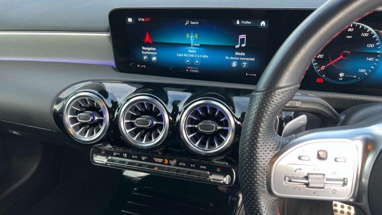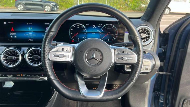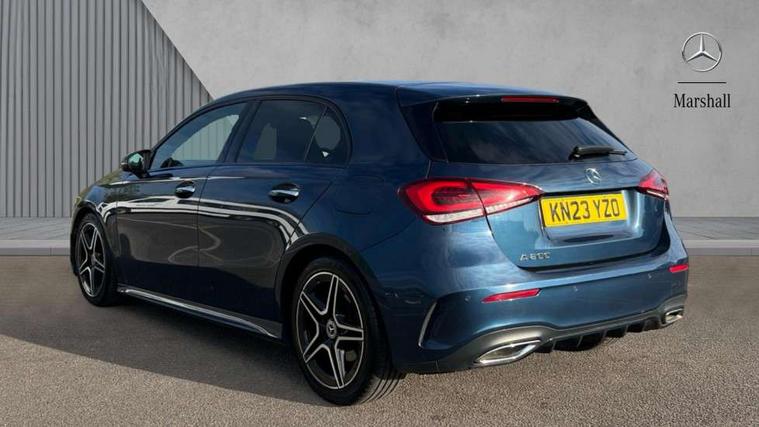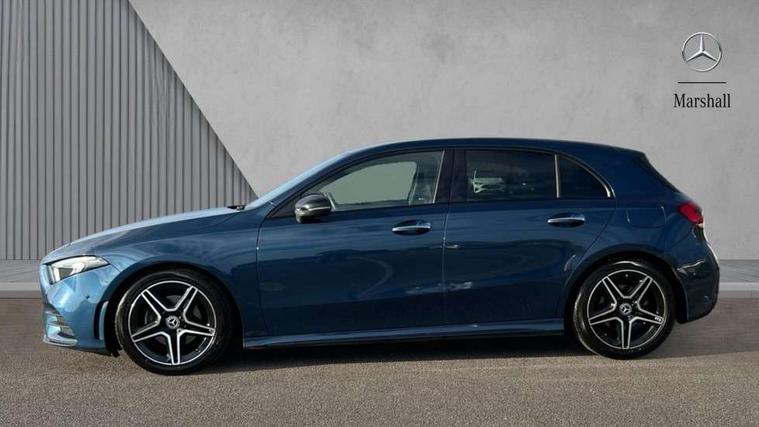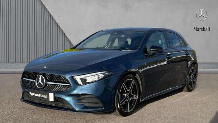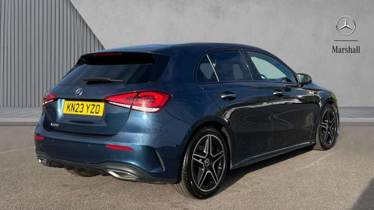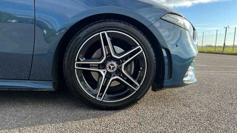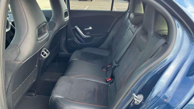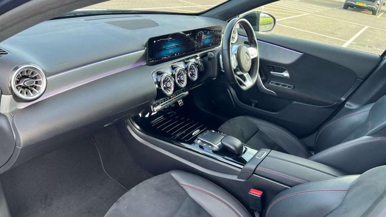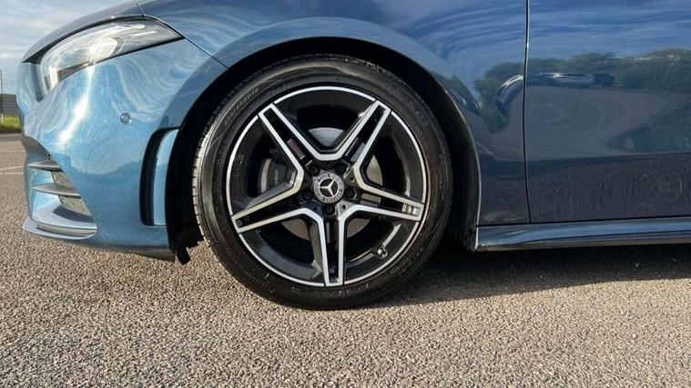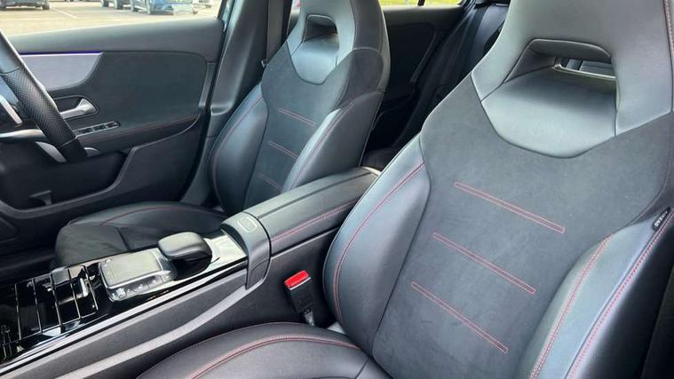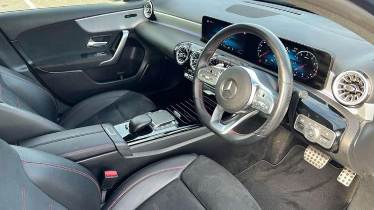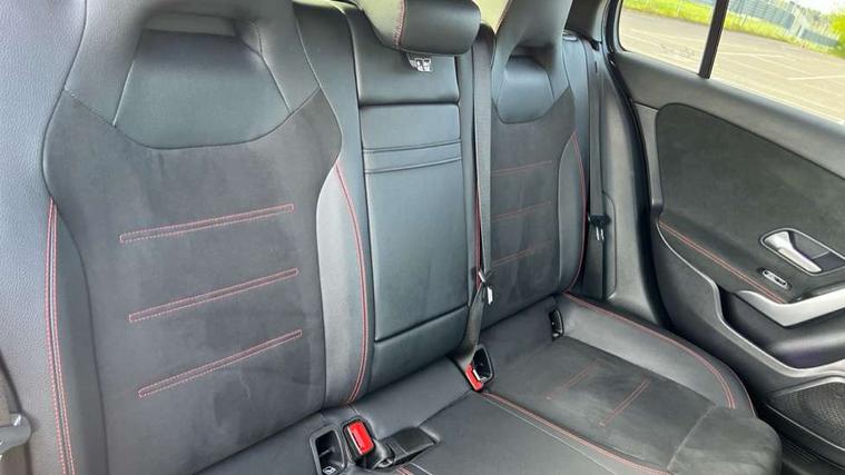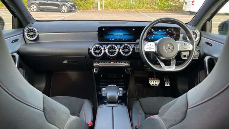 10.25" Digital instrument cluster display screen, 10.25" media display, 180 degree rear view camera with parking guidelines, Active parking assist with visual and audible warning of detected obstacles, Attention assist, Brake pad wear indicator warning light, Car wash mode, Cruise control + speed limiter, Direct steering, Dual bluetooth interfaces, DYNAMIC SELECT with a choice of driving modes (ECO, Comfort, Sport and Individual), ECO start/stop function, Fluid level warning indicator for fuel, oil, coolant and washer fluid, Hard-disk navigation, Hey Mercedes Voice activation, Lamp failure indicator, Lane keeping system, Mercedes me connect including emergency call system, accident recovery, breakdown and maintenance management, Mercedes me remote services, Outside temperature gauge, Owners manual in English, Pre-installation for private car sharing, Preinstallation for Mercedes Benz link, Service indicator (ASSYST), Smartphone integration with Apple CarPlay and Android auto, Speed limit assist, Speed sensitive power steering, Trip computer, Ultrasonic sensors positioned in the front and rear bumpers, Lowered comfort suspension, Rear axle torsion beam, 2 USB ports (type C) in rear stowage compartment and one in front of center console, 6 speakers, DAB Digital radio, MBUX multimedia system with DAB digital radio and touchpad including satellite navigation, Mercedes-Benz sound system - 100W, 4 Electric Front and Rear windows, Adaptive brake lights, AMG bodystyling - Front apron with splitter in chrome, rear apron with chrome trim and chrome visible trim elements in tailpipe, Automatic headlights, Black weather strip, Body colour bumpers, Body colour door handles with chrome inserts, Body colour side skirt, Electric adjustable and heated door mirrors with integrated LED side indicators, Exclusive diamond radiator grille, Exhaust system - Twin visible tailpipes in polished stainless steel, Headlamp assist automatic headlamp activation, Heated glass rear windscreen + timer control, LED High level third brake light, LED high performance headlamps with integrated LED daytime running lights, LED tail lamp, Privacy glass, Radio aerial, Rain sensing windscreen wipers with two sensitivity settings, Rear fog lights, Rear side wing doors, Rear wiper, 3 seat bench in 2nd row, 3 Spoke flat bottom leather multi function steering wheel with perforated leather in grip area, 40:20:40 split folding rear seats, Artico man-made leather/Microfibre Dinamica upholstery with red contrast stitching, Auto Mercedes-Benz child seat recognition sensor, Black air vents with surround in silver chrome, Black roof lining, Brushed stainless steel sports pedals with rubber studs, Controller on centre console with chrome surround, Floor mats with AMG lettering, Front centre armrest with storage compartment, Front seat backs luggage nets, Galvanished gear shift paddles on steering wheel, Heated front seats, Height/reach adjustable steering column, Illuminated Mercedes Benz lettering front door sills with changeable cover, Interior lighting - 64 colour Ambient lighting, Interior mirror with reading lamps in black and frameless, Manual height adjustable front seats, Rear armrest with 2 cupholders, Rear head restraints, Seat occupancy sensor for front passenger seat, Single front passenger seat, Sports seats with integrated headrests, Stowage compartment in centre console with retractable cover, Sunvisors with illuminated vanity mirrors, Touchpad on center console, Twin front cupholders, Two zone thermotronic luxury automatic climate control, Light and sight pack - A Class, Mirror package - A Class, Night pack - A Class Saloon/Hatchback, Seat comfort pack - A Class, 3 rear 3 point seatbelts, ABS with Brake Assist, Active bonnet, Active brake assist includes forward collision warning system with autonomous braking, Adaptive brake assist with hold function and hill start assist, Childproof locks manually operated for rear doors and electrically operated for rear power windows, Crash responsive emergency lighting, Driver and passenger head and side airbags, Drivers knee airbag, Dual stage driver/passenger airbags, Electronic parking brake, ESP curve dynamic assist, ESP with ASR, Front and rear seatbelt reminder, Front brake callipers with Mercedes Benz lettering, ISOFIX and top tether child seat fixing points in two outer rear seats, Tyre pressure monitoring system, Warning triangle and first aid kit, Window airbags, Alarm system/interior protection/immobiliser, Keyless entry lock/unlock, Keyless Go, Remote central locking and crash sensor with emergency opening function, Urban guard vehicle protection system with immobiliser and interior protection, Black seatbelts, Matrix look light longitudinal grain aluminium trim element, 18" AMG 5 twin spoke light alloy wheels aerodynamically optimised painted in black with highsheen finish, Summer tyres, Tirefit sealant kit,