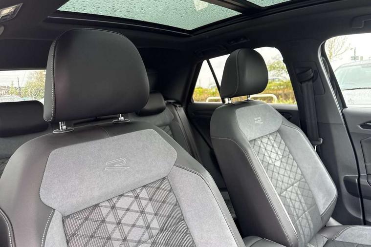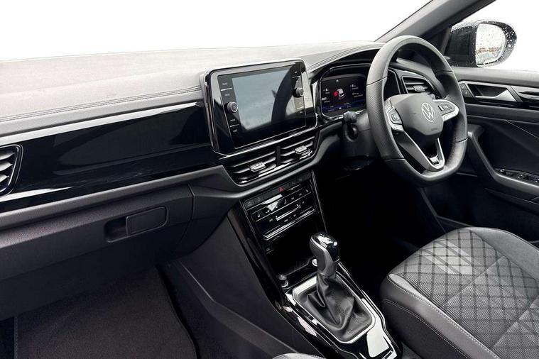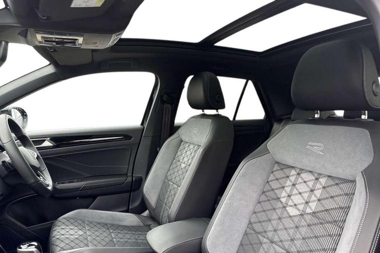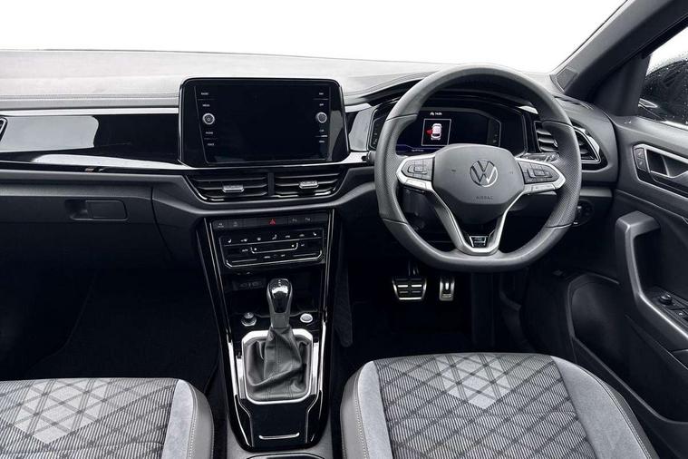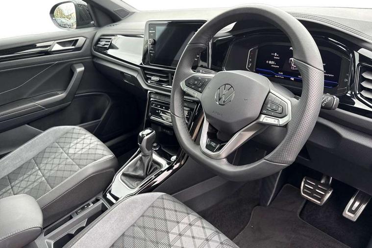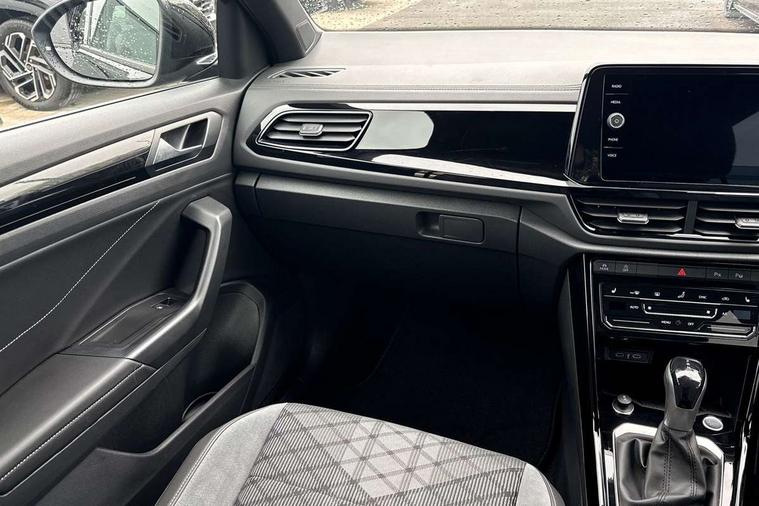 10.25" Digital cockpit pro, Advanced driver attention and drowsiness monitor, Emergency call service, Lane keeping system Lane Assist, Mobile phone interface, Modified key software - reduce switch off time for key status change to Long no motion, Online services, Park assist including front and rear parking sensors, Power assisted speed sensitive steering, Rear view camera, Service interval indicator, Tailgate/trunk lid release from outside, Think blue trainer driver tips and journey analysis, Warning sound and light for front seatbelts unfastened, Wireless app connect, Battery regeneration during braking, Rear shock absorption chassis with increased ride height, Start/stop function with battery regeneration, DAB Digital radio, Diversity antenna for FM reception, Music playback - MP3, WMA and AAC files, SD card slot, Simultaneous pairing of 2 compatible mobile devices, Title and cover art display, We Connect and We Connect Plus functionality, Advanced dynamic light assist for LED matrix headlights, Auto dimming interior rear view mirror, Automatic hazard lights activation under emergency braking, Black roof rails, Dynamic cornering light, Dynamic headlight range control with self adjusting whilst driving, Electrically adjustable and heated door mirrors, Extended roof spoiler, Exterior ambient lighting, Exterior mirrors aspherical on driver side, convex on front passenger side, External USB type C socket and charging sockets, Front windscreen wiper with intermittent wipe and 4 position delay, Heated rear window, Illuminated front grille, IQ LED matrix headlights, LED 3rd brake light, LED rear number plate lights, LED rear tail lights with dynamic turn signal, LED separate daytime running light, Light mode for poor weather, rain, fog or snow, Power windows with comfort operation and circuit breaker, Privacy glass for rear side windows and rear window, R-Line design body coloured bumpers, Rain sensor, Rear exhaust tailpipe, Rear fog light on one side and reversing lights on both sides, Rear side wing doors, Rear wash/wipe with intermittent wipe setting, Remote electrically foldable door mirrors, puddle lights and reverse activated passenger's door mirror, Tilting and sliding panoramic sunroof with rear panoramic sunroof, 12V power socket in centre console, 3 rear head restraints, 3 seat bench in 2nd row, 4 load lashing points in luggage compartment, Air care climatronic air conditoning system with active combination filter and 2-zone temperature control, Chrome plated radiator grille inserts, air vent surrounds and light switch surrounds, Door and side trim panel with leatherette insert, Drawer under drivers seat, Front + rear carpet mats, Front centre armrest, Front comfort sports seats, Front cupholders x 2, Front footwell illumination, Front reading light, Front scuff plates with R Line logo, Front seat back storage pockets, Glove compartment door with light, Instrument lighting, white adjustable panel illumination, Interior ambient lighting and surround lighting, Interior light delay, Isofix child seat preparation, Leather gearshift handle, Load-through provision with cup holder when folded down ('Unsplit rear seat bench, split folding backrest, with centre armrest), Luggage compartment lighting, Non-folding front passenger seat backrest, Single front passenger seat, Stainless steel pedals, Storage compartment in left and right luggage area, Storage compartment in rear doors, Storage compartments in driver and front passenger doors, Sunvisors with illuminated vanity mirrors, Variable boot floor, height adjustable and removable, Black design pack - T-Roc black edition plus, Easy open package with safelock - T-Roc, Sport pack with sports suspension - T-Roc, 3 point height adj front seatbelts + pretensioners, 3 point seatbelts in outer rear with ECE label, ABS, Child locks on rear doors, City emergency braking and pedestrian monitoring, Driver and front passenger airbag with front passenger airbag deactivation, Driver and front passenger safety-optimised head restraints, Drivers seatbelt reminder, Electronic parking brake, Electronic Stability Control (ESC) inc EDL (Electronic Differential Lock) and ASR (Traction Control), Front and rear passengers curtain airbag system including front side airbags, Front disc brakes, Hill start assist, Predictive pedestrian protection, Rear disc brakes, Two tone horn, Tyre pressure loss indicator, Volkswagen roadside assistance, Keyless locking and starting system keyless access with safelock, Gloss deep iron dash trim, 19" Misano black diamond turned alloy wheels with low rolling resistance and anti theft wheel bolts, Tool kit, Trims for alloy wheels, Tyre mobility kit including compressor and sealing foam,
