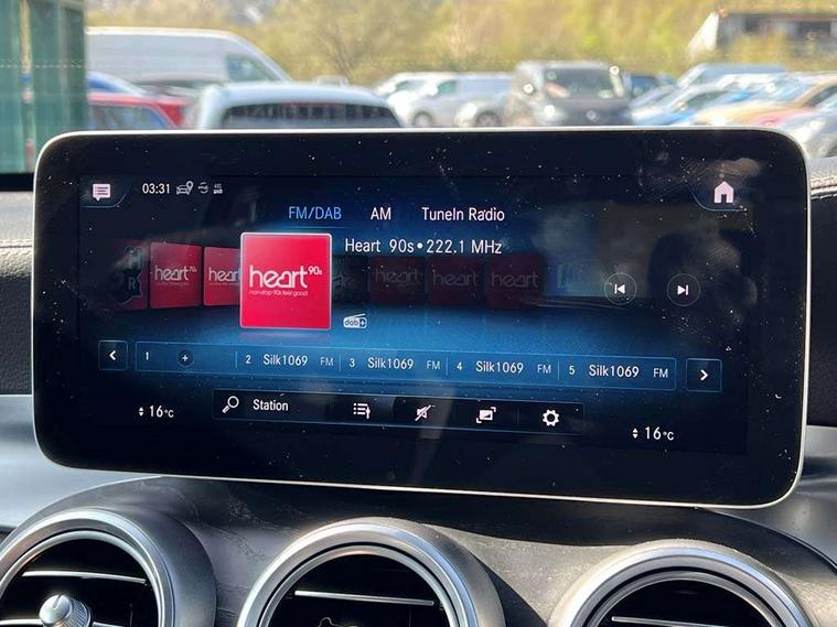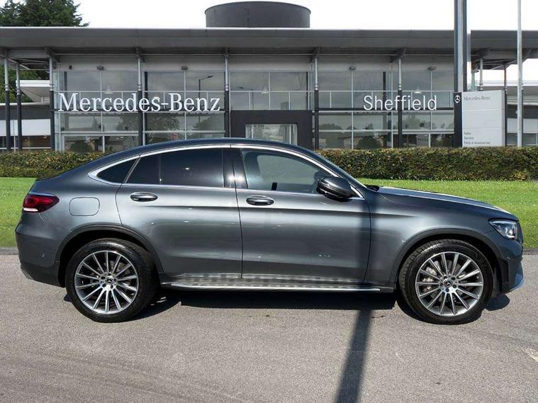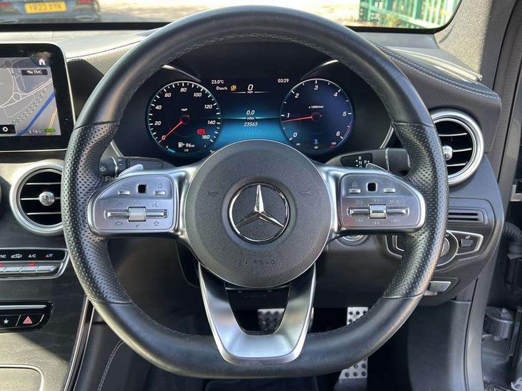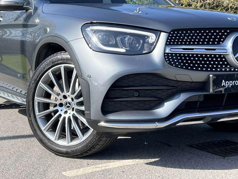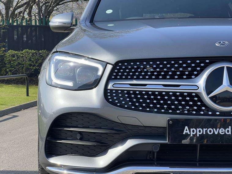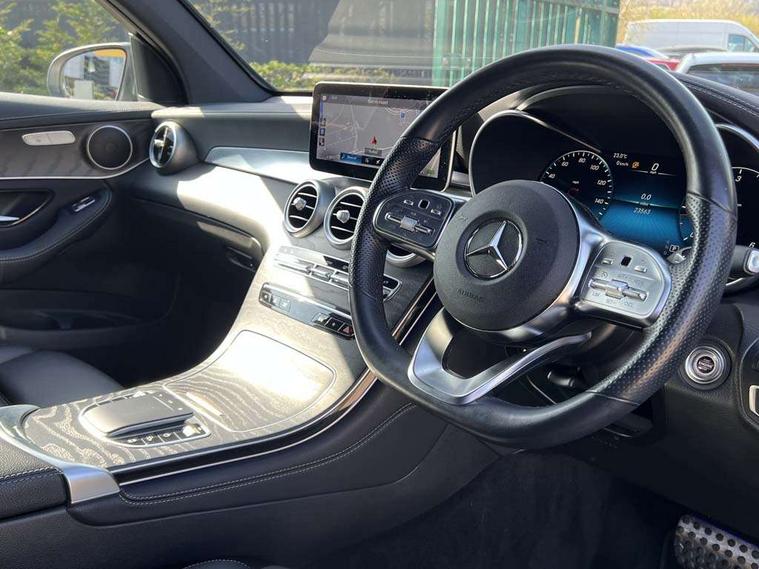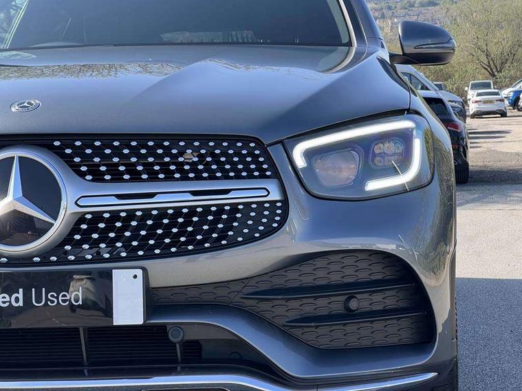 Active parking assist with parktronic system, Attention assist, Bluetooth interface for hands free telephone, Collision prevention assist plus, DYNAMIC SELECT with a choice of driving modes (ECO, Comfort, Sport, Sport+ and Individual), Easy pack automatic powered tailgate, ECO start/stop function, Hard disk navigation, Hey Mercedes Voice activation, Instrument cluster with12.3-inch digital instrument cluster display. High resolution instrument cluster screen with choice of three display styles, MBUX augmented reality for navigation, MBUX Interior assistant, Mercedes connect me with remote online services, Multi function trip computer, Outside temperature display, rear seatbelt status indicator, Remote boot release, Reversing camera, Service indicator (ASSYST), Smartphone integration with Apple CarPlay and Android auto, Traffic sign assist, Wireless charging, 4MATIC permanent four wheel drive, 50 litre fuel tank, 9G TRONIC plus automatic transmission with steering column gear selector, DIRECT SELECT steering wheel gearshift paddles, Diesel particulate filter, Sports suspension tuned for improved handling and driving dynamics, DAB Digital radio, MBUX multimedia system with DAB digital radio and touchpad including satellite navigation, Media display 10.25-inch touchscreen display, Mercedes Benz sound system (225w) includes mid-range sound system, Pre installation for Mercedes Benz Link, USB ports x 2 in centre console, Adaptive brake lights, AMG bodystyling - AMG front apron with sporty air intakes and chrome trim element, AMG diffuser-look rear apron with insert in black, Body colour door mirrors, Body coloured bumpers, Electric windows one touch open/close, Electrically adjustable and heated door mirrors, Front and rear exterior chrome trim, Headlamp assist automatic headlamp activation, LED tail lamp, Multi beam LED headlamps with 84 indiviually control LED, daytime running lamps, Active Light, cornering light, enhanced fog lamp, adaptive Highbeam Assist, Privacy glass with dark glass from B pillar backwards, Radiator diamond grille, Rain sensor windscreen wipers, Range adjustable headlights, Rear wiper, Running boards, Tinted glass all round with single layer safety glass, Two chrome plated tailpipe trim elements, 2 way rear head restraints, 3-spoke multifunction AMG steering wheel in black nappa leather with flattened bottom section, chrome inserts and perforated leather in grip area, 40:20:40 split folding rear seats, Ambient lighting, AMG floor mats with edging and embroidered AMG lettering, AMG sports seats, Automatic child seat recognition sensor, Black roof lining, Dividing net - rear, Double cup holder in centre console, Front armrest with storage box, Front door sills with Mercedes Benz lettering, Front head restraints, Front seats with electric adjust (backrest, height and seat cushion inclination) with 4 way electric lumbar support and manual cushion depth adjust, Heated front seats, Height/reach adjustable steering column, Illuminated and lockable glove compartment, Leather upholstery, Rear top tether child seat ISOFIX attachment, Sports pedals with stainless steel surfaces and rubber studs, Steering wheel with touch control buttons, THERMATIC automatic climate control, Easy-pack load compartment cover, Interior lighting pack - GLC, Mirror pack - GLC, Storage pack - GLC, 3 rear 3 point seatbelts, Active bonnet, Adaptive brake system with HOLD function and brake drying in the wet, ASR, Black seat belts, Brake calipers with Mercedes-Benz lettering + perforated brake discs, Child proof door locks, Dual-stage airbags - driver and front passenger, driver knee bag and window bags for driver, front passenger and rear passengers, Electronic parking brake, Electronic stability programme (ESP) with curve dynamic assist and cross wind assist, Front and rear seatbelt reminder, Front passenger seat occupancy sensor, Hill hold function, Tyre pressure monitoring system, Warning triangle and first aid kit, Alarm system/interior protection/immobiliser, Automatic door locking, KEYLESS-GO starting function, Remote central locking, Open pore black ash wood trim,
