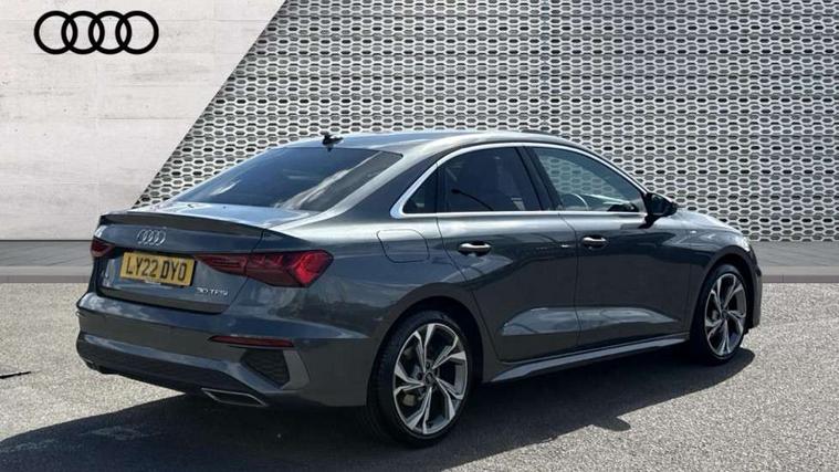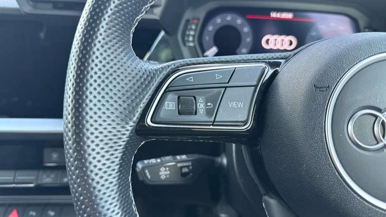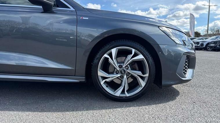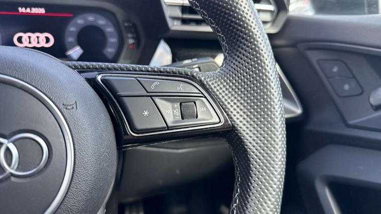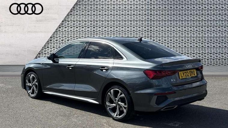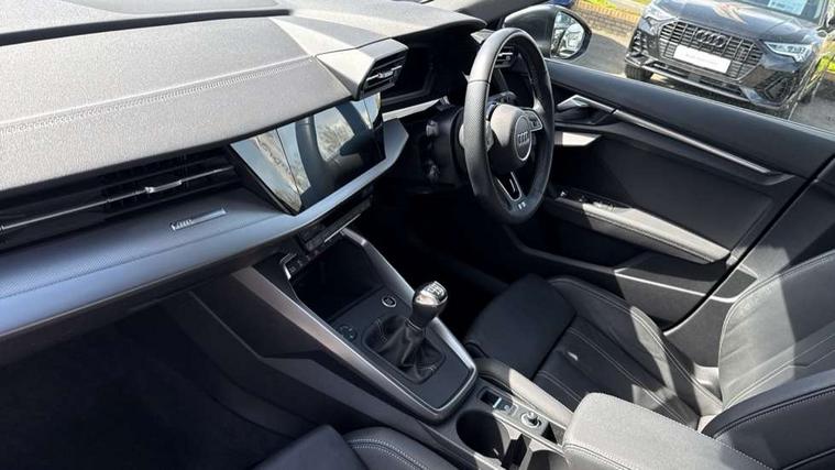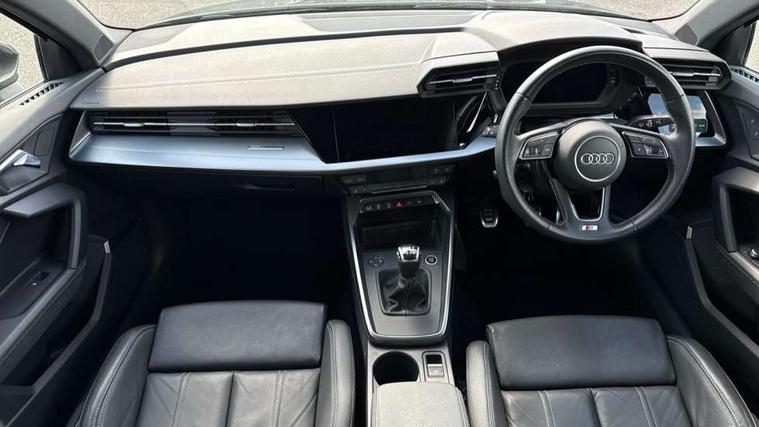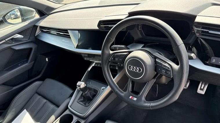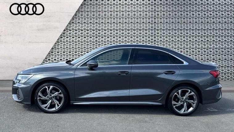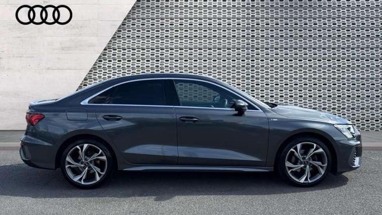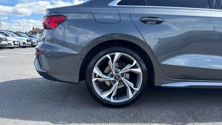 Audi connect emergency call and service, Audi drive select (Auto, Comfort, Dynamic and Individual), Audi smartphone interface, Audi Virtual Cockpit - 10.25" digital and colour instrument cluster, Automatic start/stop system with recuperation, Bluetooth interface, Collision avoidance assistant, Cruise control + speed limiter, Electromechanical power speed sensitive steering, Lane departure warning system, MMI Navigation Plus with high resolution 10.1" colour touch screen display, Rear parking sensors, Service indicator, Voice control system with natural language interaction, 2x USB Type C ports (for charging and data transfer), 6 passive loudspeakers, CD player, DAB Digital radio, 3rd brake light, Acoustic glass windscreen, Aluminium window trim, Auto dimming frameless rear view mirror, Electrically adjustable/heated/folding/auto dimming door mirrors with integrated LED indications + kerb view function for passenger side, Front electric windows, Illuminated door sills with aluminium inserts at the front with S logo, LED daytime running lights, LED headlights with LED rear lights and dynamic rear indicators, Light and rain sensors, Model and engine designation badges at rear, Privacy glass - dark tinted rear window, rear door and side windows, Rear boot, Rear electric windows, Rear side wing doors, S line bumpers, S roof spoiler, 12V socket and storage compartment in front centre console, 3 seat bench in 2nd row, 40/20/40 split folding rear seat bench with cupholder, Black cloth headlining, Dual zone electronic climate control, Front and rear centre armrest in leather, Front and rear headrests, Front/rear floor mats, Height and reach adjustable steering wheel, Illuminated vanity mirror, Interior lighting - glove compartment light and right hand side, Luggage compartment floor covering, Manual boot compartment lid, Manually adjustable front sport seats, Seat side bolsters, Single front passenger seat, Stainless steel pedals and front footrest in black, Twin leather upholstery with front sports seats S embossed logo, Aluminium interior elements pack - A3, S line styling pack - A3 Saloon, 3x3 point rear seat belts, Driver and front passenger airbag with passenger airbag deactivation, Electronic Stabilisation Control (ESC) including ABS, ASR and EDL, First aid kit with warning triangle and 2 safety vests, Front side airbags with head airbags and interaction airbag, Hill hold assist, Pre-sense front with pedestrian and cyclist detection, Seatbelt monitoring, Tyre pressure loss indicator, Anti theft alarm, Anti-theft wheel bolts, Immobiliser, Manual child locks, Remote control central locking, Aluminium air vent surrounds, Aluminium trim elements, Dark spectrum aluminium inlays, accent surfaces in the dashboard and centre console in platinum grey silk effect paint finish,