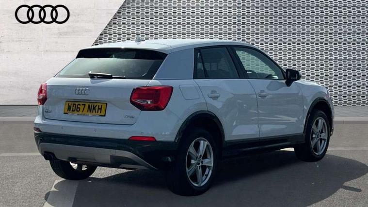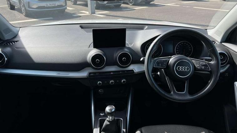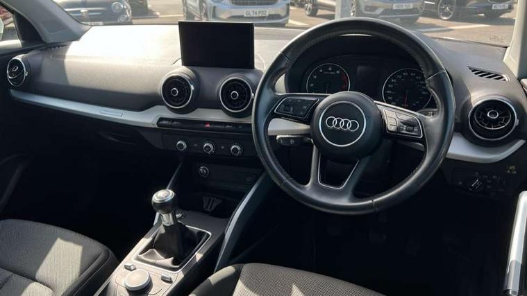 Audi drive select, Audi smartphone interface, Bluetooth hands free telephone connection, MMI - Multi Media Interface control system, MMI SD card Navigation, PAS, Service interval indicator, Voice control system, Audi music interface, Aux input, CD player, DAB digital radio module, MMI radio plus with 7" colour MMI screen and MMI controller, USB port, Body colour door mirrors, Chrome exhaust tailpipe, Door mirror integrated indicators, Electrically adjustable and heated door mirrors, Front and rear electric windows, Rear wiper, Sunband for windscreen, Aluminium door sill trims, Centre console with storage/cupholders, Front and rear door pockets, Front and rear headrests, Front and rear velour floor mats, Front centre armrest, Front sports seats, Glovebox, Height adjustable front seats, Height/reach adjust steering wheel, ISOFIX on front passenger and rear outer seats, Storage compartment in rear centre console, Non smoking pack - Q2, 3x3 point rear seatbelts, ABS+Electronic Brake force Distribution, Curtain airbags, Driver and passenger airbags, Driver and passenger side airbags, EDL + ASR, Electrically operated child locks on rear doors, Electromechanical parking brake, ESP, Multi-Collision braking, Pre-sense front with pedestrian recognition, Seatbelt warning light, Tyre pressure monitoring system, Warning triangle and first aid kit, Locking wheel bolts, Remote central locking, Thatcham category 1 alarm + immobiliser, Aluminium interior trim,