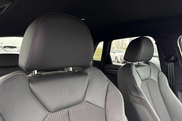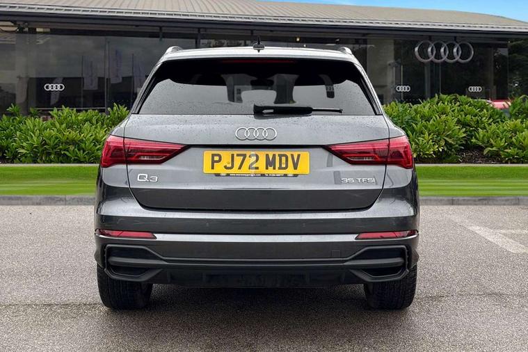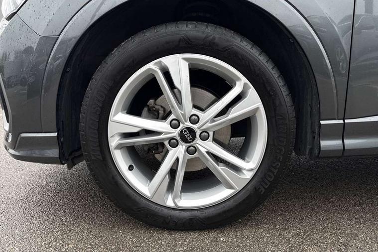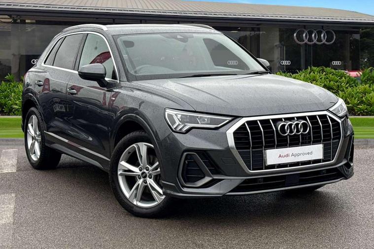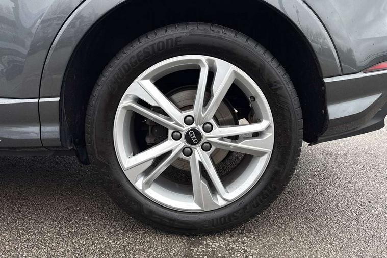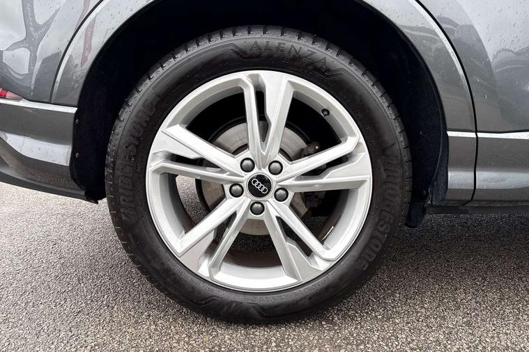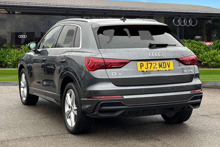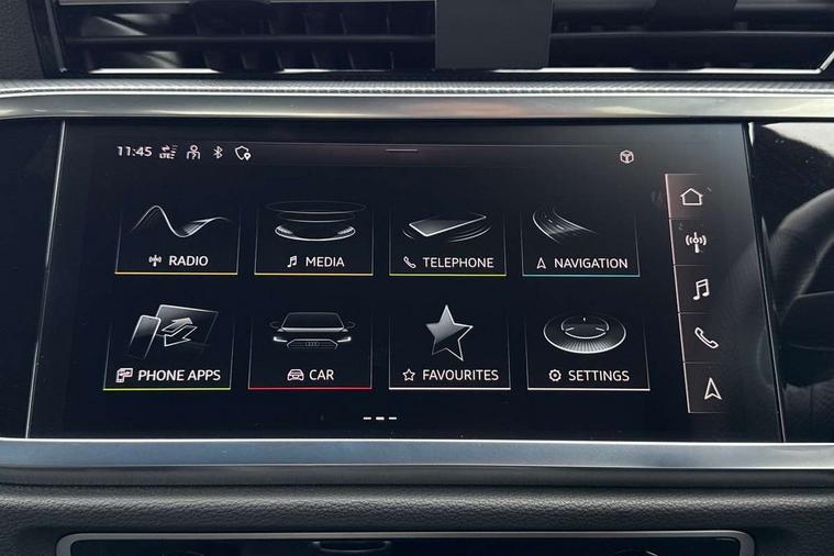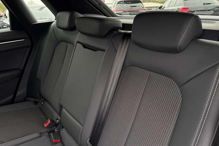 Amazon alexa Integration, Audi drive select, Audi lane departure warning, Audi Virtual Cockpit - 10.25" display, Bluetooth interface, Camera based traffic sign recognition, Cruise control + speed limiter, Legal emergency call, MMI Navigation Plus with high resolution 10.1 inch touchscreen colour display, Power operated tailgate, Progressive steering, Rear parking sensors, Service interval indicator, Smartphone interface includes wireless Apple carplay/Android Auto, Start stop system with recuperation, Voice control system with natural language interaction, Sports suspension, 2 USB-C ports with charge and data functions, 6 passive loudspeakers, DAB digital radio module, Acoustic windscreen, Aluminium roof rails, Aluminium window trim, Auto dimming frameless rear view mirror, Body colour front spoiler blade, Body coloured bumpers, Electrically folding, adjustable and heated door mirrors with integrated LED side indicators and kerb view function for passenger side, Front and rear electric windows, Front fog lights, Front side air inlets in matt platinum grey, Grille vertical bars in aluminium silver/Matt, High gloss black finish B and C pillars, LED Dynamic rear indicators, LED headlights with LED daytime running lights, LED rear lights, LED third brake light, Privacy glass dark tinted rear and rear-side windows (from B-pillar backwards), Rain and light sensors, Rear diffuser grille in grained matt black, Rear diffuser strip in matt titanium black, Rear side wing doors, Rear wiper, S line badges on front wings, S Line front and rear bumpers, Side skirt insert in matt Platinium grey, Titanium black radiator grille, Variable front intermittent wipers, 12V socket in rear centre console, 3 seat bench in 2nd row, 40:20:40 folding with manual adjustment for 60:40 forwards/backwards position and backrest angle, Adjustable rear seat bench/backrest with centre armrest and cupholder, Black cloth headlining, Dual zone electronic climate control, Front and rear black floor mats with contrast stitching in rock grey, Front and rear headrests, Front and rear roof module including reading lights, Front centre armrest, Glove compartment lighting, Height and reach adjustable steering wheel, Illuminated door sill trims with S logo, ISOFIX child seat mounting for front passenger with airbag deactivation and outer rear seat including top tether attachment point for outer rear seats, Luggage compartment light, Manual front seats with height adjustment, Perforated leather gearknob, Single front passenger seat, Stainless steel luggage compartment sill finisher, Stainless steel pedals, Ambient lighting pack - Q3, Non smoking pack - Q3, 3x3 point rear seatbelts, 6 airbags - Driver, front passenger, curtain and side windows, Audi pre-sense front with pedestrain and cyclist recognition, Electrically operated child locks on rear doors, Electromechanical parking brake, Electronic stabilisation control including ABS, ASR and EDL, Front seatbelt reminder, Hill descent control, Hill hold assist, Pre sense basic, Seatbelt monitoring, Tyre pressure warning, Warning triangle and first aid kit, Anti theft alarm, Anti theft wheel bolts, Immobiliser, Remote central locking, Dark matt brushed aluminium inlay, Detail dashboard around MMI touch colour display in glass look, black with surround in aluminium look, Leatherette door armrest,