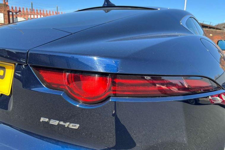 10" touch screen, Analogue dials with central TFT display - 190mph/300kmh, Android Auto, Apple CarPlay preparation, Bluetooth telephone connectivity, Cruise control + speed limiter, Driver condition monitor, Incontrol pro service, InControl remote premium, InControl Touch navigation pro, Lane departure warning system, Lane keep assist, PAS, Rear view camera, Stop/start system, Traffic sign recognition with adaptive speed limiter, Trip computer, Open differential with torque vectoring by braking, Passive suspension, Audio remote control, Digital Audio Broadcast radio-DAB, InControl app, InControl protect, Auto dimming rear view mirror, Automatic headlights, Deployable boot lid spoiler, Electric front windows, Flush exterior door handles, Gloss black front bumper beam with gloss black chin and chrome insert, Headlight washers, Infra red reflective glass, LED headlights with signature DRL, LED tail lights, P340 badge, R Dynamic badge, Rain sensing windscreen wipers, Satin black grille, Solar attenuating windscreen, Switchable active exhaust, Tinted glass, Twin centre mounted exhaust pipes, Deployable front air vents, Front centre armrest, Front headrests, Jaguar sense, Low line cubby box, Lumbar support, Luxtec centre console cover with sides, Overhead console, Pollen filter, Silver gearshift paddles, Twin front cupholders, USB with 12V socket in centre console, 6 airbags - Driver/front passenger airbags, front and rear curtain airbags and front side airbags, Anti-lock braking system (ABS), DSC - Dynamic Stability Control, Dynamic mode, Electronic brake force distribution, Electronic parking brake, Emergency brake assist, Emergency braking, Front/rear seatbelt pre-tensioners, Pedestrian contact sensing and deployable bonnet, Seatbelt reminder for driver and front passenger, Tyre pressure monitoring system, Deadlocks, Drive away door locking, Engine immobiliser, Locking wheel nuts, Perimetric and volumetric anti theft alarm, Remote central locking, Two stage unlocking, Valet mode, Graphite interior trim, Standard door trim,