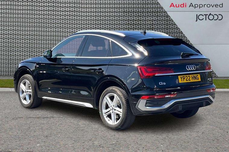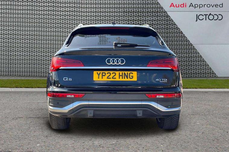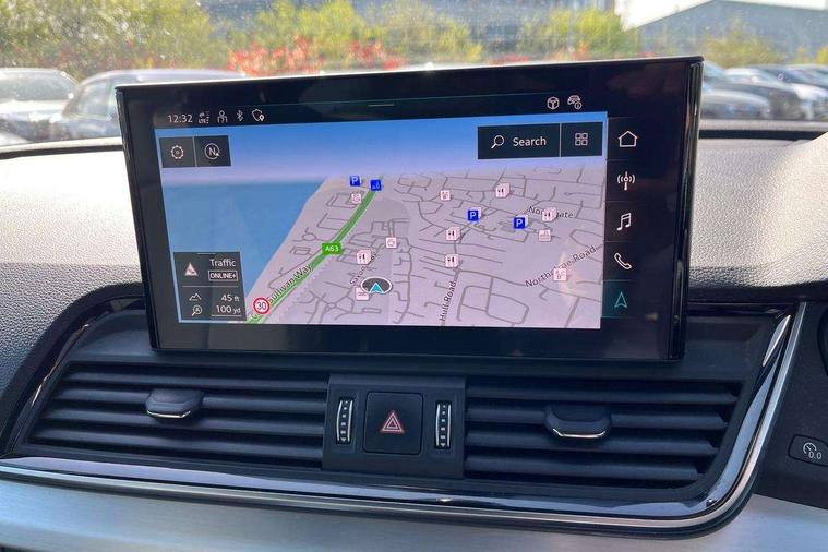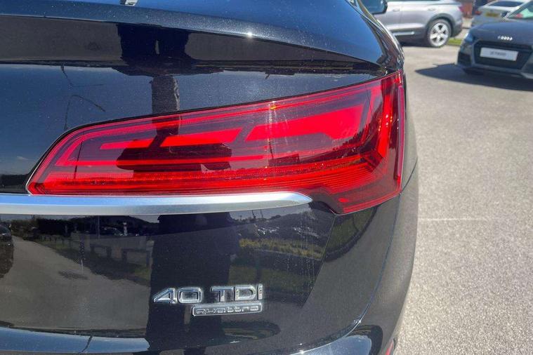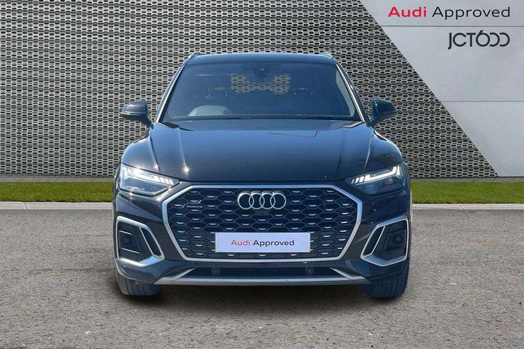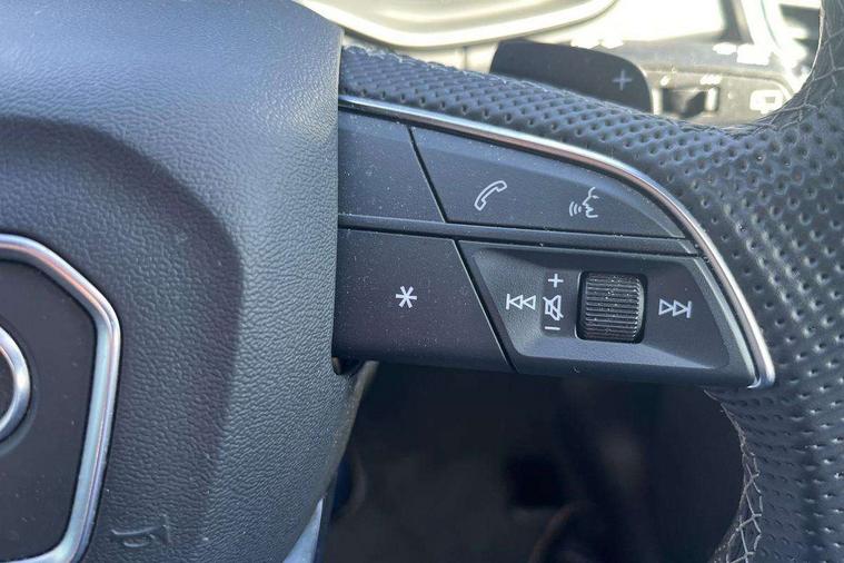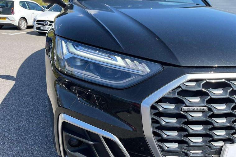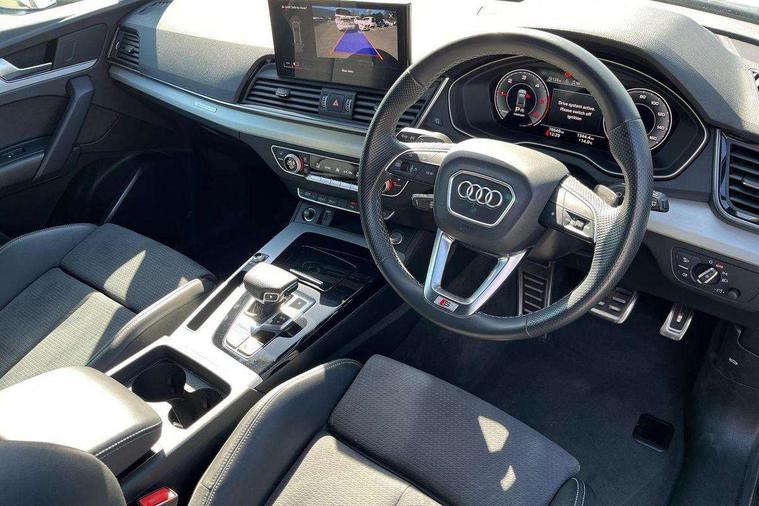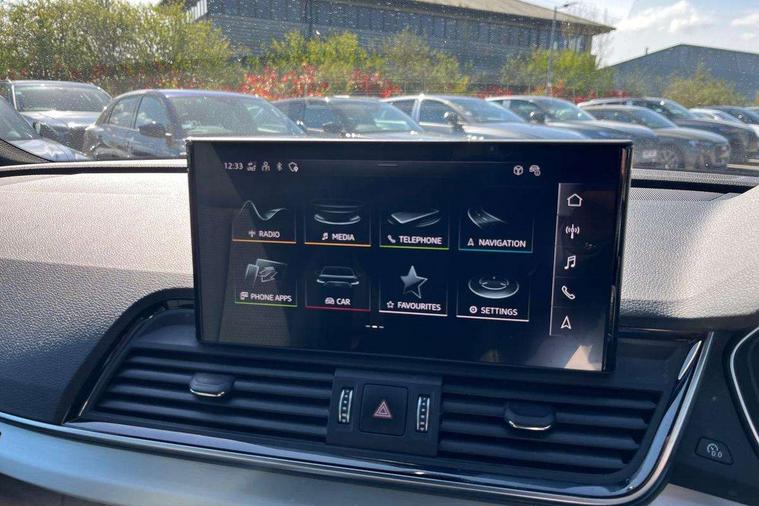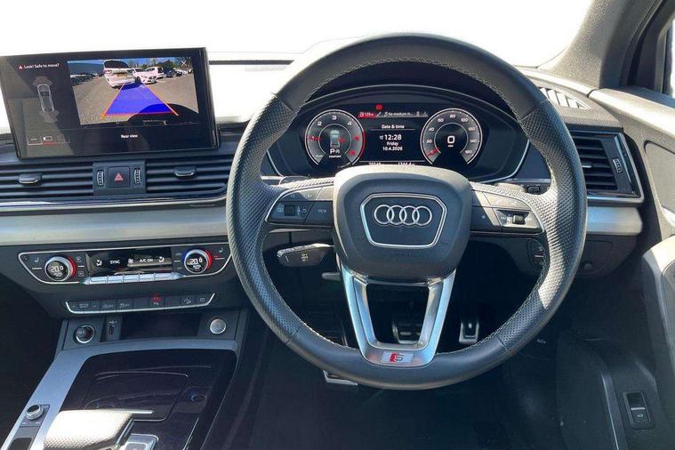 Audi connect safety and service (e-call), Audi connect with Amazon Alexa Integration, Audi drive select, Audi virtual cockpit plus with 12.3" screen and three different layout designs, Audi wireless smartphone interface, Automatic start-stop system with coasting functionality and efficiency programme, Bluetooth interface, Electro - mechanical power assisted steering, MMI navigation plus with 10.1" touch screen, Power tailgate, Reversing camera, Service interval indicator, Voice control system with Audi hotword activation "Hey Audi", Diesel particulate filter, Quattro on demand, S line sports suspension, 2 x USB charging port with aux input socket, DAB Digital radio, Acoustic windscreen, Aluminium roof rails, Audi matrix LED headlights with dynamic front and rear indicators, Auto dimming door mirrors, Auto dimming rear view mirror, Automatic headlights and windscreen wipers, Body colour door mirrors, Body colour rear diffuser with matt aluminium silver surrounds, Body colour underbody protection, Chrome plated exhaust trims, Daytime running lights, Door sills in Selenite silver, Electric adjustable/heated/folding door mirrors, Front air inlet surrounds in aluminium, Front and rear electric windows, Front radiator grille in honeycomb design, Headlight washers, High level LED brake light, Lower bumpers painted in contrast Manhattan grey, Rear chrome trim strip below lights, Rear privacy glass and rear side windows, Rear side wing doors, Rear wiper, Roof bars, S Line badges on the front wings, S Line front and rear bumpers, S Line rear spoiler, S Line side skirts, 3 rear headrests, 40:20:40 split folding 3 rear bench seat in 2nd row with rear centre armrest, Black cloth headlining, Comfort front centre armrest, Contrast stitching on seats, steering wheel and gear lever gaiter, Deluxe 3 zone electronic climate control, Front head restraints, Front/rear floor mats, Gear lever in black leather, Heated front seats, Height/reach adjustable steering column, Illuminated door sill trims with S logo, ISOFIX child seat mounting and top tether, Manual seat adjustment with 4-way electric lumbar support, Removable luggage compartment floor, Single front passenger seat, Stainless steel pedals, Sunvisors with vanity mirrors, Trunk roller cover, High gloss pack - Q5, LED interior light pack - Q5, 3 point seatbelts on all seats, 6 airbags - Driver, front passenger, curtain and side airbags, Electrically operated child locks on rear doors, Electromechanical parking brake, Electronic stabilisation control including ABS, ASR and EDL, Front passenger airbag deactivation, Hill descent control, Hill hold assist, Multi collision brake assist, Pop-up bonnet for pedestrian protection, Pre sense city, Seat belt force limiter, Seatbelt monitoring, Tyre pressure warning, Warning triangle and first aid kit, Anti theft alarm, Anti-theft wheel bolts, Keyless Go access/ignition system, Remote central locking, Matt brushed aluminium inlays,