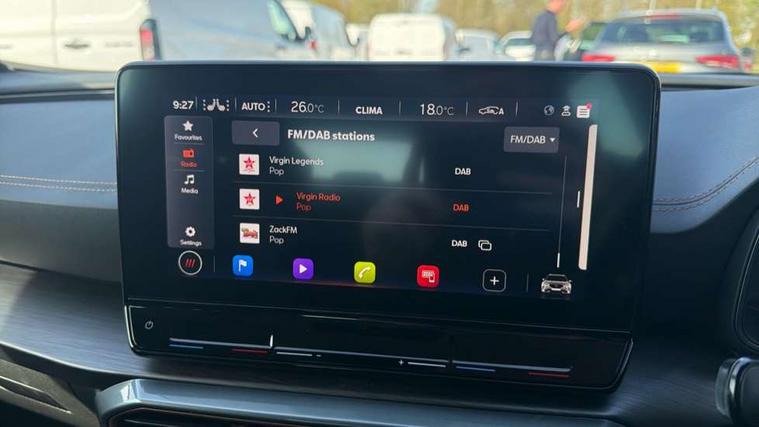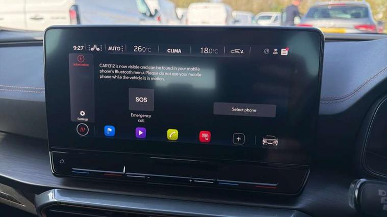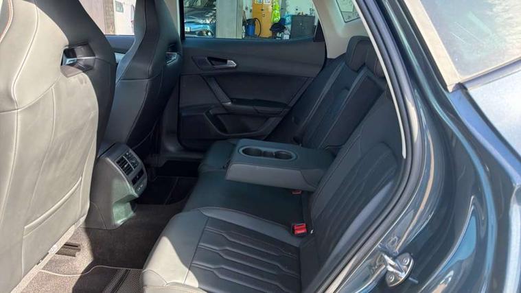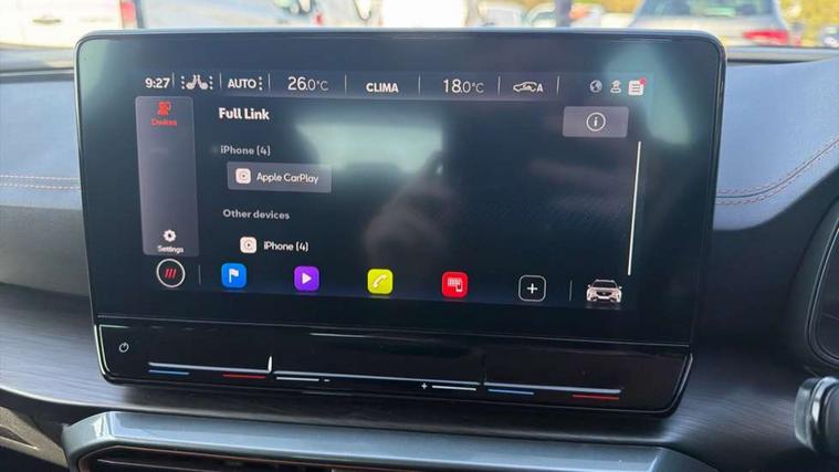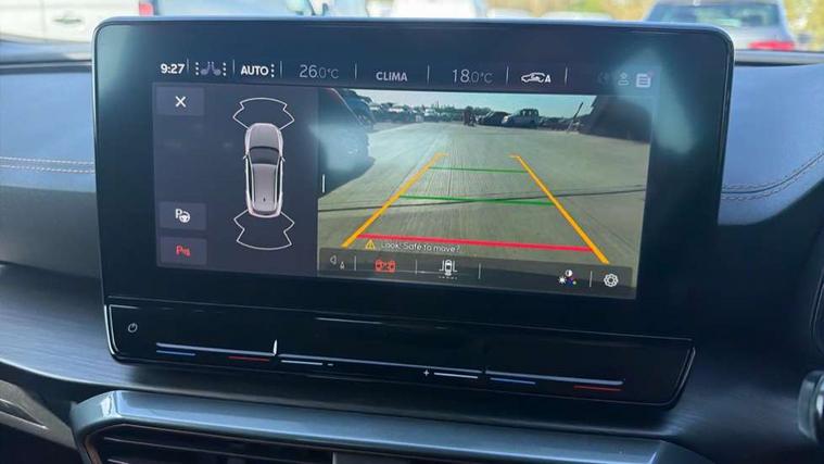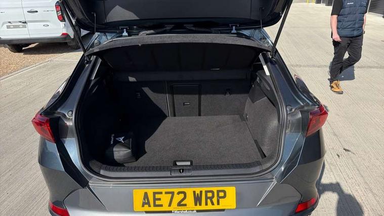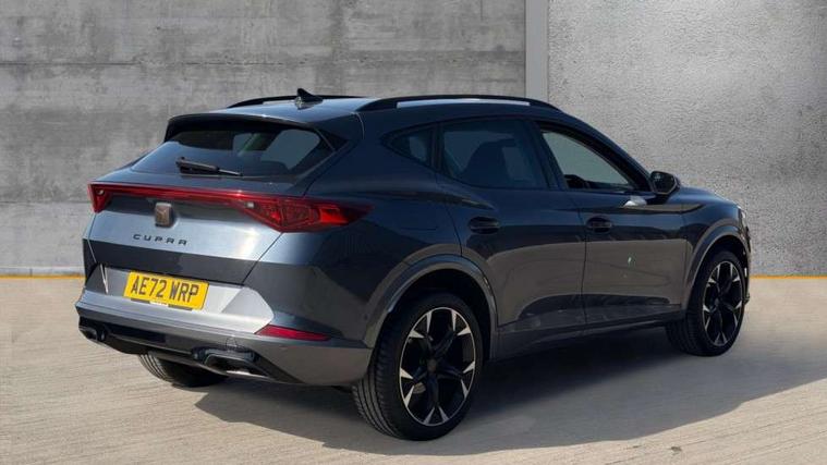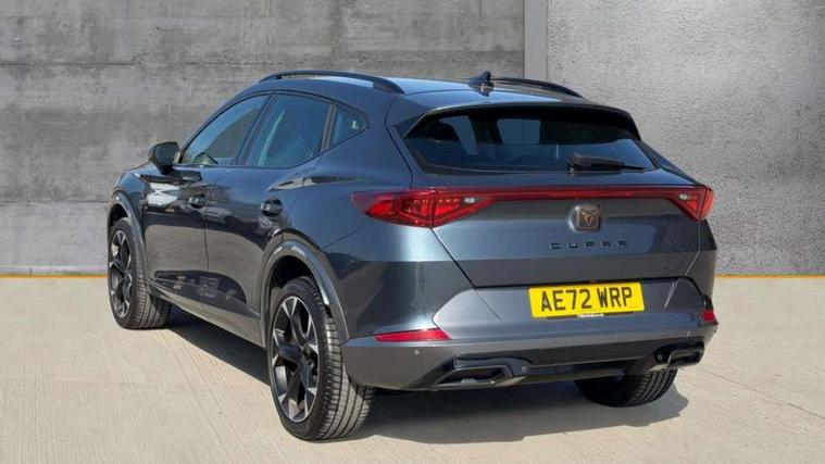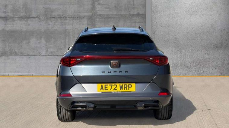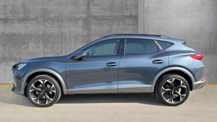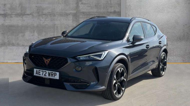 Digital cockpit and configurable dashboard, Driver alert system, Driving profile selection, E-call, Forward collision warning with automatic braking, Lane assist, Navigation system with 12'' Touchscreen Display, Park assist (inc front/rear parking sensors), PAS, Predictive adaptive cruise control with speed limiter, Rear view camera, RPM, trip computer, outside temp gauge, instrument light brightness, low fuel warning light, lights on reminder, gearshift indicator, Service interval indicator, Start/stop system with regenerative braking, Voice control system, Wireless apple carplay, Wireless phone charger, Electronic locking differential and dynamic traction support, Standard suspension, 2 front and 2 rear USB type C sockets, Auxiliary input socket, DAB radio, Auto dimming rear view mirror, Body colour door handles, Body coloured bumpers, Dark grey wing mirror, Daytime running light with automatic headlight control and coming home feature, Dynamic headlight range control, Electric front/rear windows, Electrically adjustable heated and folding door mirrors with memory function, Front fog lamps with cornering function, Gloss black roof rails and window surrounds, LED Headlights, LED Taillights with dynamic indicator, Rain sensing wipers, Rear diffuser with black simulated exhaust pipes, Rear side wing doors, Rear wash/wipe, Third brake light, Tinted rear windows, Welcome lights, 12v power supply in centre console, 12V socket, 12v socket in loadspace, 2 front and 2 rear reading lights, 230V socket, 3 seat bench in 2nd row, 60/40 split rear bench seat with armrest and mechanical seat release, Black headlining, Dust/pollen filter, Front and rear head restraints, Front centre armrest, Height/reach adjust steering wheel, Illuminated interior front door sills, Illuminated sunvisor with mirror, Isofix, Leather multi function steering wheel, Luggage tie-down hooks, Single front passenger seat, Three zone climate control with control panel in rear, Variable luggage/load compartment floor, Wraparound lighting, Genuine Nappa leather Pack - Cupra, Safety and driving pack (M) - Formentor, 3 point seatbelts on all rear seats, ABS, Brake control system - ESC and brake booster, Child proof door locks, Driver and front passenger airbags with front passenger airbag de-activation, Electronic parking brake, Front and rear disc brakes, Front side curtain airbags, Hill hold control, Seat belt reminder for front and rear seats, Tyre pressure monitoring system, Anti theft alarm system, Keyless entry and start system (KESSY), Locking wheel bolts, Copper and aluminium interior detailing, 19" 'Exclusive' machined sport matte black and silver alloy wheels,