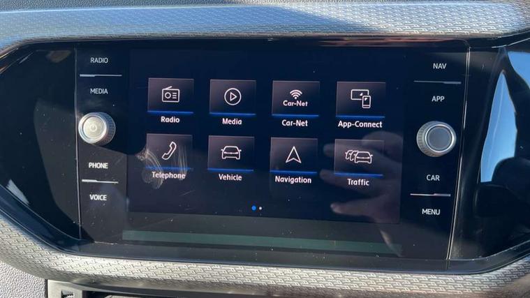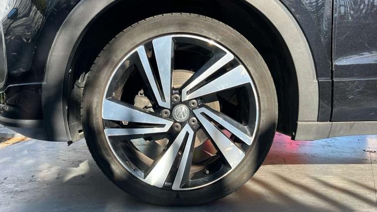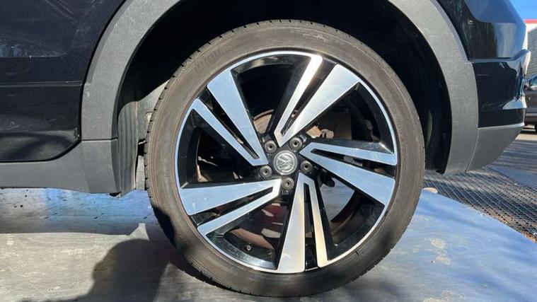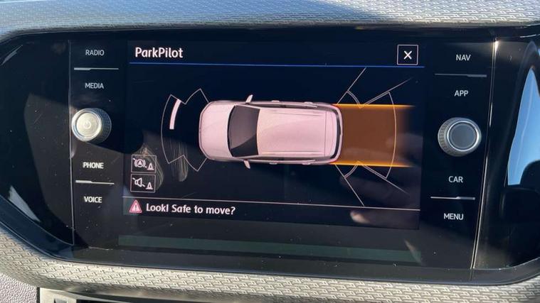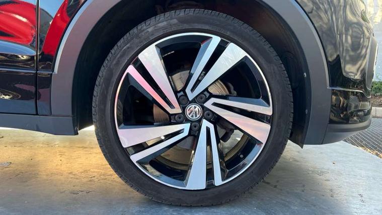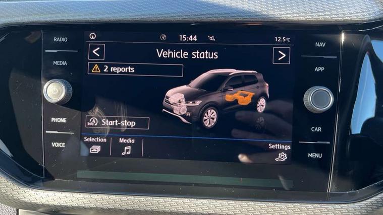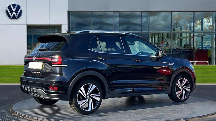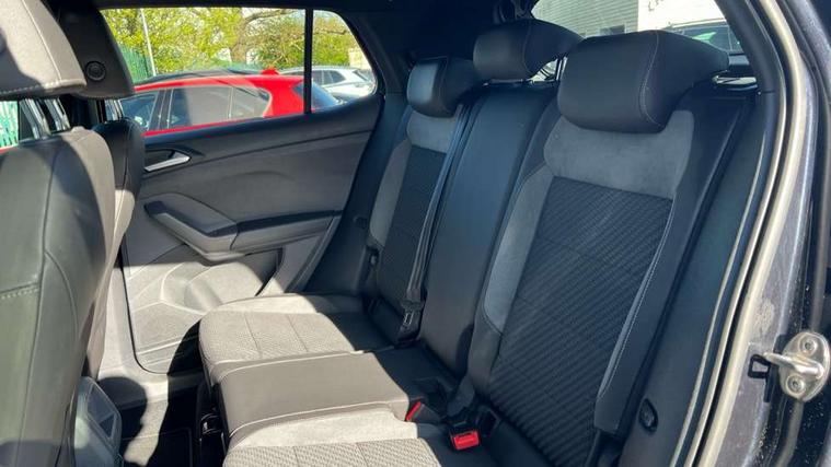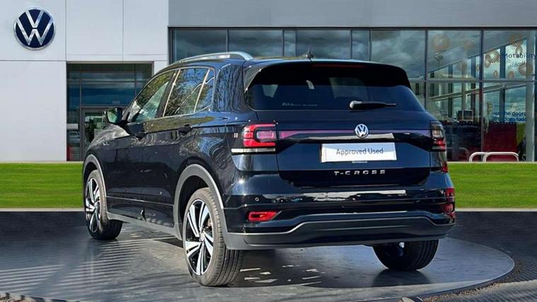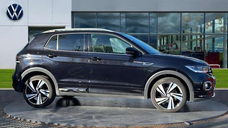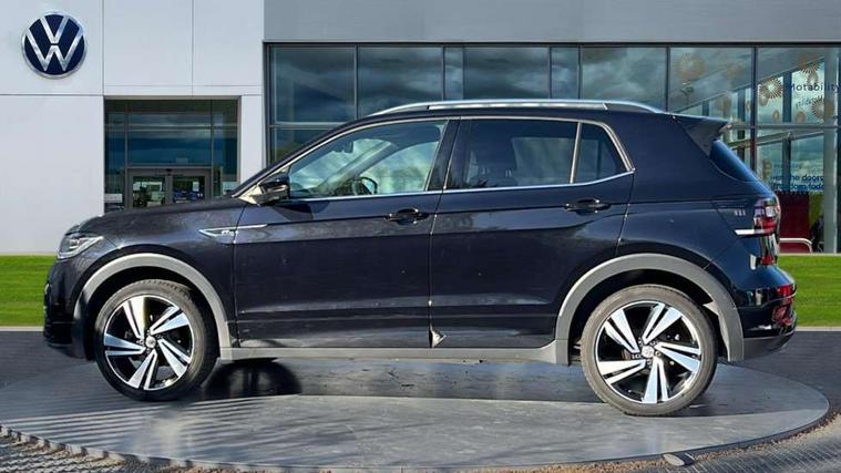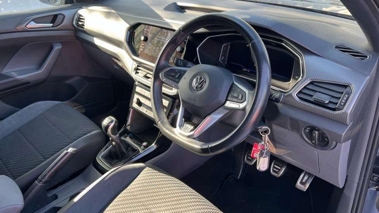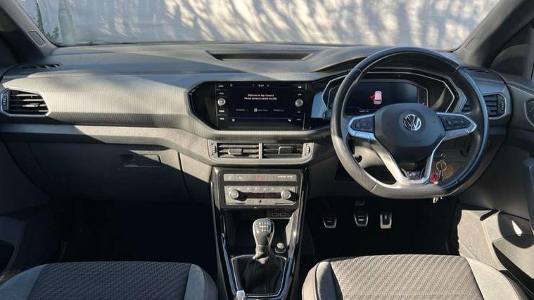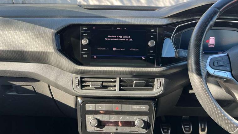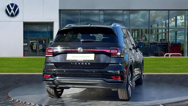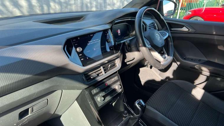 'Lights On' Reminder warning buzzer, Active Info display 10.25" high resolution TFT dash display with customisable menu and information, Adaptive cruise control including front assist, radar sensor controlled distance monitoring system, city emergency braking, cruise control/speed limit, Driver alert system, eCall emergency call system, Lane assist, Multifunction computer with visual gear change recommendation for fuel consumption, Power assisted speed sensitive steering, Speedo, rev counter, electronic odometer, trip, service interval display, exterior temperature and fuel gauge, Stop/start system, Warning sound and light for doors and tailgate open, Warning sound and light for front seatbelts unfastened, We Connect Go Dongle, Battery regeneration during braking, Misfuel prevention device, 2x USB connection with USB charging sockets and in rear centre console, Premium USB cable for Apple or Android smartphone compatibility, Automatic dimming interior rear view mirror, Automatic hazard lights activation under emergency braking, Body colour door handles, Body colour rear roof spoiler, Body coloured bumpers, Dusk sensor + automatic driving lights, Front and rear electric windows, Front fog lights with static cornering function, Galvanised body, Heated rear window, High level 3rd brake light, LED dipped and main beam headlights with automatic range adjustment including separate unique signature LED daytime running lights, Lower door sills and door pillars in black, Manual coming/automatic leaving home lighting function, Radiator grille with high gloss surface and chrome strip, Rain sensor, Rear lights incorporating LED technology, Rear tinted glass 65% approx light absorbing from B pillar backwards, Rear window aerial, Rear windscreen washer and wiper with interval delay, Reflectors in all doors, Silver roof rails, Stainless steel door sill protection, Tailgate with integrated roof spoiler, Unique R Line badging, Windscreen wipers/ intermittent wipe + 4 position delay, 12V Accessory socket in centre console, 2 Front and rear reading lights incorporating LED technology, 2 Zone electronic climate control with automatic air recirculation, 3 rear head restraints and 3 rear three point seat belts with ECE label, 60/40 split folding rear seat backrest, Aluminium pedals, Black headlining, Carbon flag cloth upholstery, Drawer under drivers seat, Driver and front passenger sunvisor with vanity mirror, Driver's sunvisor with ticket holder, Dust and pollen filter, Front + rear carpet mats, Front centre armrest with storage compartment, Front seat back storage pockets, Front seat R Line logo with rear seat backrest, Front sports seat with height and lumbar adjustment, Glovebox, Heating and fresh air system with 4 stage blower, Height/reach adjust steering wheel, Instrument lighting white adjustable panel illumination, Interior light with delay, Isofix child seat preparation for 2 rear child seats, Leather trimmed three spoke multifunction steering wheel with contrast stitching and aluminium inserts with R Line logo, Luggage compartment cover, Luggage compartment lighting, Moveable and foldable Rear bench seat, Storage compartment in drivers and front passengers door, Variable boot floor, Discover Navigation infotainment system pack - T cross, R Line styling pack - T-cross, Anti-lock Braking System (ABS) with Hydraulic Brake Assist (HBA), Automatic post collision braking system, Driver and front passenger safety-optimised head restraints, Drivers and Front Passengers airbags with front passengers airbag deactivation switch, ESC with EDL, ASR, EDTC and trailer stabilisation function, Extended and proactive pedestrian protection, Front and rear curtain airbags, Front seat side impact airbags, Height adjustable 3 point automatic front seatbelts with pretensioners, Hill start assist, Pre crash preventive occupant protection, Rigid safety cell with front and rear crumple zones, Tyre pressure loss indicator, Volkswagen roadside assistance, Alarm with interior protection and deactivation via infotainment system, Child security locks in rear doors, Remote tailgate unlocking using key fob, Race decorative inserts in dash and doors, 18" Nevada black alloy wheels + anti theft wheel bolts,