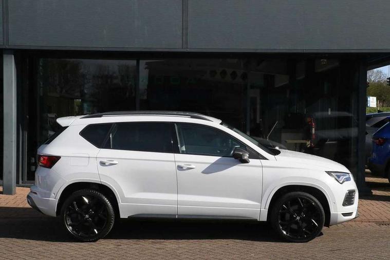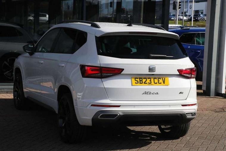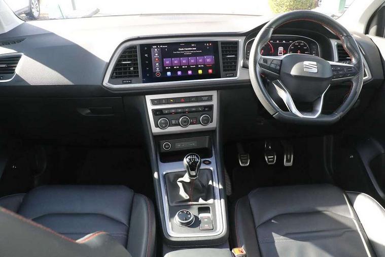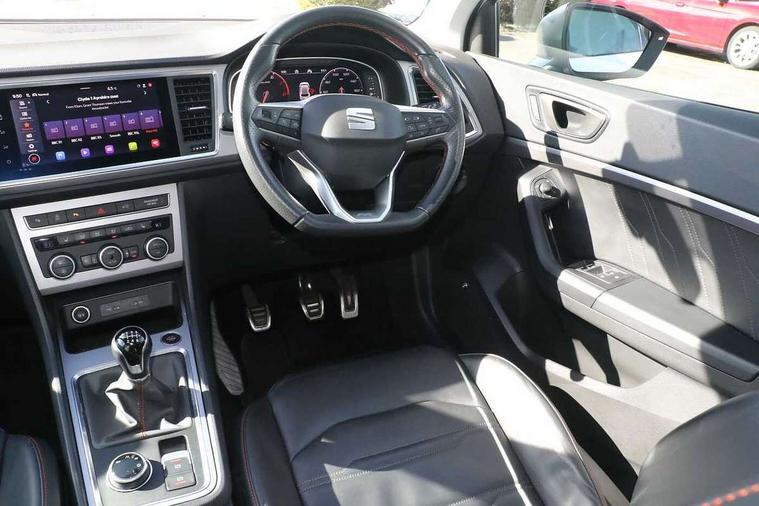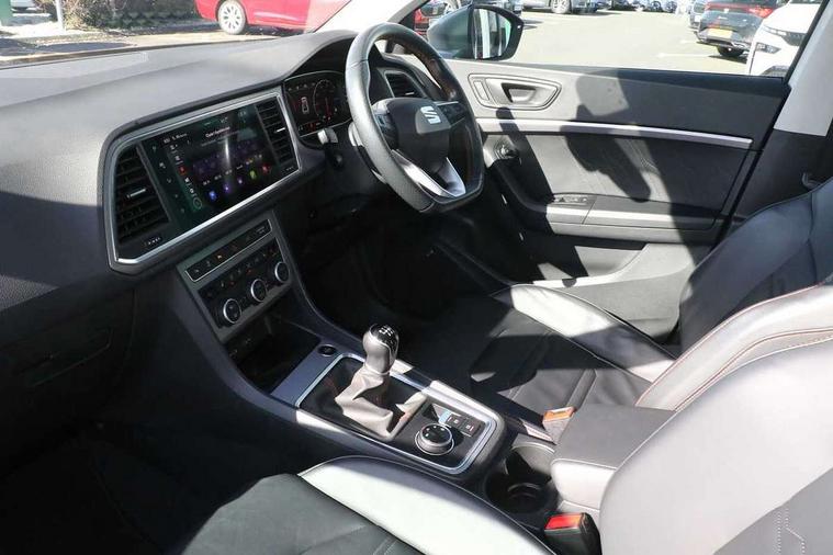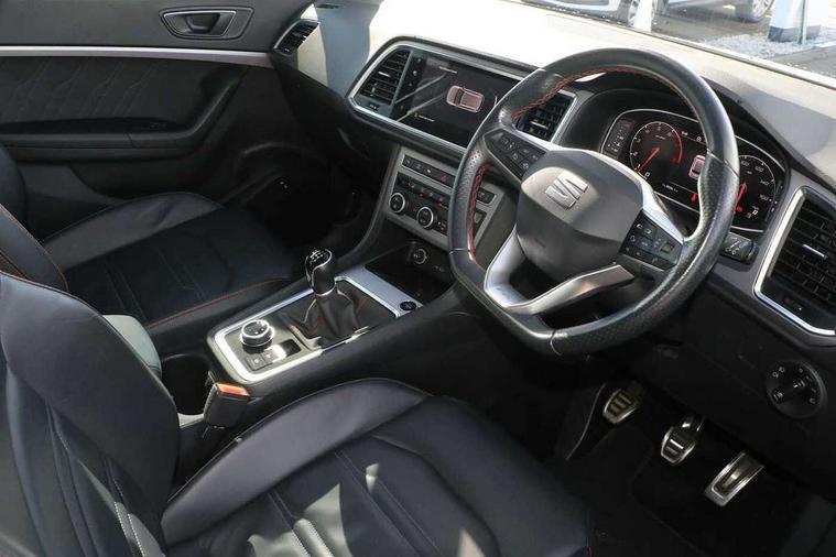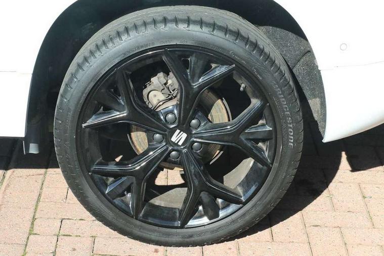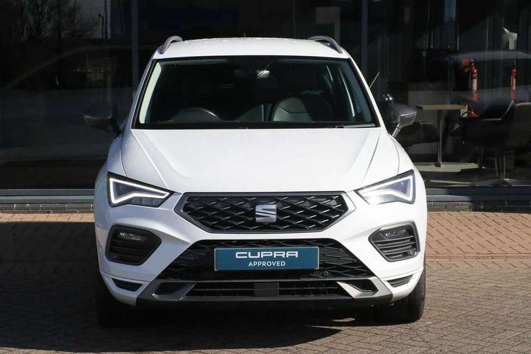 10" Digital cockpit, Cruise control system with speed limiter, E-call, Electric tailgate with virtual pedal, Outside temperature gauge, Progressive power assisted steering, Rear view camera, SEAT drive profile with driving experience button - Normal, Sport, Eco and Individual mode, steering and throttle response, Self parking functionality (includes front and rear parking sensors), Start/stop system, Trip computer, Wireless full link smartphone integration, Wireless phone charger, Beats audio system, Steering wheel mounted audio/phone controls, Black roof rails, Black side window trim, Body colour bumpers, Body coloured wheel arch surrounds, Chrome front grille frame, Dark tinted rear windows, Daytime running lights, Door mirrors with welcome light silhouette, Dynamic headlight range control with self adjusting whilst driving, Electric adjustable/heated/folding door mirrors, Front and rear electric windows, Full LED headlamps with lens and LED front fog lamps with cornering function, Illuminated aluminium front door sill, LED rear tail lights with dynamic indicators, Rear exhaust tailpipe, Rear fog lights, Rear side wing doors, Rear wash/wipe, Roof spoiler, Third brake light, Variable front intermittent wipers, 12V socket in front, 3 seat bench in 2nd row, 60/40 split folding rear seat, Aluminium pedals, Driver seat memory function, Dual zone climate control, Electric adjustable driver seat with lumbar adjustment, Front and rear head restraints, Front centre armrest, Front seat back storage pockets, Heated front seats, Height adjustable passenger seats with lumbar adjustment, ISOFIX points in outer rear seats with top tether anchorage points, Leather sports steering wheel and gear knob, Leather upholstery with front comfort seats, Multicoloured ambient lighting with LED interior illumination, Rear armrest and easy back seat release mechanism from boot, Single front passenger seat, Storage compartment in roof console for sunglass, Convenience pack - Ateca, Interior lighting pack - Ateca, Navigation system pack with DAB - Ateca, 3x3 point rear seatbelts, ABS, Traction control system (TCS), Electronic stability control (ESC) and Electronic differential lock system (XDS), Airbags - Driver and front passenger airbag with deactivation, front side, two curtain and driver's knee airbags, Electric parking brake with auto hold function, Front and rear seatbelt reminder, Front assist with autonomous emergency braking, Hill hold control, Manual rear child locks, Single tone horn, Tiredness recognition system, Tyre pressure monitoring system, Alarm, Keyless entry, Locking wheel bolts, Remote central locking, Chrome interior detailing, 19" Exclusive alloy wheels 36/10 in glossy black, Emergency spare wheel,