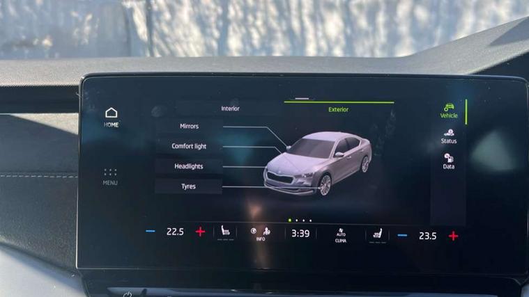 1x USB Type C port in rear view mirror (charging only), 2x USB Type C ports in rear of front centre armrest (charging only), Bluetooth system, Boot lid release from inside vehicle (electrically), Columbus satellite navigation with 10" touchscreen display, Driver fatigue sensor, eCall emergency system, Electro-mechanical power steering, Front and rear parking sensors with manoeuvre assist, Front assist system, Speed limiter, Turn Assist, Virtual Cockpit - 10.25" digital display, Voice control system, Wireless SmartLink for Apple Car Play, 2x USB Type C ports (for charging and data transfer), 8 Speakers, DAB Digital radio, Aero front windscreen wipers with intermittent function, Auto dimming rear view mirror, Body colour door mirrors and handles, Chrome grille surround, Chrome strip in lower front bumper, Chrome window surround, Electric front and rear windows, Headlight washers, Heated rear windscreen, High level third brake light, Ice scraper in fuel cap, Rain and light sensors, Rear fog light on one side, Rear privacy glass, Rear side wing doors, 3 rear headrests, 3 seat bench in 2nd row, 4 foldable roof handles, Chrome inner door handles, Front centre armrest, Front head restraints, Grey headlining, Heated front seats, Illuminated glovebox, Leather trimmed gearshift lever, Luggage compartment lighting x1 light, Microsuede cloth upholstery, Parcel shelf - folding, Satin black microsuede with grey stitching in padded dash panel, Single front passenger seat, Sunglasses storage, Textile floor mat set, Ticket holder, Two-spoke leather multi function steering wheel with paddles, Umbrella in door panel, Unsplit rear bench seat and split folding backrest, 3 point front/outer rear seatbelts+pre-tensioners, Alarm with interior monitoring, tilt sensor and back up horn, Automatic door unlocking in case of crash, Automatic fuel cut off in case of crash, Automatic warning lights in case of emergency braking, Curtain airbags and front side airbags, Driver and front passenger airbags, Drivers knee airbag, Electronic parking brake, ESC including ABS, EBV, MSR, ASR, EDS, HBA, DSR, Front central airbag, Hill hold control, Hill start assist, ISOFIX on front passenger seat and outer rear seats, Manual rear child locks, Passenger airbag deactivate switch, Pro active services, Rear disc brakes, Two tone horn, Tyre pressure monitor, Visual and acoustic seat belt reminder, Warning reflectors in front door, Door locks with immobiliser, Keyless entry and start/stop including rear doors, Remote central locking, Chrome air vent surrounds, Silver squares haptik decorative inserts,
