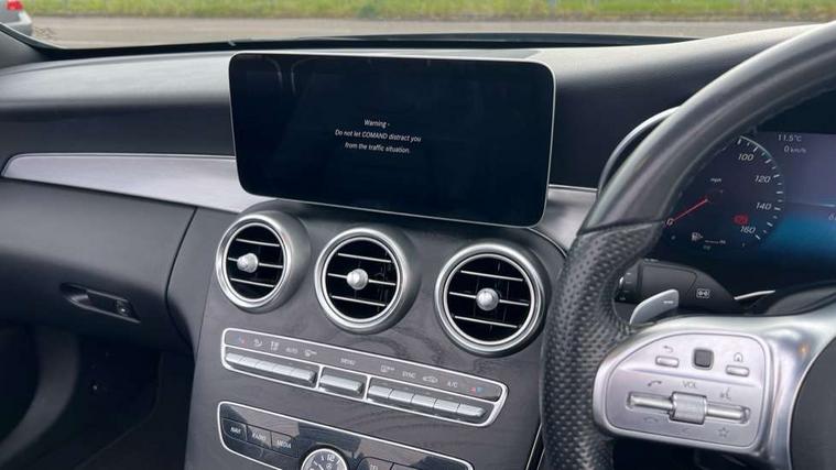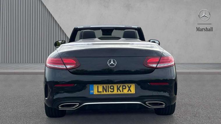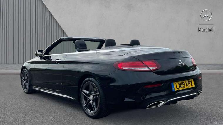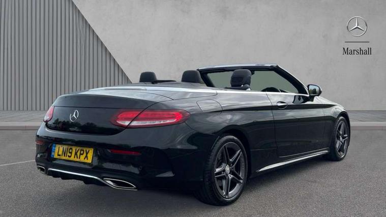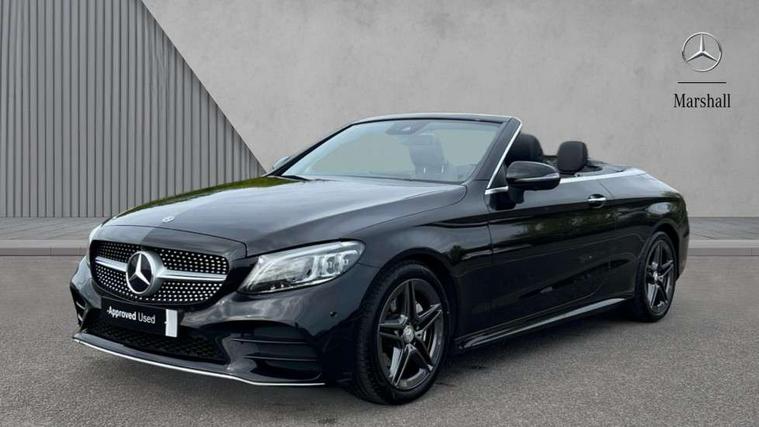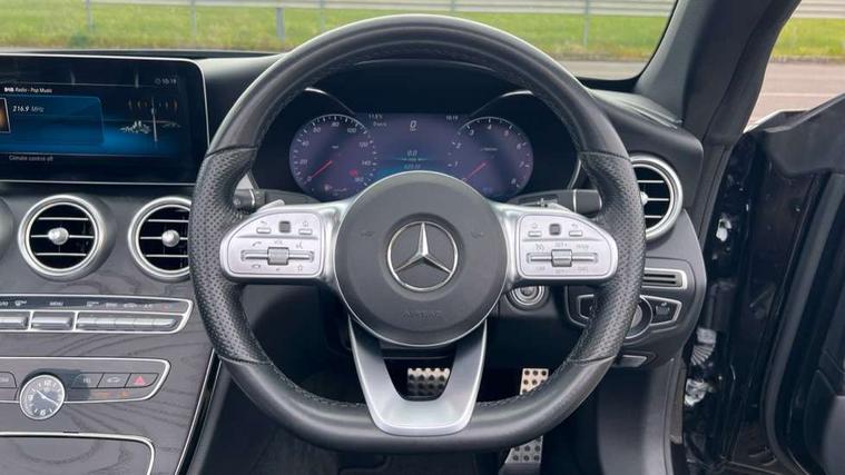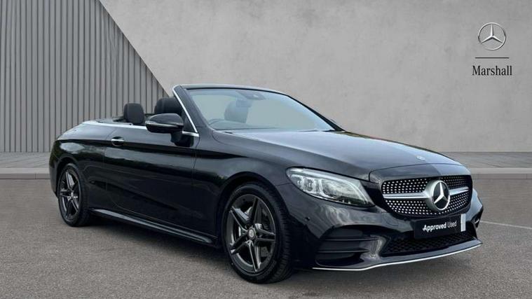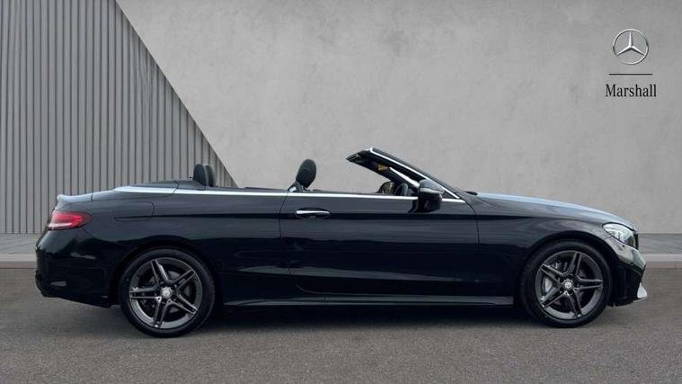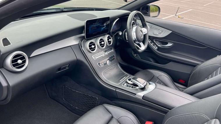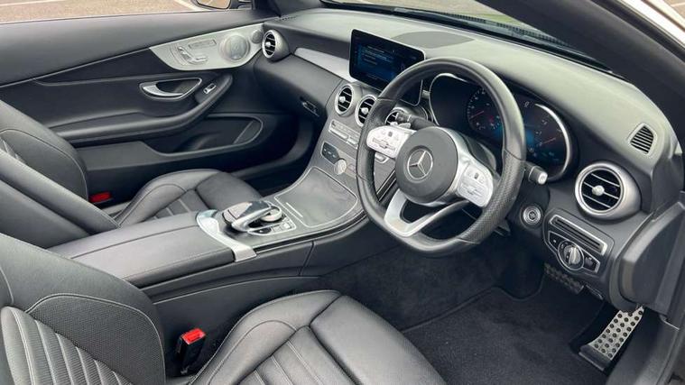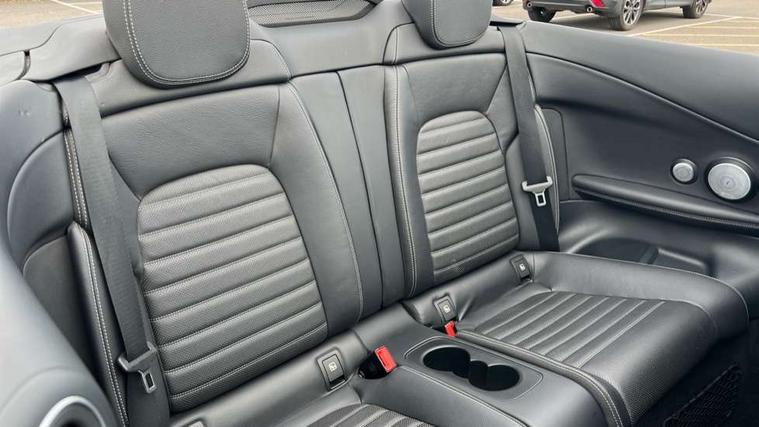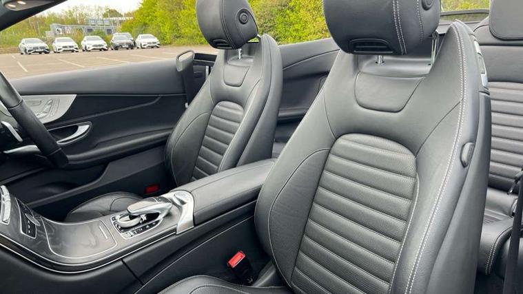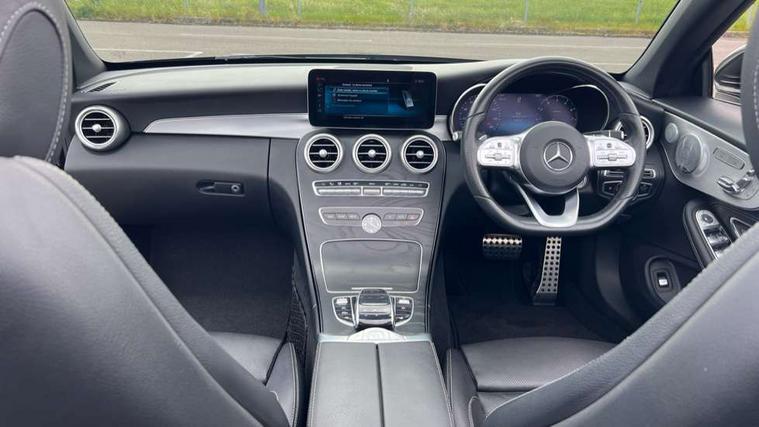 12.3" Active TFT crystal driver's instrument display, Active park assist with parktronic system, Attention assist, Automatic boot separator, Bluetooth interface for hands free telephone, Collision prevention assist plus, Comand Online HDD Nav with media interface, radio/CD/DVD/MP3, 10.25 screen, linguatronic voice control, DYNAMIC SELECT with a choice of driving modes (ECO, Comfort, Sport, Sport+ and Individual), Mercedes connect me with remote online, Multi function trip computer, Outside temperature gauge, Remote boot release, Service indicator (ASSYST), Smartphone integration with Apple CarPlay and Android auto, Speed sensitive steering, Stop/start system, Surround camera system, Wireless charging, Petrol Particulate Filter, Sport exhaust system, 2 USB ports, Burmester surround sound system, DAB digital radio module, Mercedes Audio 20 radio/single CD, SD card slot, Steering wheel audio controls, Acoustic soft-top with enhanced climate and noise comfort, Adaptive brake lights, AMG front, rear apron and side skirts, Auto dimming driver's door mirror, Auto dimming rear view mirror, Body coloured bumpers, Body coloured door mirrors, Chrome grille surround, Chrome pins diamond radiator grille with integrated stars, Door sill plates with "Mercedes-Benz" lettering, Electric adjustable/heated/folding door mirrors, Electric windows one touch open/close, Green tinted glass, LED daytime running lights, LED Indicators, LED tail lights, LED third brake light, Multi beam LED headlights, Radio aerial in side window, Rain sensor windscreen wipers, Side windows surround in polished aluminium, Twin exhaust tailpipes x2, Wind deflector, 2 cupholders in front centre console, 2 rear head restraints, 3 spoke flat bottom multi-function leather AMG steering wheel, 40:20:40 split folding rear seats, Airscarf - neck level heating, Ambient lighting, AMG floormats, Artico man-made leather upper dashboard and beltlines with contrast stitching, Auto dual-zone climate control system, Auto Mercedes-Benz child seat recognition sensor, Door courtesy lamps, Electrically adjustable front seats, Front centre armrest with storage compartment, Front footwell illumination, Heated front seats, Height adjustable front seats, Illuminated front/rear door handle recesses, Illuminated glovebox, Isofix rear child seat fastenings, LED reading lights, LED rear reading lights, Sports pedals with stainless steel surfaces and rubber studs, Sports seats with integrated headrests, Steering wheel gearshift paddles, Sunvisors with illuminated vanity mirrors, Seat comfort pack - C Class, Stowage space pack - C Class, 2 rear seatbelts, 3 point automatic seatbelts, ABS, Active bonnet, Adaptive brake system, Black seat belts, Brake calipers with Mercedes-Benz lettering + perforated brake discs, Crash sensor, Drivers knee airbag, Drivers pelvis airbag, Dual stage driver/passenger airbags, Electronic parking brake, Electronic stability control, Front and rear window airbags, Front seatbelt pretensioners, Front side airbags, Hill hold control, Hill start assist, Tyre pressure monitoring system, Warning triangle and first aid kit, Alarm system/interior protection/immobiliser, Automatic door locking, Chrome surround in electric key, Keyless entry and keyless start, Remote central locking, Tow away protection,