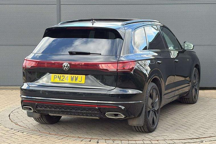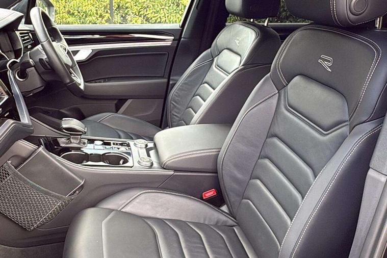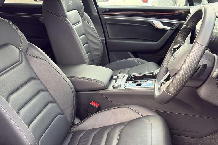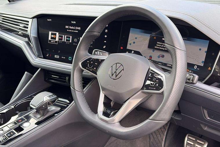 15" Screen Top infotainment system Premium (MIB3), Adaptive cruise control, Advanced driver attention and drowsiness monitor, Driver profile selection, Dynamic road sign display, E-Sim card for online connectivity, eCall emergency system, Innovision cockpit, Intelligent park assist, Mobile phone interface with inductive charging, Multi-colour Active Info display, Park Assist - Sensor controlled steering aid to assist parallel or bay parking, PAS, Warning signal and warning light for front and rear seatbelts not fastened, Wireless app connect, Adaptive chassis control, DAB Digital radio, Diversity antenna for AM/ FM reception, We Connect and We Connect Plus functionality, Automatic coming/leaving home lighting function, Automatic headlights, Black door mirrors, Black style comfort bumpers, Dynamic headlight range control with dynamic cornering light, Electric front tilt/slide panoramic sunroof and fixed rear sunroof, Electrically power adjustable, heated, folding, auto dimming, front passenger exterior door mirror lowering function, External USB type C socket and charging sockets, Gloss black roof rails, HD LED Matrix beam plus digital headlight projection with variable light distribution, Headlight washers, Heat insulating darkened glass in side and rear windows, Heated windscreen washer jets, Highway light, LED 3rd brake light, LED daytime running lights, LED rear combination lamp with variable lighting functions and special styling, Poor weather light, Rain sensor, Rear exhaust tailpipe, Rear fog light with back up light on both sides, Rear light bar and illuminated logo, Rear side wing doors, Rear wiper, Stainless steel door sill protection, 12V socket in centre console, 3 rear headrests, 3 seat bench in 2nd row, 4 zone climate control, Airbag label on sun visor and B-pillar, Brushed stainless steel pedals, Double sun visors with illuminated vanity mirrors, Front + rear carpet mats, Front centre armrest, Leather wrapped multifunction sports steering wheel, heated, with touch control and shift paddles, Mechanical rear seat release, Power adjustable lumbar support in front, Power seats in front, right side with memory features and seat cushion depth adjustment, Rear seat backrest and split folding with center armrest, Single front passenger seat, Tool kit, Memory pack plus - Touareg, 3 point seatbelts, outer rear with ECE lable, ABS, Child locks on rear doors, Curtain airbags, Driver and front passenger safety-optimised head restraints, Driver/Front Passenger airbags, Extended pedestrian protection measures, Front assist, Front seat side impact airbags, Generative braking with start and stop system, Height adjustable 3 point front seatbelts with pre tensioners, Passenger airbag deactivate switch, Three 3 point rear seatbelts, Two tone horn, Tyre pressure loss indicator, Warning triangle and first aid kit, Alarm system with interior protection, Easy open and close sensor controlled luggage compartment opening and closing with remote unlocking, Keyless Access Keyless locking and starting system with SAFELOCK, Aluminium decorative inserts, Black decorative trims, Gloss black decorative inserts in centre console,