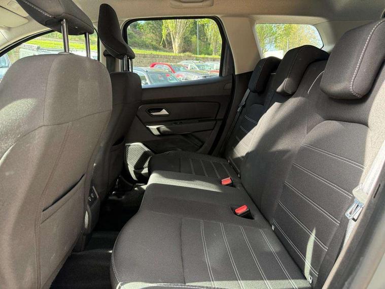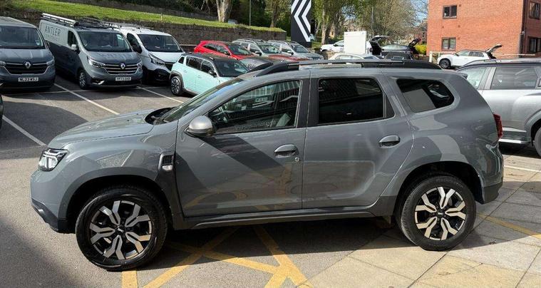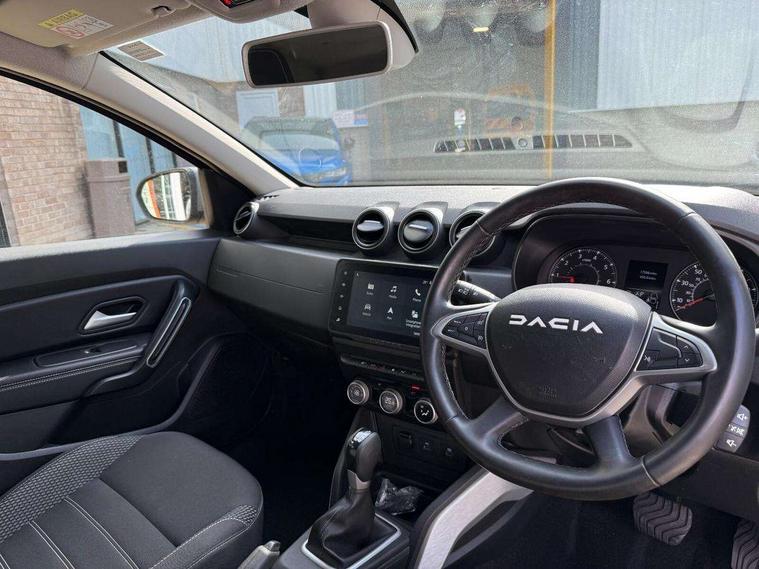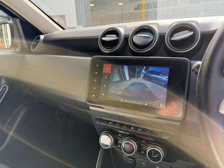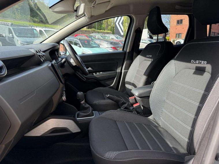 Blind spot warning, Cruise control and speed limiter, eCall emergency system, Eco mode, Electric power assisted steering, Multi view camera, On board computer, odometer, trip computer, average fuel consumption, average speed, service indicator, outside temperature gauge, Rear parking sensors, Rev counter, Reversing camera, Stop/start system, 8" Media Navigation with wireless smartphone replication, Dacia plug and radio/MP3/USB/bluetooth/DAB/steering wheel control, 3 speed windscreen wipers, Acoustic windshield, Automatic front wipers, Black side sills, Black/satin chrome tailgate trim with Duster inscription in black background and lettering, Body coloured door handles, Chrome front grille with hot stamping, Chrome logo surround on steering wheel, Dark glass on lateral rear windows, Daytime running lights, Drivers window one touch up/down, Dusk sensor, Electric adjustable/heated door mirrors, Electric folding door mirrors, Electric front windows, Electric rear windows, Front and rear body coloured bumpers, Front door sill protection strip, Front fog lights, Grey quartz longitudinal roof bars with Duster inscription, Heated rear window, High level third rear brake light, Modular roof bars, Rain sensor, Rear side wing doors, Rear spoiler, Rear wash/wipe, Satin chrome door mirrors, Underbody protection skid plates, Y shaped LED headlights with rear LED lights, 3 rear height adjustable headrests, 3 seat bench in 2nd row, 60/40 split folding rear seat, Automatic air conditioning, Backlighted steering wheel buttons, Boot light, Driver seat lumbar adjustment, Fabric decorative insert on door panels, Fabric upholstery, Front head restraints, Front passenger reading light, Gear shift indicator, Glovebox light, Heated seats, Height adjustable driver seat, Height adjustable front and rear headrests, Height and depth adjustable steering wheel, High centre console with driver armrest, Isofix points for child seats in both outer rear seats, Map pocket on front seat backs, Passenger sunvisor with vanity mirror, Rear passenger reading light, Satin chrome gear lever cap insert, Satin chrome interior door handles, Satin chrome lower steering wheel insert, Single front passenger seat, Soft feel leather steering wheel, 3x3 point rear seatbelts, ABS and Emergency brake assist, ASR traction control with Electronic stability control, Child locks on rear doors, Door open visual and audible warning, Driver airbag, Driver and passenger seatbelt not fastened - visual and audible warning, EBD - Electronic brakeforce distribution, Front passenger airbag, Front passenger airbag deactivation, Front seatbelt pretensioners, Front side airbags, Height adjustable front seatbelts, Hill start assist, Tyre pressure monitor, Keyless entry, Remote central locking, Thatcham approved engine immobiliser, Charcoal grey central console surround, Matt black central console fascia, Matt black decorative insert on rear door panels, Piano black decorative insert on front door panels, Satin chrome air vent surround, Satin chrome instrument dial surrounds, 17" Alloy wheels,