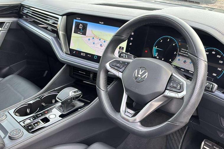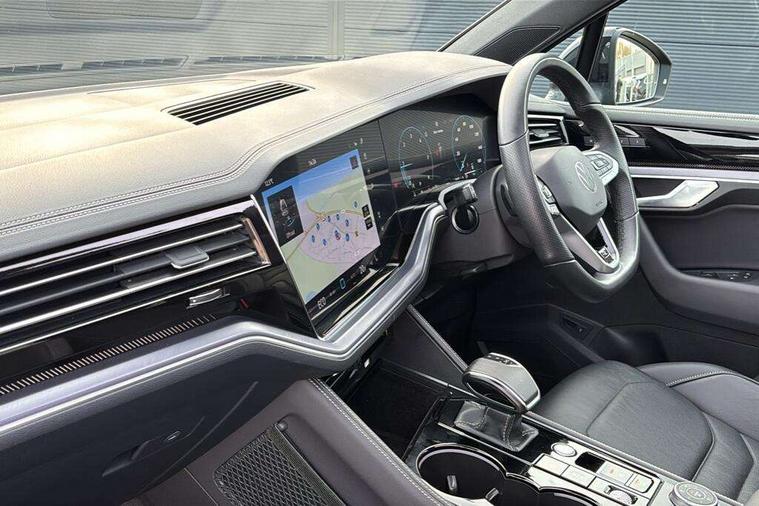 15" Screen Top infotainment system Premium (MIB3), Adaptive cruise control, Advanced driver attention and drowsiness monitor, Driver profile selection, Dynamic road sign display, E-Sim card for online connectivity, eCall emergency system, Innovision cockpit, Intelligent park assist, Mobile phone interface with inductive charging, Multi-colour Active Info display, Park Assist - Sensor controlled steering aid to assist parallel or bay parking, PAS, Warning signal and warning light for front and rear seatbelts not fastened, Wireless app connect, Adaptive chassis control, DAB Digital radio, Diversity antenna for AM/ FM reception, We Connect and We Connect Plus functionality, Automatic coming/leaving home lighting function, Automatic headlights, Black door mirrors, Black style comfort bumpers, Dynamic headlight range control with dynamic cornering light, Electric front tilt/slide panoramic sunroof and fixed rear sunroof, Electrically power adjustable, heated, folding, auto dimming, front passenger exterior door mirror lowering function, External USB type C socket and charging sockets, Gloss black roof rails, HD LED Matrix beam plus digital headlight projection with variable light distribution, Headlight washers, Highway light, LED 3rd brake light, LED daytime running lights, LED rear combination lamp with variable lighting functions and special styling, Poor weather light, Rain sensor, Rear exhaust tailpipe, Rear fog light with back up light on both sides, Rear light bar and illuminated logo, Rear side wing doors, Rear wiper, Stainless steel door sill protection, 12V socket in centre console, 3 rear headrests, 3 seat bench in 2nd row, 4 zone climate control, Airbag label on sun visor and B-pillar, Brushed stainless steel pedals, Double sun visors with illuminated vanity mirrors, Front + rear carpet mats, Front centre armrest, Leather wrapped multifunction sports steering wheel, heated, with touch control and shift paddles, Mechanical rear seat release, Power adjustable lumbar support in front, Power seats in front, right side with memory features and seat cushion depth adjustment, Rear seat backrest and split folding with center armrest, Single front passenger seat, Memory pack plus - Touareg, 3 point seatbelts, outer rear with ECE lable, ABS, Child locks on rear doors, Curtain airbags, Driver and front passenger safety-optimised head restraints, Driver/Front Passenger airbags, Extended pedestrian protection measures, Front assist, Front seat side impact airbags, Generative braking with start and stop system, Height adjustable 3 point front seatbelts with pre tensioners, Passenger airbag deactivate switch, Three 3 point rear seatbelts, Two tone horn, Tyre pressure loss indicator, Warning triangle and first aid kit, Alarm system with interior protection, Easy open and close sensor controlled luggage compartment opening and closing with remote unlocking, Keyless Access Keyless locking and starting system with SAFELOCK, Aluminium decorative inserts, Black decorative trims, Gloss black decorative inserts in centre console, Tool kit,