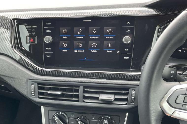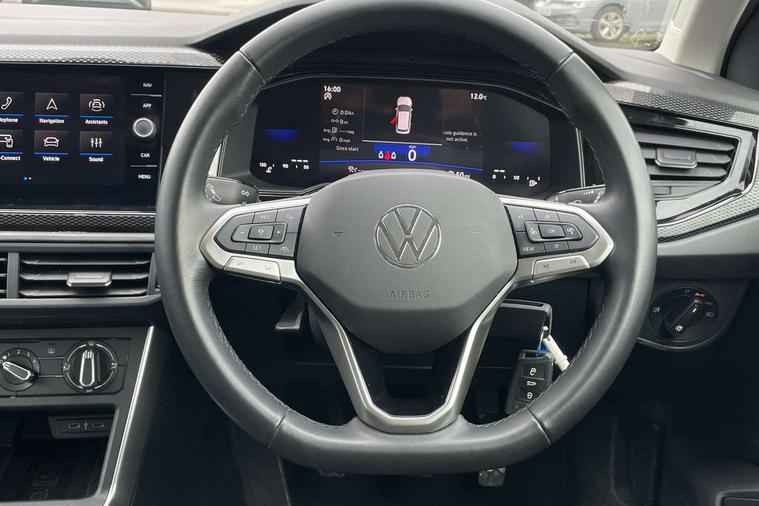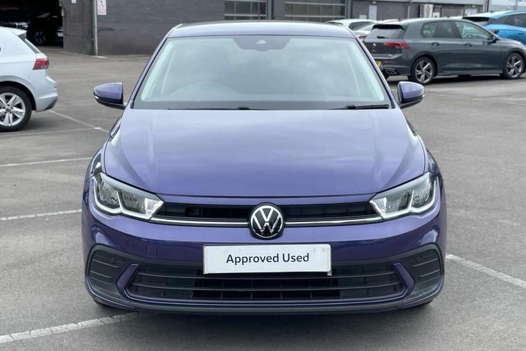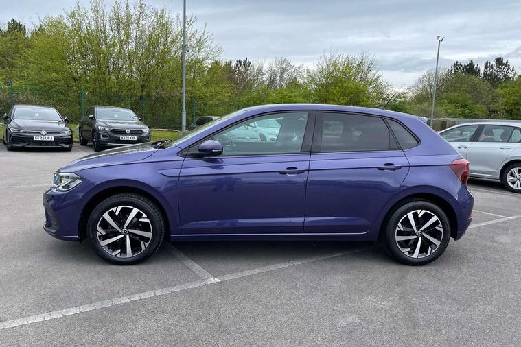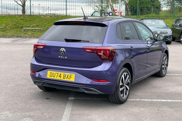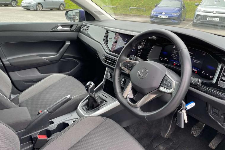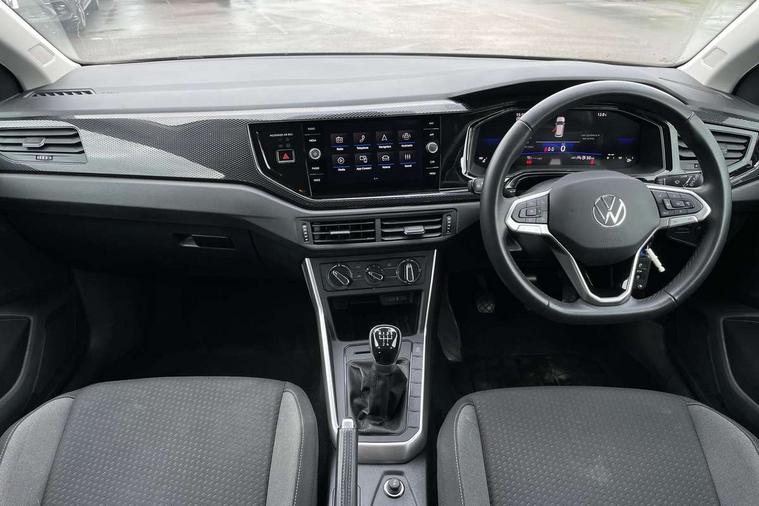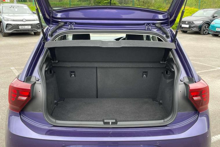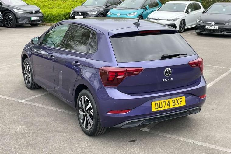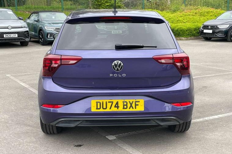 Adaptive cruise control without follow-to-stop and speed limiter, Advanced driver attention and drowsiness monitor, Bluetooth mobile phone interface, Dynamic road sign display, Emergency call service, Mobile phone preparation with inductive charging function, Multifunction front facing camera for distance control, Park distance control, Power assisted speed sensitive steering, Preparation for navigation system with media and internet package, Preparation for We connect and We connect plus, Rear view camera, Speedo and rev counter, electronic odometer, trip, service interval display and exterior temperature gauge, Standard rear axle, Travel Assist - Lane keeping system and traffic jam assist, Travel assist including emergency assist, Trip computer, Warning signal and warning light for front and rear seatbelts not fastened, Washer fluid level indicator, Wireless app connect, Front wheel drive, Rear shock absorpion, Start-stop system with battery regeneration (recuperation - energy recovery during braking), DAB Digital radio, Diversity antenna for FM reception, Front and rear 6 speakers, Automatic dimming interior rear view mirror, Automatic headlight control with LED separate daytime running lights with coming/leaving home function, Body colour bumpers with chrome inserts, Body colour door handles, Body colour door mirrors, Electric front windows, Engine badge deletion, Headlight range adjustment, Heat insulating and laminated safety glass windshield, Heat insulating darkened glass in side and rear windows, LED Headlights, LED rear combination lamps, Power folding adjustable/heated exterior mirrors and front passenger exterior mirror lowering function, Rain sensor, Rear electric windows, Rear fog light, Rear side wing doors, Rear tinted glass from B-pillar backwards approx 65% tinted, Rear windscreen washer and wiper with interval delay, Removable/lockable towbar, Third brake light, 12V power socket in centre console, 2 front and 2 rear reading lights with switch off delay and dimmer, 2 USB-C ports in the front, 2 USB-C charging sockets on the center console in the rear, 3 rear head restraints, 60/40 split folding rear seat and rear seat bench not split, Ceramique roof lining, Chrome plated radiator grille inserts, air vent surrounds and light switch surrounds, Door and side trim panel, Driver and front passenger seat height adjustment, Driver/passenger sunvisors with illuminated vanity mirrors, Front centre armrest, Front seat backrest storage pockets, Front standard seats, Handbrake lever handle in leather, Hartley/Thomas cloth upholstery, Headliner in recycled material, Isofix child seat preparation easy-fit (for two outer rear seats, and front passenger seat) compatible with I-size, Leather trimmed gear knob, Luggage compartment cover, Luggage compartment lighting, Removable luggage compartment floor, Single front passenger seat, Standard climatic zones, Standard pedal cluster, Three spoke leather wrapped multifunction steering wheel, Light and vision pack - Polo, 3 point height adj front seatbelts + pretensioners, 3 point seat belt for centre rear seat, 3 point seatbelts, outer rear with ECE lable, ABS, Driver and front passenger airbag with front passenger airbag deactivation, Drivers and front passengers safety optimised head restraints, ESC (Electronic stability control) + EDL (Electronic Differntial lock) and ASR (Traction control), Extended and predictive pedestrian/ cyclist protection, Front assist with autonomous emergency braking (for Adaptive Cruise Control ACC up to 130 mph), Front curtain and side airbags with center airbag, Front disc brakes, Hill hold control, Manual child lock in rear doors, Rear drum brakes, Single tone horn, Tyre pressure loss indicator, Alarm with interior protection, Anti-theft alarm system with interior monitoring, backup horn, and towing protection, Anti-theft wheel bolts, Electronic engine immobiliser, Lava stone black gloss/matt decorative inserts in dash and front door panels, 16" Torsby alloy wheels, Low rolling resistance tyres,