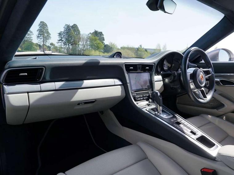 Mobile telephone preparation, On board computer, PCM voice control, Porsche communication management including navigation, Telephone module for PCM, Porsche Active Suspension Management (PASM), Porsche stability management (PSM), 2 USB ports, Auxiliary input socket, Connect Plus with Apple CarPlay, wireless internet access, Carfinder, Remote Vehicle Status and Remote Services, DAB Digital radio, SD card slot, Automatic headlamp levelling, Automatic headlights, Automatically extending rear spoiler, Body coloured bumpers, Electric front windows, Electrically adjustable and heated door mirrors, Green tinted heat insulating glass, Headlight washers, Heated rear window, Heated windscreen washers, Outer door sill guards in chrome-plated stainless, Welcome home function, Windscreen with grey top tint, 2 in-dash cupholders above glove compartment, 3 x 12V power sockets, Alcantara roof lining, Centre console storage, Clothes hooks on front seat backrests, Continuously variable dimming interior light, Dual zone automatic climate control, Extended headrests intergrated in front seats, Footwell illumination, Front centre armrest, Ignition Lock illumination, Interior orientation lighting, LED reading lights, Lockable glovebox, Manual height/reach adjust steering wheel, Pollen/active carbon filters, Rear centre armrest, Split folding rear seats, Sports seats, Storage compartments in doors, ABS, ASR + ABD, Driver/Front Passenger airbags, Electronic parking brake, Front head airbags, Front passenger airbag deactivation, Front seat thorax airbags, Front seatbelt pretensioners with force limiters, Height adjustable front seatbelts, Isofix location points on rear seats, Tyre pressure monitoring system, Alarm system with interior radar surveillance, Anti-theft wheel bolts, Porsche vehicle tracking system (VTS), Remote control central locking, Transponder engine immobiliser, Two stage locking, Sealing compound and compressor kit,