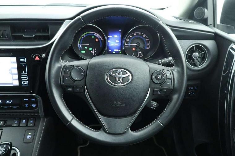 7" touch screen, Cruise control, Forward collision warning, Lane departure warning system, PAS, Rear view camera, Touch 2 Go navigation system, Trip computer, 6 speakers, Bluetooth connectivity including audio streaming, DAB Digital radio, Radio/CD + MP3, USB/aux input socket, Auto dimming rear view mirror, Auto high beam, Body colour bumpers, Body colour door mirrors, Chrome bars on lower front grille, Chrome fog lamp bezel, Dusk sensor, Electric front windows, Electric rear windows, Electrically retractable door mirrors, Front fog lights, LED daytime running lights, LED Headlights, LED rear lights, Lower grille finisher - Piano black, Privacy glass, Rain sensor, Rear wiper, Drivers/passenger heated seats, Dual zone automatic air conditioning, Electric lumbar support, Front and rear headrests, Isofix child seat preparation, Leather gear knob, Leather steering wheel, Leather upholstery, Parking pack - Auris, 3x3 point rear seatbelts, ABS/EBD, Collision mitigation braking system, Driver/Front Passenger airbags, Drivers knee airbag, Emergency brake assist, Front and rear curtain airbags, Front lateral airbags, Hill start assist, Passenger airbag deactivate switch, Road sign information display, Seatbelt pretensioners and force limiters, Seatbelt warning, Vehicle stability control + traction control + brake assist, Alarm, Smart entry + Smart start, Black instrument panel, Space saver spare wheel,