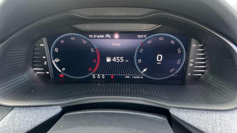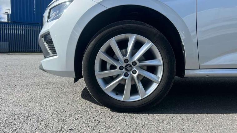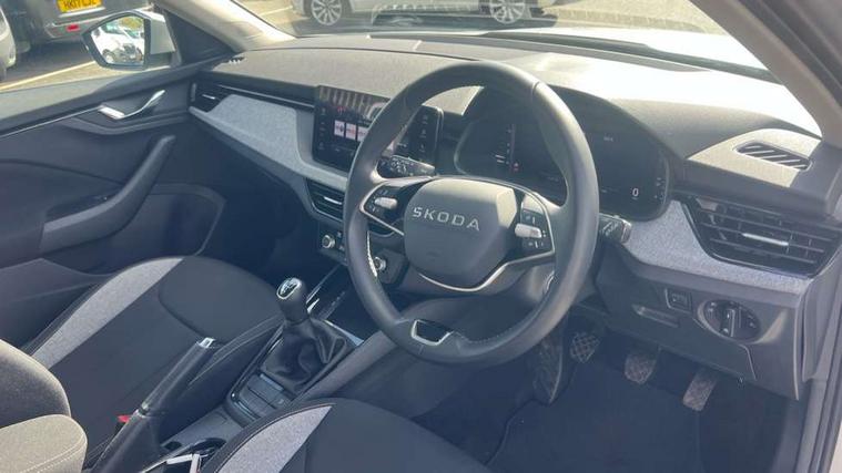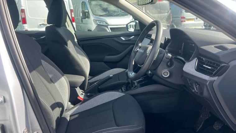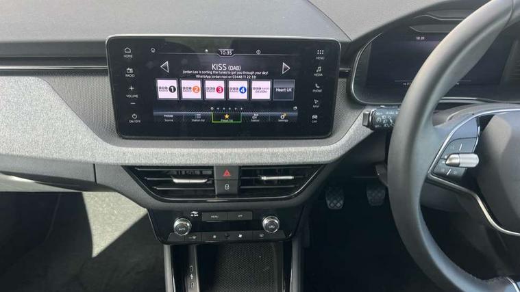 Advanced driver attention and drowsiness monitor, Bluetooth system, E-call, Front assist system, PAS, Rear parking sensors, Rear view camera, Service indicator, Speed limiter, Traffic sign recognition, Virtual cockpit with 10.25" display, Voice control system, Wireless smartlink, 4 USB C ports, 8 Speakers, 9.2" Skoda navigation display, DAB Digital radio, Auto dimming rear view mirror, Automatic headlight control with coming home and leaving home feature, Black roof rails, Body colour bumpers, Body colour door mirrors and handles, Chrome grille surround, Front and rear electric windows, Full LED headlights, Heated rear window, LED brake lights, LED daytime running lights, LED front turning lights, LED high beam, LED low beam, LED third brake light, Rear LED fog light, Rear side wing doors, Rear wiper, Ticket holder inside windscreen, 12V socket in luggage compartment, 3 seat bench in 2nd row, Black hotstamping, Cargo elements, Chrome inner door handles, Driver and passenger sun visors with vanity mirror, Dual zone climate control, Front and rear roof lights, Front centre armrest, Front head restraints, Glove compartment with illumination, Height adjustable driver seat, Height adjustable front passenger seat, Ice scraper, Inner circulation control with pollen filter, ISOFIX on front passenger seat, Isofix preparation for back seats, Krepp recycled decor inserts, Leather gearknob and handbrake lever, Loft cloth upholstery, Manual lumbar support for front seats, Net package and top tether hooks in boot space, Net under rear shelf, Overhead glasses storage compartment, Pocket on the back of both front seats include mobile phone pockets, Rake/reach adjustable steering wheel, Reading lights, Satin black door inserts, Single front passenger seat, Textile floor mats, Third rear headrest, Top tether for front passenger seat, Umbrella in driver's door, 3x3 point rear seatbelts, Airbags - driver and front passenger, Disc brakes, ESP, Extended and predictive pedestrian/cyclist protection, Front passenger airbag deactivation switch, Front side airbags with curtain airbags, Hill hold control, Manual leather parking brake, Manual rear child locks, One tone horn, Seatbelt reminder for driver an co-driver, Traction control, Tyre pressure monitor, Anti-theft alarm system with interior monitoring, backup horn, towing protection and remote central locking with SAFE system, Anti-theft wheel bolts, Electronic engine immobilizer,