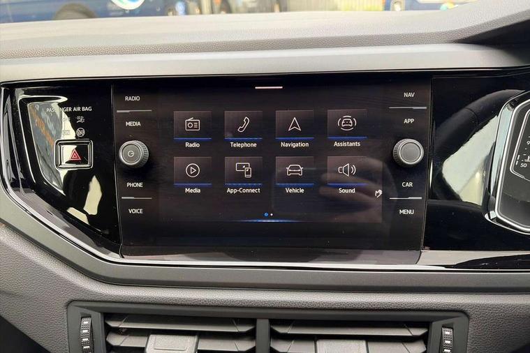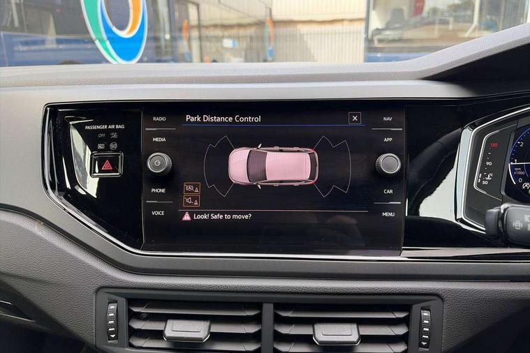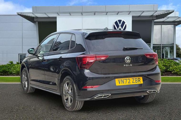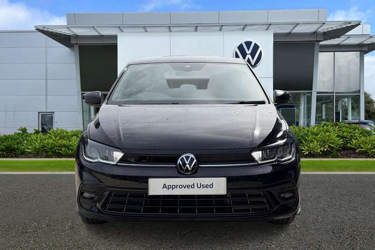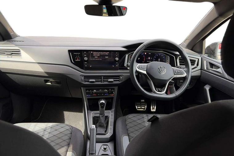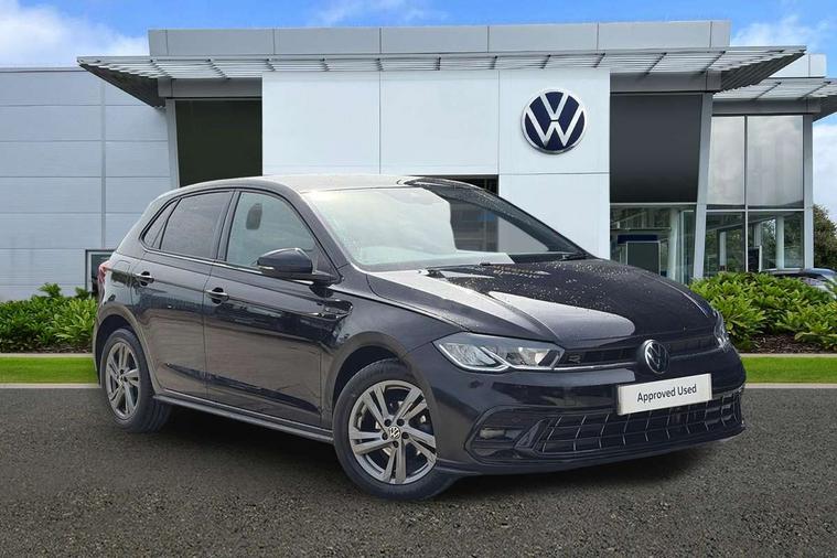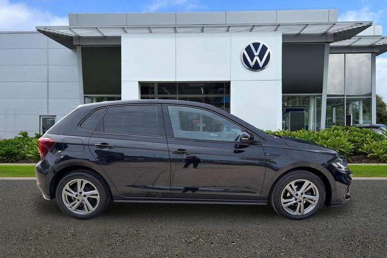 Adaptive cruise control with follow-to-stop and speed limiter, Bluetooth mobile phone interface, Digital Cockpit Pro with 10.25" Display, Driver alert system, Dynamic road sign display, Emergency call service, Power assisted speed sensitive steering, Preparation for We connect and We connect plus, Speedo and rev counter, electronic odometer, trip, service interval display and fuel gauge, Standard rear axle, Travel Assist - Lane keeping system and traffic jam assist, Travel assist including emergency assist, Trip computer, Warning signal and warning light for front and rear seatbelts not fastened, Washer fluid level indicator, Wireless app connect, Front wheel drive, Rear shock absorpion, Start-stop system with battery regeneration (recuperation - energy recovery during braking), DAB Digital radio, Diversity antenna for FM reception, Front and rear 6 speakers, Body colour bumpers, Body colour door handles, Electric front windows, Front scuff plates with R-Line logo, Heat insulating darkened glass in side and rear windows, Heat insulating glass windscreen, Power folding adjustable/heated exterior mirrors and front passenger exterior mirror lowering function, Rear electric windows, Rear fog light, Rear side wing doors, Rear windscreen washer and wiper with interval delay, Third brake light, 12V power socket in centre console, 2 USB-C ports in the front, 2 USB-C charging sockets on the center console in the rear, 3 rear head restraints, 60/40 split folding rear seat and rear seat bench not split, Air care climatronic air conditoning system with active combination filter and 2-zone temperature control, Black roof lining, Chrome plated radiator grille inserts, air vent surrounds and light switch surrounds, Door and side trim panel, Driver and front passenger seat height adjustment, Driver/passenger sunvisors with illuminated vanity mirrors, Front + rear carpet mats in recycled material, Front centre armrest, Front footwell illumination, Front seat backrest storage pockets, Front sports comfort seats, Handbrake lever handle in leather, Headliner in recycled material, Isofix child seat preparation easy-fit (for two outer rear seats, and front passenger seat) compatible with I-size, Karoso artvelours cloth upholstery, Leather trimmed gear knob, LED interior light with switch off delay and dimmer, 2 reading lights front and rear, Luggage compartment cover, Luggage compartment floor, Luggage compartment lighting, Lumbar adjustment for front seats, Single front passenger seat, Stainless steel pedals, Standard pedal cluster, Three spoke leather wrapped multifunction steering wheel with shifting paddles, Light and sight pack - Polo R-Line/Black Edition, 3 point height adj front seatbelts + pretensioners, 3x3 point rear seatbelts, ABS, Driver and front passenger airbag with front passenger airbag deactivation, Drivers and front passengers safety optimised head restraints, ESC (Electronic stability control) + EDL (Electronic Differntial lock) and ASR (Traction control), Extended and predictive pedestrian/ cyclist protection, Front curtain and side airbags with center airbag, Hill hold control, Manual child lock in rear doors, Single tone horn, Tyre pressure loss indicator, Alarm with interior protection, Anti-theft alarm system with interior monitoring, backup horn, and towing protection, Anti-theft wheel bolts, Electronic engine immobiliser, Chrome applications on rotary light, mirror adjustment, window regulator switches, outlet with frame in black, Dark grey anodised matt decorative inserts in dash and front door panels, Low rolling resistance tyres,