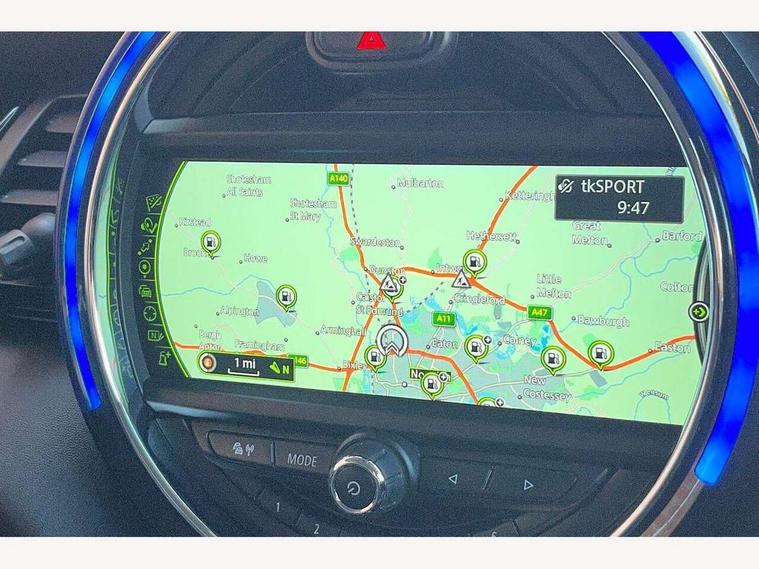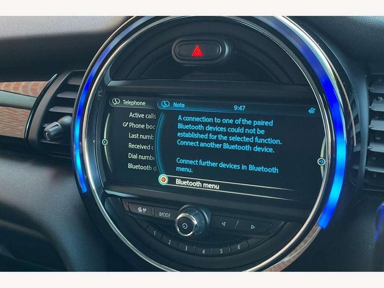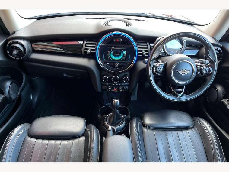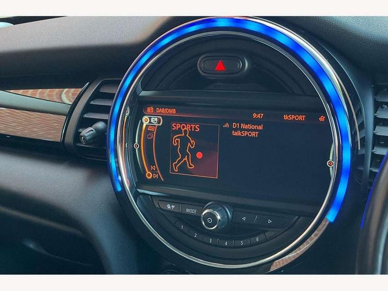 Acoustic seat-belt warning, Brake fluid level warning light, Brake pad wear indicator warning light, DTC - Dynamic traction control, Exterior temperature gauge, Intelligent emergency call, MINI TeleServices, Oil level indicator, On board computer, Push button starter, Service interval indicator, Servotronic PAS, Electronic differential lock, Performance Control, Auxiliary input socket, DAB digital radio module, Radio visual boost with MINI Connected, 2 speed wipers+intermittent wipe, Anti dazzle mirror, Anti trapping/one touch open close front windows, Body colour scoop integrated into engine- compartment lid, Body coloured bumpers, Chrome bezels around rear lights and headlights, Chrome door handles, Chrome plated fuel cap, Door sill finishers, Electric front windows, Electrically adjustable door mirrors, Flared wheel arches, Follow me home headlights, Green tinted heat insulating glass, Heated door mirrors/heated windscreen washers, Heated rear window with auto timer, High gloss black tailgate, Honeycomb radiator grille, Rain sensor including auto headlights activation, Rear wiper, Silver roof and mirror caps, Twin chromed exhaust pipes, White indicator lights, 2 rear head restraints, 4 boot load lashing points, 4 way manually adjustable passenger seat with height, reach, tilt, backrest and headrest, 6-way manually adjustable driver's seat, Active carbon filter, Air recirculation system, Auxiliary socket in centre console storage compartment, Black velour floor mats, Centre console storage, Colour line - Carbon black, Driver's seat height adjuster, Driver/passenger sunvisors, Dual zone automatic air conditioning, Easy entry seats, Front and rear cupholders, Front head restraints, Front interior light, Front passenger grab handle, Front seat backrest storage nets, Front sports seats, Gear/selector and handbrake in artificial leather, Internal chrome door handles, Isofix child seat preparation, Luggage compartment lighting, Passenger seat height adjuster, Reach + rake adjustable steering column, Rear grab handles, Rear storage trays, Split folding rear seats, Storage compartments in doors, Toolkit in luggage compartment, Vanity mirrors, Interior lights pack - Mini Hatchback, MINI Excitement pack - Mini Hatchback, Storage Compartment Pack - Mini Hatchback, 3 point seatbelts, ABS/EBD, ASC+T, Cornering brake control (CBC), Crash Sensor - activates hazard/interior lighting + unlocks doors, Driver and passenger airbags, Driver/front passenger side airbags, DSC - Dynamic Stability Control, Fuel cut off safety device, Head airbags, Hill start assist, Manual passenger airbag deactivation function, Seatbelt pretensioners, Tyre pressure warning, Ventilated front disc brakes, Drive away door locking, Locking wheel bolts, Remote central locking/doors+fuel cap+tailgate, Second remote key, Thatcham category 1 alarm + immobiliser, Piano black interior trim, MINI mobility system, Run flat tyres,