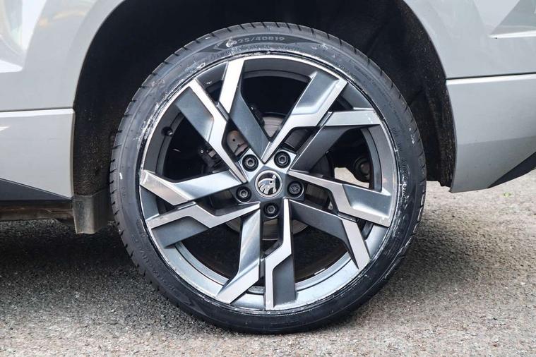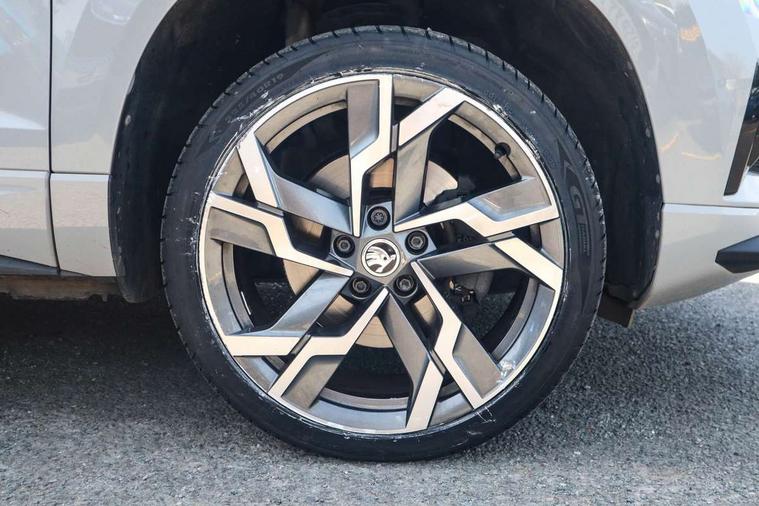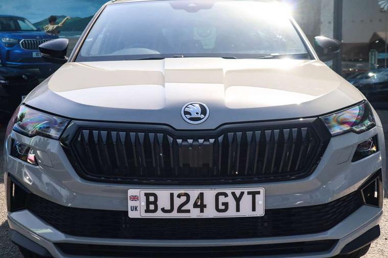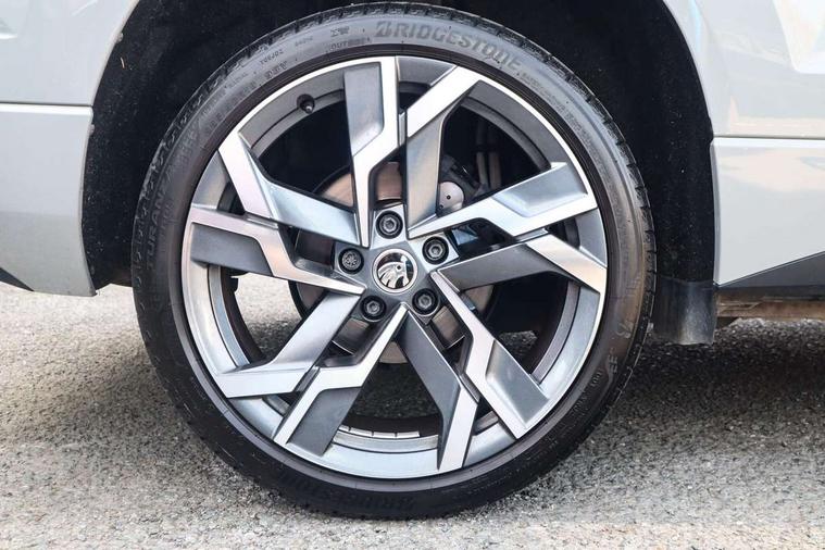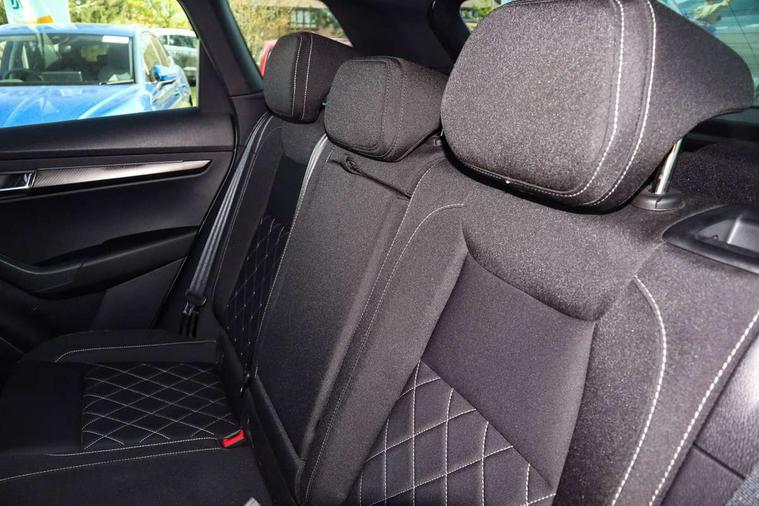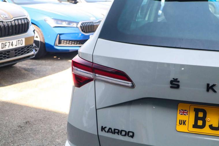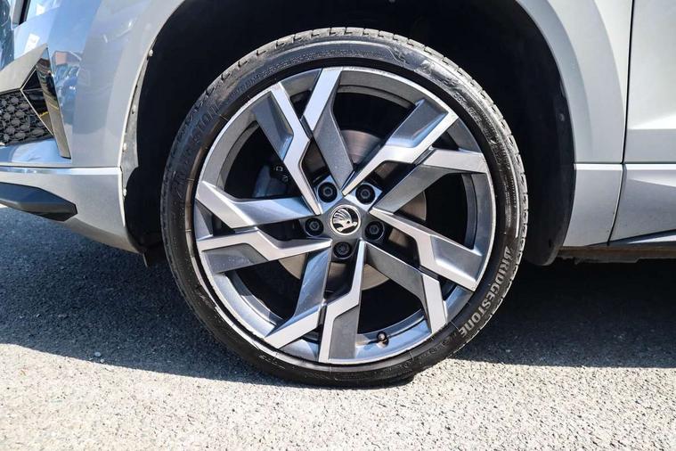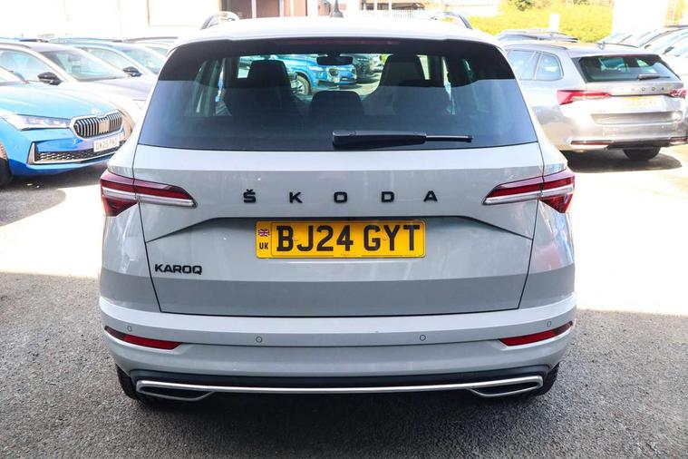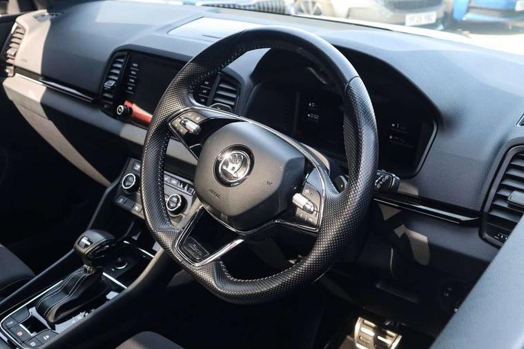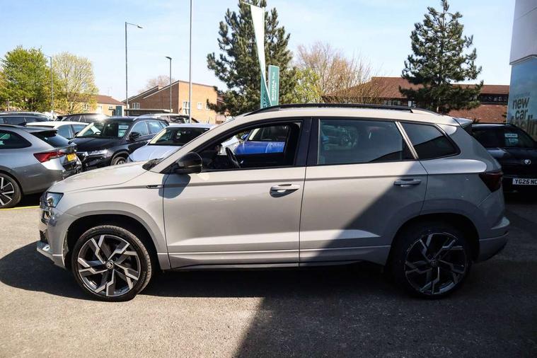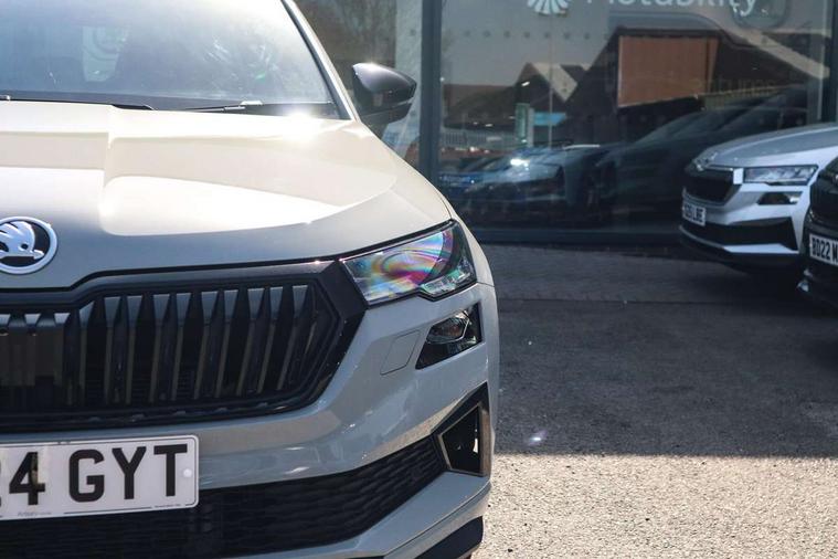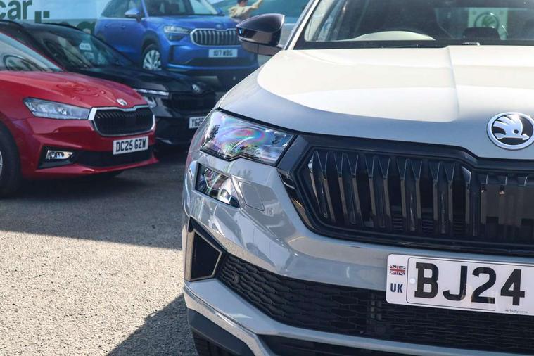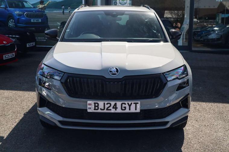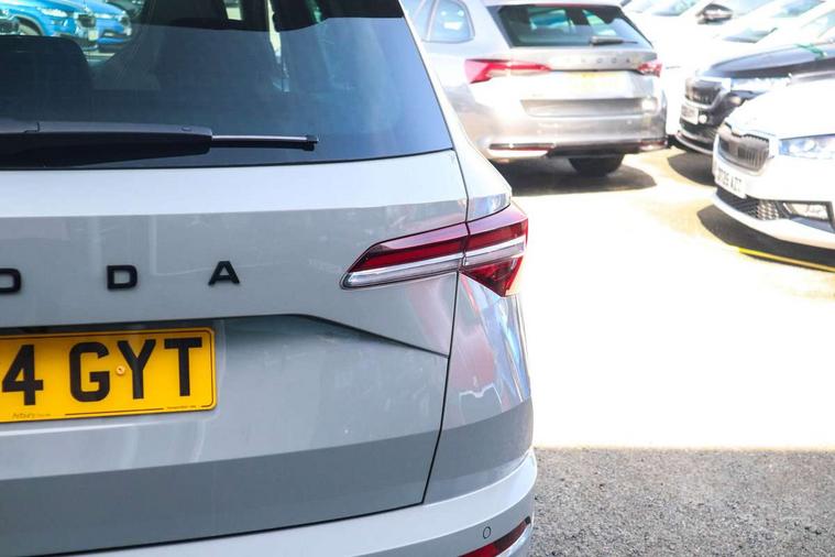 8" Digital display, Advanced driver attention and drowsiness monitor, Emergency services call system, Outside temperature gauge, Sensor for driver assistance systems, Service interval indicator, SmartLink wireless for Apple and wired for Android, Start/stop system with regenerative braking, USB C Port x 2 in front centre console, Virtual Cockpit - 10.25" digital display, Virtual pedal with electrically operated boot door, Wireless smartphone charging, Canton sound system, DAB radio with Bluetooth, USB connection, Acoustic glass, Aero front windscreen wipers with intermittent function, Auto dimming rear view mirror with light and rain sensors, Black door mirrors, Black electric window control buttons, Black radiator grille, Black roof rails, Body colour door handles, Electric front and rear windows with child proof lock, Front door steps with SportLine logo, Heated rear windscreen, LED 3rd brake light, LED daytime running lights, LED rear lights with high functionality welcome effect and dynamic indicators, Light assistant (coming/leaving home/tunnel light), Panoramic sliding sunroof, Plastic scuff plates in door apertures, Privacy glass, Protective door side sills in body colour, Rear diffuser, Rear side wing doors, Rear spoiler, Rear window wiper with washer system and intermittent control, Safety reflectors on front doors, Skoda lettering on tailgate in black, Sportline badge on front fender, Sportline decorative inserts with badging, Sports front and rear bumpers, 1.5 litre bottle holders in driver and front passenger door panels, 12V socket in boot, 12v socket in front centre armrest with storage compartment and rear air vents, 2 x Tablet holder, 3 rear height adjustable headrests, 3 seat bench in 2nd row, 3 spoke leather sports multifunction steering wheel and silver stitching with gear shift paddles, 4 foldable roof handles with rear coat hooks, Black floor carpet, Chrome inner door handles, Double sided boot floor, Foldable hooks in the boot, Front head restraints, Height adjustable front three point seats belts with tensioners, Height/reach adjust steering wheel, Ice scraper, Illuminated glovebox, Illuminated luggage compartment, Isofix child seat preparation for front passenger seat, Isofix child seat preparation outer rear, Manual lumbar support for front seats, Pen holder, Pollen filter, Rear boot cover, Rear reading lights, Rear seats fixed folding and divided 60:40, Rubbish bin door, Safety vest holder, Single front passenger seat, Storage box in upper central dashboard closed, Sunvisors with illuminated vanity mirrors, Textile floor mats, Ticket holder, Titan black interior ceiling, Umbrella under passenger seat, Under passenger seat storage compartment, Welcome animation with sportline logo, Light Pack - Karoq, Non Smokers pack, Automatic door unlocking in case of crash, Automatic fuel cut off in case of crash, Driver airbag, Electronic parking brake with auto hold function, Emergency rear braking signal, ESC including ABS, MSR, ASR, EDS, HBA, DSR, RBS, MKB and traction control, Front side airbags, Head airbags, Hill hold control, Knee airbags, Passenger airbag with switch-off function, Pedestrian monitor, Seatbelt reminder signalisation and pretensioner for all seats, Three point seatbelts rear, Two tone horn, Tyre pressure monitor, Alarm with interior monitoring, back up horn and tilt sensor with safe function, Electronic engine immobiliser, Keyless entry and start/stop, Remote central locking with 2 remote folding keys, Black air vent surround, Black centre console, carbon door decor, Satin black dashboard, Satin black door trim, 19" Sagittarius anthracite alloy wheels, Anti-theft wheel bolts protection, Breakdown and tool kit,