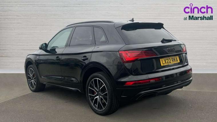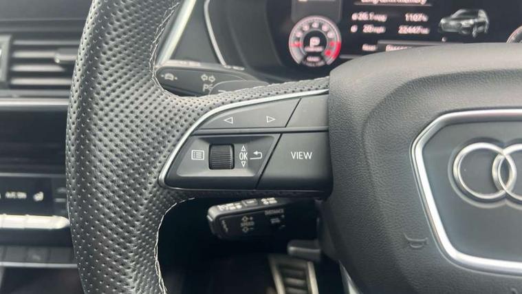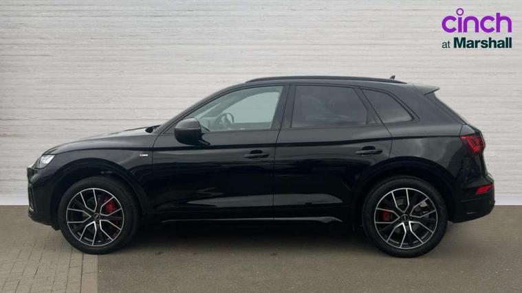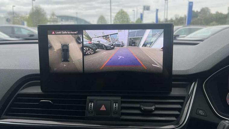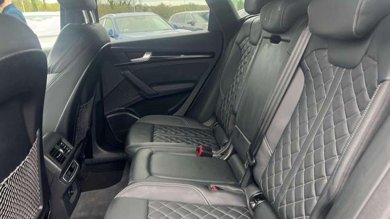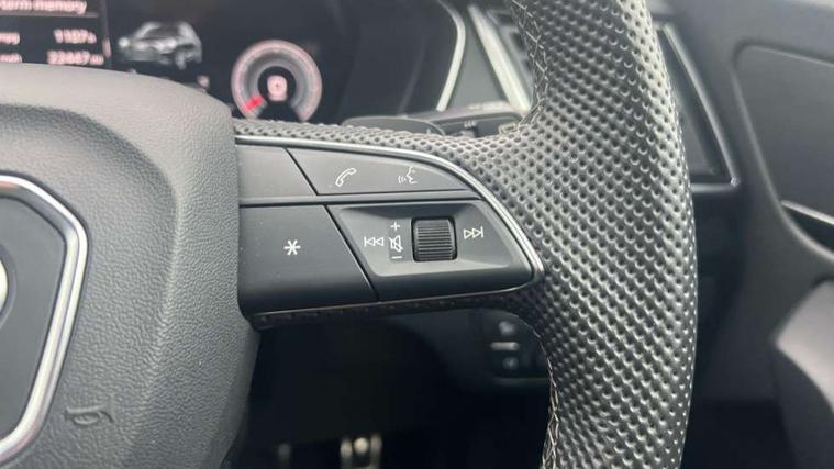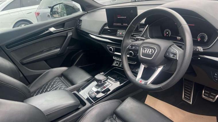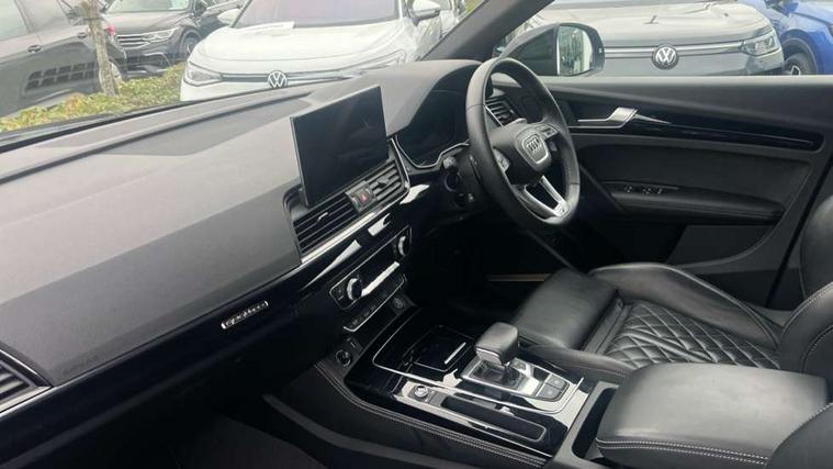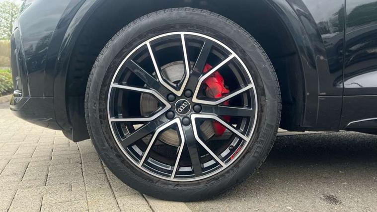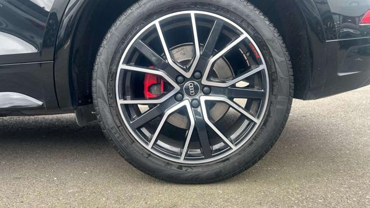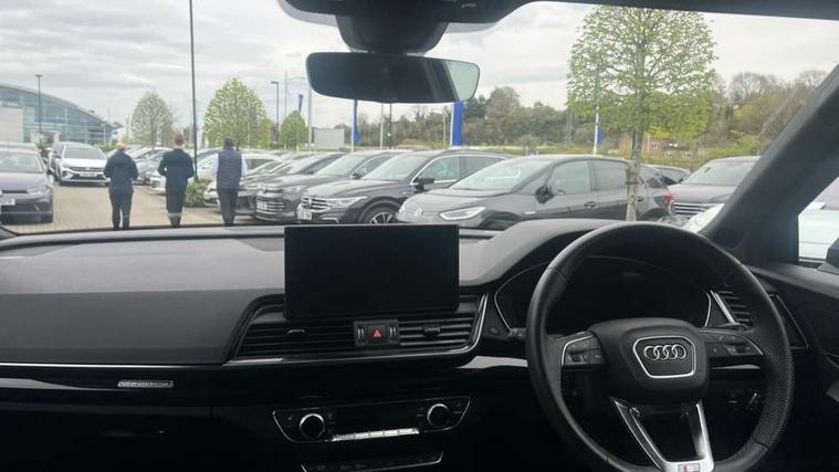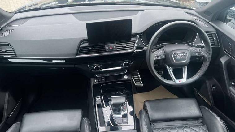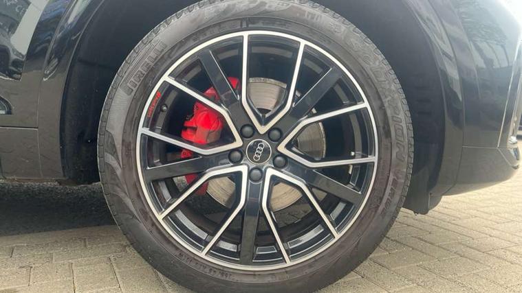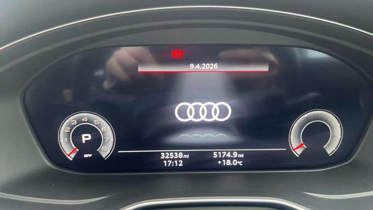 Audi connect safety and service (e-call), Audi connect with Amazon Alexa Integration, Audi drive select, Audi virtual cockpit plus with 12.3" screen and three different layout designs, Audi wireless smartphone interface, Automatic start-stop system with coasting functionality and efficiency programme, Bluetooth interface, Electro - mechanical power assisted steering, MMI navigation plus with 10.1" touch screen, Power tailgate, Reversing camera, Service interval indicator, Voice control system with Audi hotword activation "Hey Audi", Quattro on demand, S line sports suspension, 2 x USB charging port with aux input socket, DAB Digital radio, Acoustic windscreen, Audi beam with Audi rings logo, Audi matrix LED headlights with dynamic front and rear indicators, Audi rings at front and rear in black, Audi rings decal on rear doors, Auto dimming door mirrors, Auto dimming rear view mirror, Automatic headlights and windscreen wipers, Black door mirrors, Black roof rails, Body colour bumpers, Body colour underbody protection, Chrome plated exhaust trims, Daytime running lights, Door sills in Selenite silver, Electric adjustable/heated/folding door mirrors, Front air inlet surrounds in titanium black, Front and rear electric windows, Headlight washers, High gloss black B pillar trims and triangular rear door trim, High level LED brake light, Rear chrome trim strip below lights, Rear privacy glass and rear side windows, Rear side wing doors, Rear spoiler, Rear wiper, Roof bars, Without model and engine badging at rear, 3 rear headrests, 4 way electric lumbar support for driver and front passenger, 40:20:40 split folding 3 rear bench seat in 2nd row with rear centre armrest, Black cloth headlining, Comfort front centre armrest, Contrast stitching on seats, steering wheel and gear lever gaiter, Deluxe 3 zone electronic climate control, Electrically adjustable front seats, Fine Nappa leather upholstery with diamond pattern contrast stitching + front sport seats with S embossed logo, Front/rear floor mats, Gear lever in black leather, Heated front seats, Height adjustable front head restraints, Height/reach adjustable steering column, Illuminated door sill trims with S logo, ISOFIX child seat mounting and top tether, Luggage compartment cover, Rear seat bench plus, Removable luggage compartment floor, Single front passenger seat, Stainless steel pedals, Sunvisors with vanity mirrors, Black styling package - Q5 Edition 1, Extended interior upholstery pack - Q5, Extended LED Interior multi coloured Lighting Pack - Q5, 3 point seatbelts on all seats, 6 airbags - Driver, front passenger, curtain and side airbags, Electrically operated child locks on rear doors, Electromechanical parking brake, Electronic stabilisation control including ABS, ASR and EDL, Front and rear brake calipers painted in red, Front passenger airbag deactivation, Hill descent control, Hill hold assist, Multi collision brake assist, Pop-up bonnet for pedestrian protection, Pre sense city, Seat belt force limiter, Seatbelt monitoring, Tyre pressure warning, Warning triangle and first aid kit, Anti theft alarm, Anti-theft wheel bolts, Keyless Go access/ignition system, Remote central locking, Piano black finish inlay,