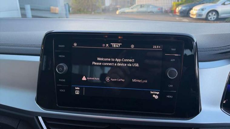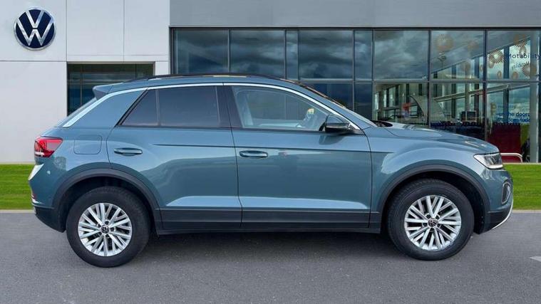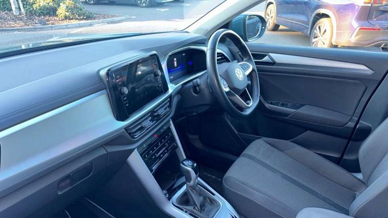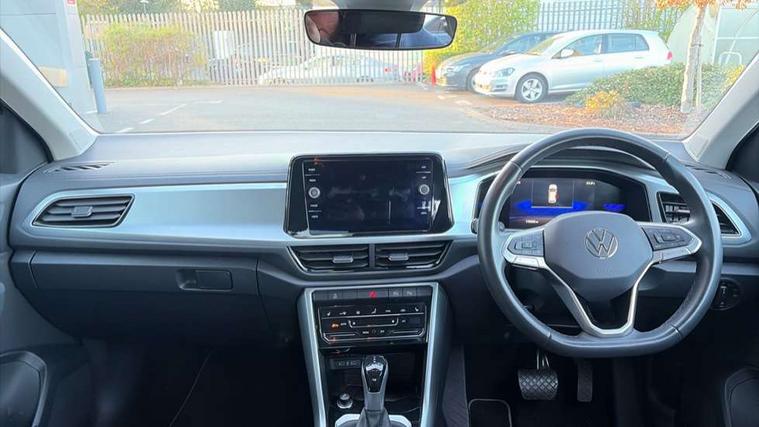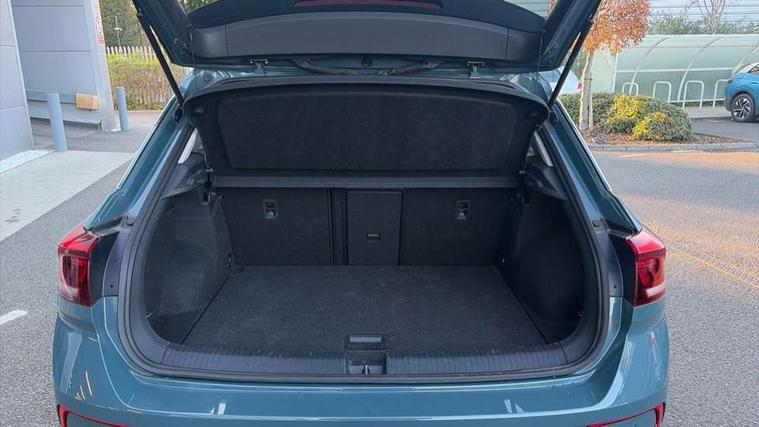 Bluetooth mobile phone interface, Driver alert system with fatigue detection, Driver tips and journey analysis, Emergency call service, Lane keeping system Lane Assist, Modified key software - reduce switch off time for key status change to Long no motion, Online services, Park assist including front and rear parking sensors, Power assisted speed sensitive steering, Service interval indicator, Tailgate/trunk lid release from outside, Think blue trainer driver tips and journey analysis, Warning sound and light for front seatbelts unfastened, Wireless app connect, Battery regeneration during braking, Front shock absorption, Rear shock absorption chassis with increased ride height, Start/stop function with battery regeneration, DAB Digital radio, Diversity antenna for FM reception, Front and rear 6 speakers, Music playback - MP3, WMA and AAC files, Premium USB cable in choice of either Apple or Android smartphone compatibility, SD card slot, Simultaneous pairing of 2 compatible mobile devices, Title and cover art display, We Connect and We Connect Plus functionality, 3rd brake light, Auto dimming interior rear view mirror, Automatic hazard lights activation under emergency braking, Automatic headlight control with LED separate daytime running lights with coming/leaving home function, Black roof rails, Body coloured bumpers and radiator grille with chrome trim and front fog lamps with chrome bezel, Body coloured exterior mirror housings and door handles, Extended roof spoiler, Exterior mirrors aspherical on driver side, convex on front passenger side, External USB type C socket and charging sockets, Front windscreen wiper with intermittent wipe and 4 position delay, Heated rear window, LED Headlights, LED rear combination lamps, LED rear number plate lights, LED tail lamp rear comination lamps, Power windows with comfort operation and circuit breaker, Rain sensor, Rear exhaust tailpipe, Rear fog light on one side and reversing lights on both sides, Rear side wing doors, Rear wash/wipe with intermittent wipe setting, Remote electrically foldable door mirrors, puddle lights and reverse activated passenger's door mirror, 12V power socket in centre console, 3 rear head restraints, 3 seat bench in 2nd row, 4 load lashing points in luggage compartment, Air care climatronic air conditoning system with active combination filter and 2-zone temperature control, Ambient lighting with mirror logo projection, Cloth upholstery, Door and side trim panel in cloth, Drawer under drivers seat, Driver/front passenger seat height adjustment, Front centre armrest, Front comfort sports seats, Front cupholders x 2, Front reading light, Instrument lighting, white adjustable panel illumination, Interior light delay, Isofix child seat preparation, Leather gearshift handle, Load-through provision with cup holder when folded down ('Unsplit rear seat bench, split folding backrest, with centre armrest), Luggage compartment lighting, Lumbar support for driver's and front passengers seat, Non-folding front passenger seat backrest, Single front passenger seat, Storage compartment in left and right luggage area, Storage compartment in rear doors, Storage compartments in driver and front passenger doors, Sunvisors with illuminated vanity mirrors, Variable boot floor, height adjustable and removable, Driver assistance pack without proactive passenger protection - T-Roc, 3 point height adj front seatbelts + pretensioners, 3 point seatbelts in outer rear with ECE label, ABS, Child locks on rear doors, Driver and front passenger airbag with front passenger airbag deactivation, Driver and front passenger safety-optimised head restraints, Drivers seatbelt reminder, Electronic parking brake, Electronic Stability Control (ESC) inc EDL (Electronic Differential Lock) and ASR (Traction Control), Front and rear passengers curtain airbag system including front side airbags, Front assist with city emergency braking and pedestrian monitoring, Front disc brakes, Front seat side impact airbags, Hill start assist, Predictive pedestrian protection, Rear disc brakes, Single tone horn, Tyre pressure loss indicator, Volkswagen roadside assistance, Alarm with interior protection, Anti-theft alarm system with interior monitoring, backup horn, and towing protection, Remote central locking with SAFELOCK, radio remote control with 2 remote control folding keys, Pewter matt decorative inserts for intrument panel, centre console and door panels at the front, Trims for alloy wheels,
