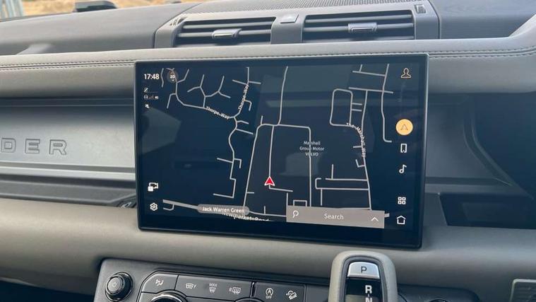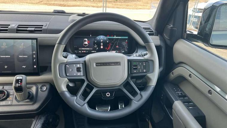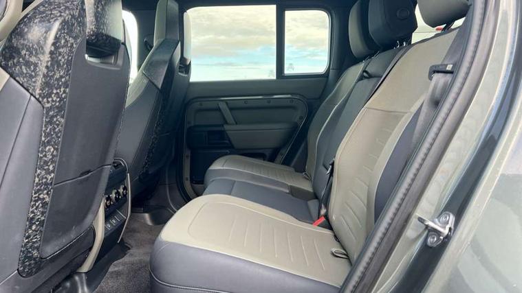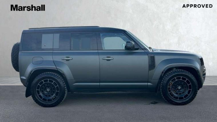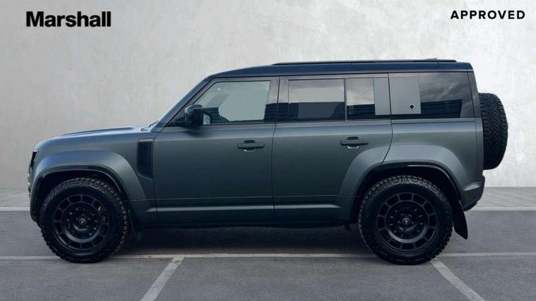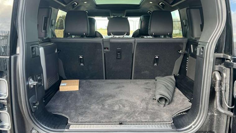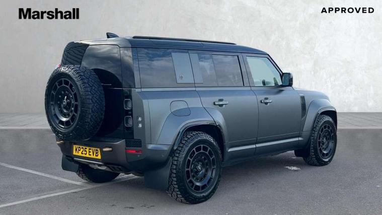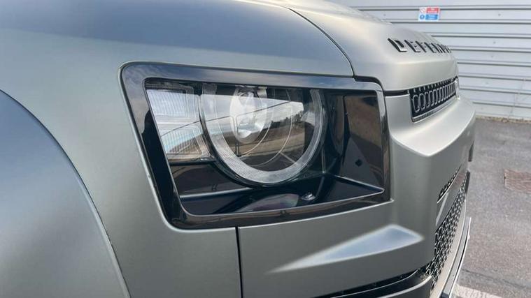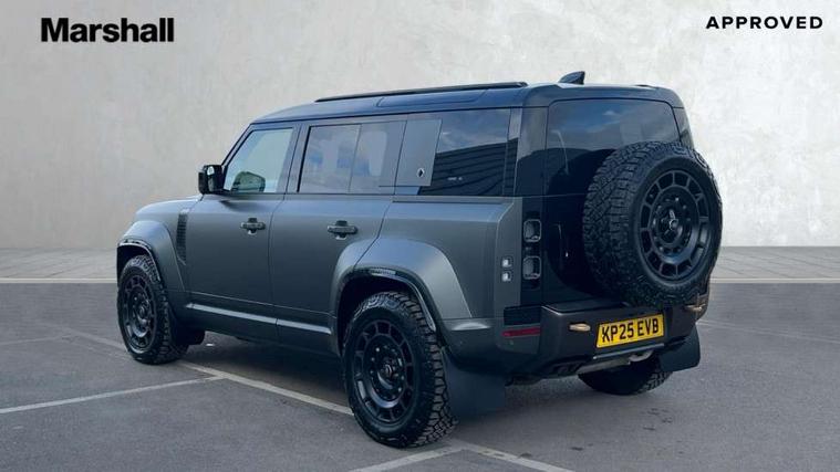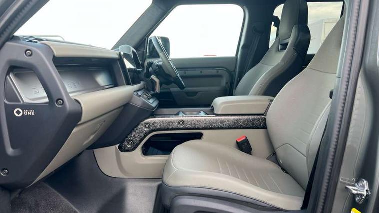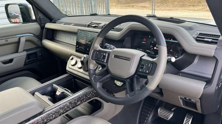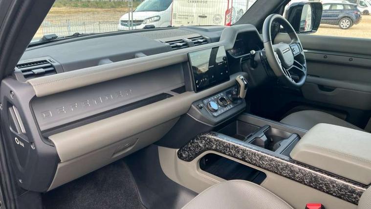 1 x USB-C (power only) & 1 x USB-C (power & data) in Row 1, 2 x USB-C in Row 2, 11.4" touchscreen, 360 degree parking aid, 3D Surround Camera with 360 View, 180 Rear View, Front Traffic Detection, Forward Vehicle Guidance, Tow Hitch Assist and clear sight Ground View, Adaptive cruise control, Android Auto, Apple CarPlay, Blind spot assist, Bluetooth system, Brake pad wear indicator, Clear exit monitor, Configurable programs, Connected navigation pro, Driver condition monitor, Electric power assisted steering (EPAS), Garage door opener (Homelink), Head up Display, Interactive driver display, Lane keep assist, Push button start, Rear collision monitor, Rear traffic monitor, Traffic sign recognition with adaptive speed limiter, Trip computer, Wade Sensing, Wireless device charging, 6D Dynamics, 8 speed automatic transmission, All terrain progress control, All wheel drive system, Electronic active differential with brake torque vectoring, Terrain Response 2 with dynamic program, Twin speed transfer box, DAB Radio (Digital Audio Broadcasting), Meridian 700w surround sound audio system with 15 speakers, Pivi pro connected, Advanced tow assist, Automatic headlight levelling, Automatic headlights, Black contrast roof, Black contrast tail door, ClearSight interior rear view mirror, Darkened LED tail lights, Electric heated/power fold door mirrors with approach lights and auto dimming driver side, Electric windows with one touch open/close and anti-trap, Follow me home lighting, Front fog lights, Graphite front undershield, Headlamp power wash, Heated rear window with timer, Heated washer jets, Heated windscreen, Illuminated metal treadplates with brand name script, LED 3rd brake light, Matrix LED headlights with signature DRL, Octa badge, Phosphor bronze exposed rear recovery eyes, Privacy glass, Puddle lights, Rain sensing windscreen wipers, Rear fog lights, Rear side wing doors, Rear wiper, Satin black exhaust finisher, Side hinged tailgate, Signature graphic (with interior storage), Sliding panoramic roof, Solar attenuating windscreen, Trailer stability assist, 12V power socket in loadspace, 14 way heated and cooled electric memory performance front seats, 3 seat bench in 2nd row, 40:20:40 folding, heated rear seats with centre armrest, Air quality sensor, Alpine lights, Body and soul seat, Bright metal pedals, Cabin Air Purification plus, Chopped carbon fibre seatback, Configurable cabin lighting, Domestic plug socket, Durable rubber cabin flooring, Durable rubber loadspace flooring, Edge illuminated paddle shifters, Electric cabin pre conditioning, Electric reach + rake adjustable steering column, Electrically adjustable steering column, Footwell lights, Front centre console refrigerator compartment, Front head restraints, Front passenger isofix child seat attachment, Heated steering wheel, Loadspace cover, Loadspace Hook, Multifunction steering wheel, No flat load floor storage, Overhead stowage for sunglasses, Rear headrests, Rear ISOFIX, Rear reading lights, Signature carpet mats, Signature interior upgrade, Single front passenger seat, Soft close tail door, Standard seat configuration, Storage glovebox, Sunvisors with illuminated vanity mirrors, Three-zone Climate Control with Rear Cooling Assist, Twin front cupholders, Chopped carbon fibre exterior pack - Defender, Non-smoker package, Online pack with data plan - Defender, 5 x 3 point seatbelts, ABS, Brake hold function, Cornering brake control (CBC), Cross car beam in metallic grey powder coat brushed finish, Customer configurable autolock, Driver and passenger airbags, DSC - Dynamic Stability Control, EBD - Electronic brakeforce distribution, Electric parking brake (EPB), Emergency brake assist, Emergency braking, ESP + traction control, Front airbags with passenger seat occupant detector, HDC - Hill descent control, Hill launch assist, Low traction launch, Phosphor bronze front brake calipers, Power operated child locks, Remote for (e-Call, Optimised assistance call, InControl app, Climate, beep and flash and door), RSC - Roll stability control, Seat belt reminder, TPMS (Tyre pressure monitoring system), Alarm, Immobiliser, Intrusion sensor, Keyless entry, Locking wheel nuts, Secure tracker pro, Chopped carbon fibre finisher,