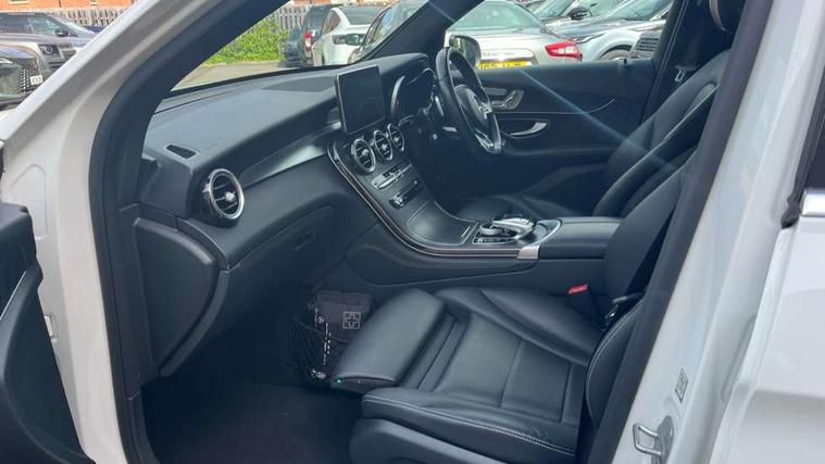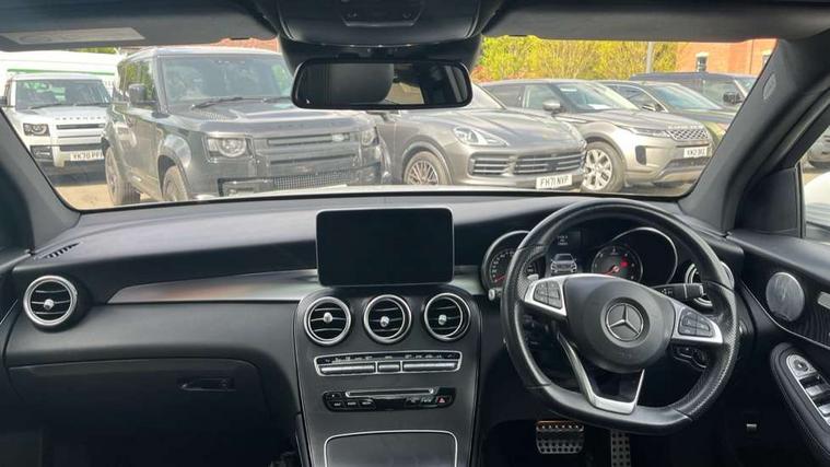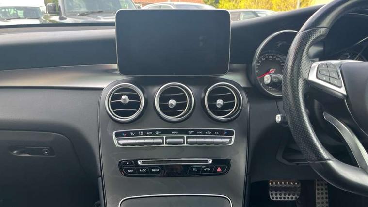 Active park assist with parktronic system, Attention assist, Bluetooth interface for hands free telephone, Collision prevention assist, COMAND online nav with colour display, radio/CD/DVD/MP3, SD card, 10GB music, Emergency Call system, speed limit assist, linguatronic voice control, Crosswind Assist, Cruise control with speedtronic variable speed limiter, DYNAMIC SELECT with a choice of driving modes (ECO, Comfort, Sport, Sport+ and Individual), Multi function trip computer, Outside temperature gauge, Power opening/closing tailgate, Remote boot release, Speed sensitive steering, Touch pad controller for infotainment system, Traffic sign recognition, Diesel particulate filter, Burmester surround sound system, DAB Digital radio, USB connection, Adaptive brake lights, Aerodynamic rear spoiler, AMG bodystyling, Automatic headlights, Body coloured bumpers, Electric panoramic sunroof with sunblind, Electric windows one touch open/close, Electrically adjustable and heated door mirrors, Exhaust tailpipe finisher, Heated windscreen washers, LED daytime running lights, LED rear lamps, Privacy glass (to rear of B post), Rain sensor windscreen wipers, Range adjustable headlights, Rear wiper, Tinted glass all round, 2 cupholders in front centre console, 2 way rear head restraints, 3 spoke flat bottom AMG steering wheel in nappa leather, 4 way adjustable front head restraints, 4 way electric lumbar support for driver and front passenger, 40:20:40 split folding rear seats, AMG floor mats, AMG sports seats, Auto Mercedes-Benz child seat recognition sensor, Automatic climate control, Black roof lining, Dividing net - rear, Electric front seat height adjustment, Front door sills with Mercedes Benz lettering, Gearshift paddles, Heated front seats, Height/reach adjustable steering column, Illuminated glovebox, LED interior illumination, Multifunction steering wheel, Rear top tether child seat ISOFIX attachment, Sports pedals with stainless steel surfaces and rubber studs, Sunvisors with illuminated vanity mirrors, Easy-pack load compartment cover, Interior lighting pack - GLC, Memory pack - GLC, Mirror pack - GLC, Storage pack - GLC, 3 rear 3 point seatbelts, ABS with Brake Assist, Active bonnet, Adaptive brake system, Child proof door locks, Drivers knee airbag, Dual stage driver/passenger airbags, Electronic parking brake, ESP with ASR, Front and rear seatbelt reminder, Front passenger seat occupancy sensor, Front side airbags, Tyre pressure monitoring system, Warning triangle and first aid kit, Window airbags, Alarm system/interior protection/immobiliser, Automatic door locking, Keyless entry and keyless start, Remote central locking, Tyre inflation kit,