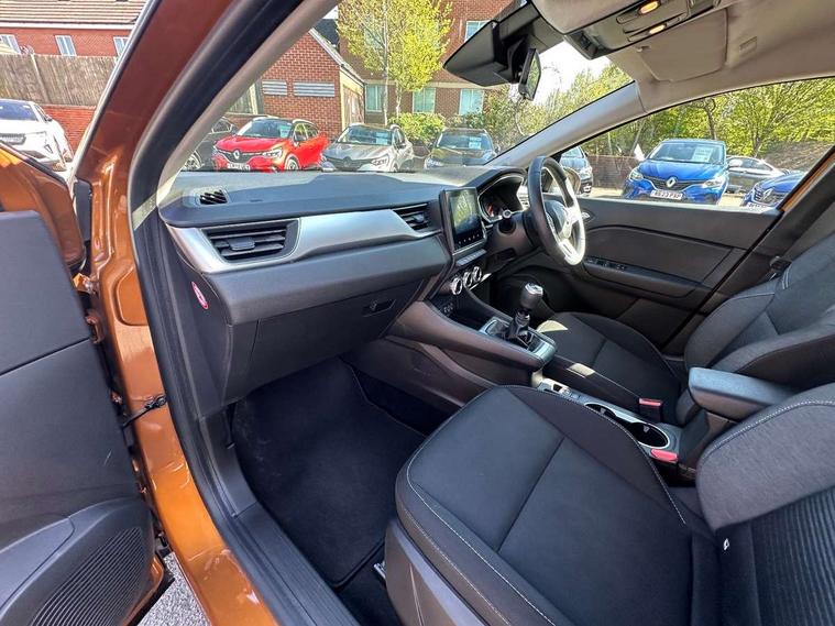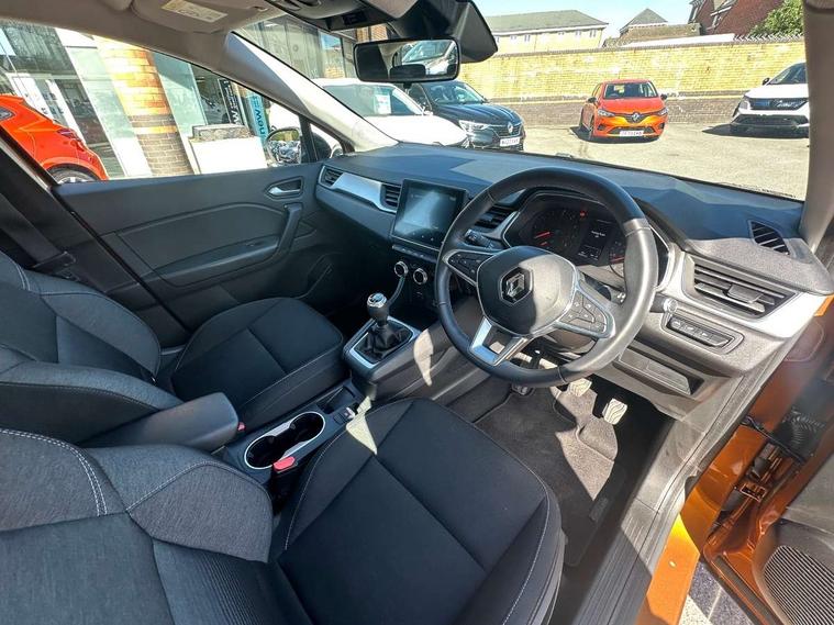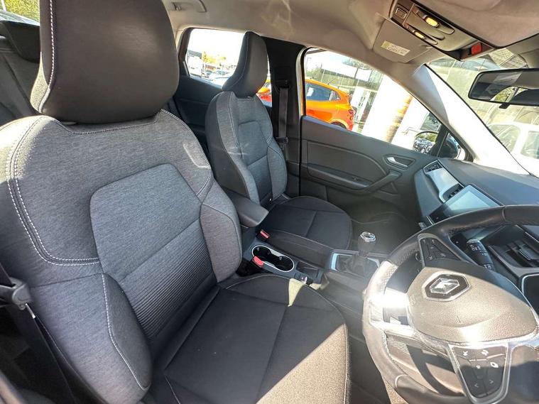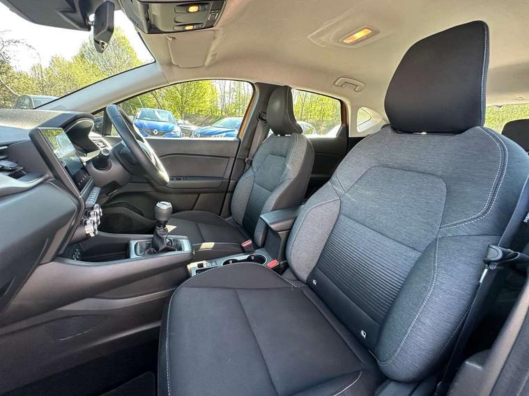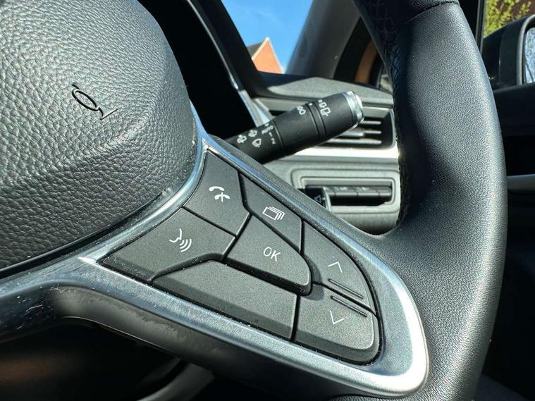 4.2" TFT Driver information display, Cruise control + speed limiter, eCall emergency call system, Eco mode, Gear change indicator, Lane departure warning system, Lane keep assist, Renault automatic emergency assist, Traffic sign recognition, Trip computer, Variable assistance power steering, EasyLink 7" touchscreen, 4x20W amp, FM DAB, sound auditorium, 2xUSB, 1xJack, Bluetooth, smartphone integration plus, Apple carplay/Android auto, Automatic front wipers with rain sensors, Automatic headlights, Body colour door handles, Body coloured bumpers, Body coloured door mirrors, Electric adjustable/heated/folding door mirrors, Electric front windows + one touch + anti-pinch, Electric rear windows, Full LED front and rear headlamps integrating daytime running lights at the front and rear, Gloss black side door protection with chrome effect, LED front fog lights, Rear fog lights, Rear wiper, Tinted rear windows, Variable speed on front windscreen wipers, 12V Accessory socket, 3 rear headrests, 5.2L front glovebox, 60/40 split folding rear seat bench, Automatic climate control with one touch demist function, Centre console storage tray, Cloth upholstery, Front head restraints, Heating system with pollen filter, Height adjustable driver's seat, Height/reach adjust steering wheel, ISOFIX child seat fixing points on rear outermost seats, Middle console with armrest and storage, Rear air vents, Synthetic leather steering wheel, 3 rear seatbelts, ABS+EBA, AEBS, Distance warning alert, Driver and front passenger, side, head and curtain airbags, Driver height adjustable seat belt, Electric parking brake, Electronic stability control, Front and rear no seatbelt warning sound, Front dash warning indicator in case of heavy braking, Front driver and passenger side airbag deactivation, Hill start assist, Rear door and window child locking function for rear door, Tyre pressure warning light, Anti drill door locks and locking fuel cap, Deadlocking system, Hands free keycard with push button and start/stop function, RAID (Renault Anti-Intruder Device) automatic door locking, Remote central locking with thatcham approved immobiliser, Black soft touch dashboard with black gloss air vent surrounds, 17" Nymphea flex steel wheels,