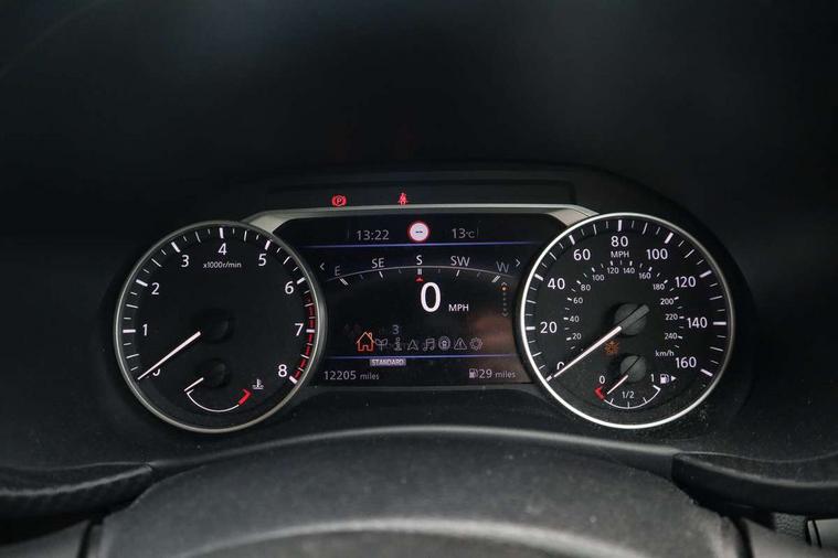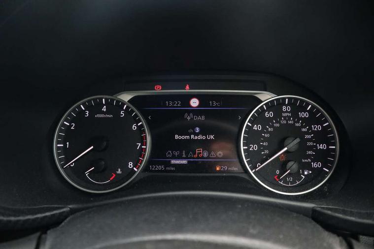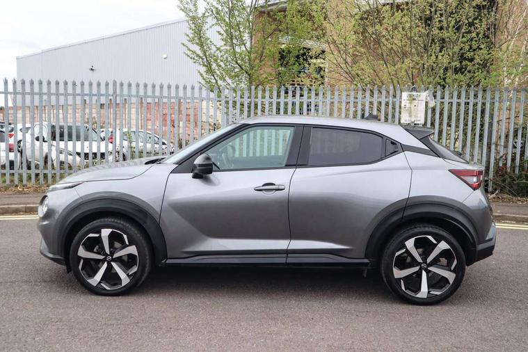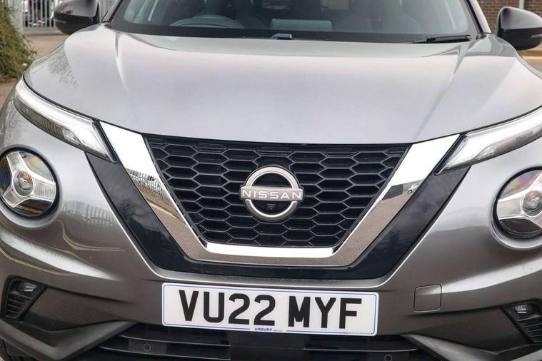 7" full colour TFT screen combimeter, Apple CarPlay and Google Android auto, Drive modes select (Eco, normal and sport), Emergency and breakdown call, Front parking sensor, Idle start/stop system, Intelligent lane intervention, Lane departure warning system, Nissan connect 8" touch screen entertainment system, Nissan connect nav with TomTom traffic, Nissan connect services and Wifi connection, Outside temperature sensor, Power Steering, Rear parking sensor, Traffic sign recognition, Trip computer, Voice recognition, Gasoline particulate filter, 10 Bose speakers 6 speakers and 2 headrest speakers for driver/passenger seats, Bluetooth system, USB, Aux-in and 12V socket, Bose personal sound stage control, DAB Digital radio, Rear console USB port, Auto dimming interior rear view mirror, Auto headlights, Automatic hazard signal with emergency stop signal, Body colour bumpers, Body colour door handles, Electrically adjustable door mirrors with integrated indicators, Follow me home headlights, Front and rear electric window with one touch driver window, Heated and auto folding door mirrors, High beam assist, LED daytime running lights, LED front fog lights, LED headlamps, LED rear fog lamp, LED rear lamps, Rain sensor windscreen wipers, Rear privacy glass, Rear side wing doors, Rear wiper, Thermaclear heated windscreen, Three blink turn signal, 3 height adjustable rear headrests, 3 seat bench in 2nd row, 60/40 split folding rear seat, Automatic climate control, Card holder on driver sunvisor, Door ambient lighting, Driver and passenger sliding and reclining seats, Driver seat back pocket, Driver side rear coat hanger, Driver/passenger sunvisors and vanity mirrors, Front and rear cabin lights, Front armrest, Front door pockets with bottle holders, Front head restraints, Front passenger isofix child seat anchorage point, Front/rear passenger grab handles, Gear console ambient circle lighting, Grey synthetic leather kneepad, Heated front seats, Height adjustable driver's seat, Height adjustable passenger seat, Internal chrome door handles, Leather gearshift knob, Leather steering wheel, Luggage board, Luggage space lighting, Monoform sporty seats, Multifunction steering wheel, Passenger seat back pocket, Rear door bottle holders, Single front passenger seat, Synthetic leather upholstery, Telescopic steering wheel adjustment, Two cupholders in front centre console, Two rear isofix child seat anchorage points with top tether, Welcome light and console tray ambient lighting, Advanced safety shield pack - Juke, ABS with EBD and brake assist, Active ride control, Active Trace Control, Driver and passenger airbags, Driver and passenger side airbags, Electric handbrake with auto hold function, Electronic Stability Programme (ESP), Front and rear curtain airbags, Height adjustable seatbelts, Hill start assist, Intelligent emergency braking with pedestrian and cyclist recognition, Rear door child safety locks, Seatbelt reminder for driver/front passenger and rear seats, Single tone horn, Three 3 point rear seatbelts, Traction control, Tyre pressure monitoring system, VDC Dynamic Vehicle Control, Ventilated rear brake discs, Alarm, Immobiliser, Intelligent key and start push button with walk away lock and approach unlock functions, Remote central locking,