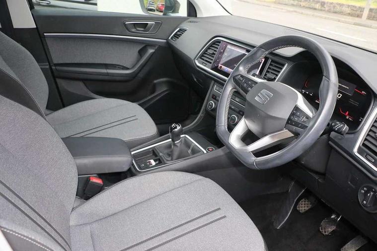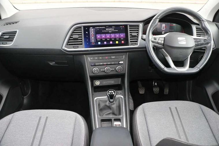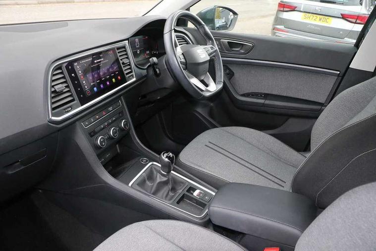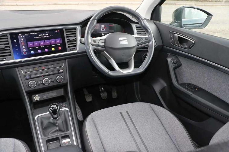 8" Digital cockpit, Colour multi-function on board computer display, Cruise control system with speed limiter, E-call, Outside temperature gauge, PAS, Self parking functionality (includes front and rear parking sensors), Start/stop system, Tailgate, Trip computer, Wireless full link smartphone integration, Wireless phone charger, Steering wheel mounted audio/phone controls, Black wheel arch surrounds, Body colour bumpers, Chrome front grille frame, Chrome roof rails, Chrome side window trim, Daytime running lights, Door mirrors with welcome light silhouette, Dynamic headlight range control with self adjusting whilst driving, Electric adjustable/heated/folding door mirrors, Front and rear electric windows, Full LED headlamps with lens and LED front fog lamps with cornering function, LED rear tail lights with dynamic indicators, Rear fog lights, Rear side wing doors, Rear wash/wipe, Simulated exhaust pipes, Third brake light, Variable front intermittent wipers, 12V socket in front, 3 seat bench in 2nd row, 60/40 split folding rear seat, Cloth upholstery with front comfort seats, Drawer under right front seat, Dual zone climate control, Front and rear head restraints, Front centre armrest, Front seat back storage pockets, Height adjustable driver and passenger seat with lumbar adjustment, ISOFIX points in outer rear seats with top tether anchorage points, Leather steering wheel and gear knob, Rear armrest and easy back seat release mechanism from boot, Single front passenger seat, Interior lighting pack - Ateca, Navigation system pack with DAB - Ateca, 3x3 point rear seatbelts, ABS, Traction control system (TCS), Electronic stability control (ESC) and Electronic differential lock system (XDS), Airbags - Driver and front passenger airbag with deactivation, front side, two curtain and driver's knee airbags, Electric parking brake with auto hold function, Front and rear seatbelt reminder, Front assist with autonomous emergency braking, Hill hold control, Manual rear child locks, Single tone horn, Tiredness recognition system, Traction control, Tyre pressure monitoring system, Alarm, Keyless entry, Locking wheel bolts, Remote central locking, Chrome interior detailing, 18" Performance machined alloy wheels 36/2 in nuclear grey,