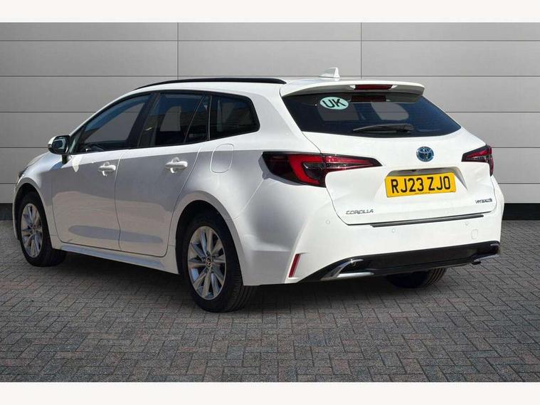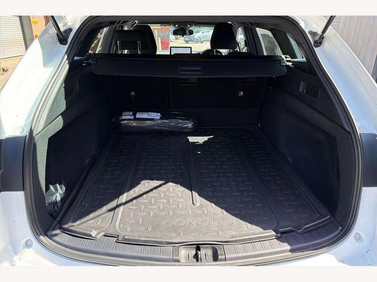 10.5" Multimedia display screen, Attention assist, Bluetooth telephone connectivity, Connected car functionality upgrade, tracker, remote status and e-care, Drive mode select (Eco, Normal), E-call, Electrically assisted power steering, EV drive indicator, Front and rear parking sensors with auto brake, Full Digital 12.3" TFT Digital Combimeter, Key reminder warning, Lane Departure Alert (LDA) switch on steering wheel, Memory on adjustable speed limiter, MyT connected services, Proactive driving assist (PDA), Reversing camera, Smart entry and push button start, Smartphone integration with Apple CarPlay and wired android auto, Tailgate, Toyota remote services, Toyota smart connect navigation, Wireless charger, Gasoline particulate filter, Vehicle Stability Control (VSC), 6 speakers, AM/FM radio, DAB Digital radio, Front USB-C in dashboard, Smart voice assist/ Voice recognition, USB and Aux in connectors + 12V front outlet, Anti-jam protection on power windows, Auto up and down function on all power windows, Automatic headlights with high beam assist, Black centre and side air vents, Black meshed front grille, Black roof rails, Black toyota logo in front, Body coloured bumpers, Body coloured door mirrors, Body coloured front spoiler, Body coloured outside door handles, Body coloured rear under guard, COROLLA alloy door scuff plates, Follow me home headlights, LED daytime running lights, LED front fog lights, LED High mounted stop light, LED multi beam headlights, LED multi reflector in headlights, LED rear combi lights with LED lightguide, Manual day/night rear view mirror, Manual headlight levelling system, New grille pattern, Noise reduction layer on front windows, Noise reduction layer on windscreen, Piano black diffuser, Power adjustable heated door mirrors, Power front windows, Power rear windows, Rain sensor, Rear side wing doors, Rear window defogger, Rear window wiper, Roof spoiler, Satin chrome insert on front air vents, Satin chrome insert on front door assist grips, Satin chrome inserts on rear passenger air vents, Shark fin antenna, Time adjustment on intermittent wiper, Turning signal integrated indicators in door mirrors, Unique lower skirt, Unique side rocker with black insert, UV-filter on driver and passenger windows, 12v power outlet - luggage side, 2 Shopping bag hooks in luggage compartment, 3 rear headrests, 3 seat bench in 2nd row, 3 spoke leather steering wheel with satin insert + gear knob, 4 tie down hooks in luggage compartment, 60/40 split folding rear seat, Adaptive cruise control (ACC) switch on steering wheel, Adjustable speed limiter switch on steering wheel, Audio, multimedia and telephone switches on steering wheel, Black armrest on centre console box, Black gear shift console, Boot light, Boot underfloor storage, Driver and front passenger personal light, Driver and passenger assist grip, Driver and passenger sun visor with mirror and light, Dual level boot floor, Dual sided deck board in boot, Dual zone automatic air conditioning with ECO mode switch, Fabric upholstery, Front and rear cup and bottle holders, Front and rear door pockets, Front head restraints, Front passenger seat, Front sliding fabric armrest, Heated seats, Illuminated entry system in room lamp, ISOFIX seat fixing (2 fixings on rear outer seats), Leather gear shift with satin chrome on gear shift console, Manual height adjustable for driver and front passenger seat, Manually tilt with sliding driver and front passenger seat, Passenger seat back pocket, Pollen filter, Power adjustable lumbar support on driver seat, Power window switches with satin chrome inserts, Rear armrest with 2 cupholders, Rear passenger coat hooks (2), Rear passenger personal lights, Remote air conditioning, Retractable tonneau cover with luggage partition net, Satin chrome inside door handles, Satin chrome surround on heater control panel, Satin chrome surround on speedometer, Side storage in boot, Sliding armrest on centre console box, Slow opening glovebox with lights, Textile floor mats, Tilt/telescopic steering column, Tonneau cover with under floor storage, Toyota easy flat system, Voice recognition switch on steering wheel, Whiplash Injury Lessening (WIL) feature (active headrest) for seats, Toyota safety sense 3 pack - Corolla, 3x3 point rear seatbelts, Adjustable driver and front passenger seat belt extender to top anchor point, Anti lock braking system + Electronic brake force distribution, Brake assist function, Child locks on rear doors, Downhill Assist Control (DAC), Electronic parking brake, Emergency brake light signal (EBS), Front passenger airbag on/off switch, Front seatbelt reminder, HAC - Hill start assist control, Rear seat belt reminder, Seatbelt pretensioners and force limiters, Supplemental restraint system (SRS) 7 airbags - dual driver, dual side curtain, side impact and driver knee airbags, Traction control, Tyre pressure warning system, Acoustic vehicle alert system (AVAS), Alarm with motion sensor and immobilizer, Power passenger window lock, Remote central locking + deadlocks, Satin chrome dash trim, Soft touch texture on upper dashboard, Stitching on lower dashboard, 16" 5 double spoke alloy wheels, Tyre repair kit, Unique wheel finish with red wheel cap,