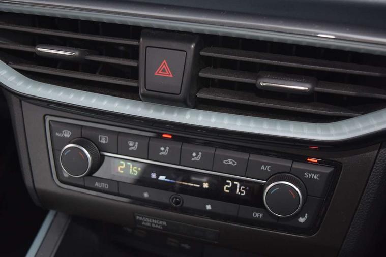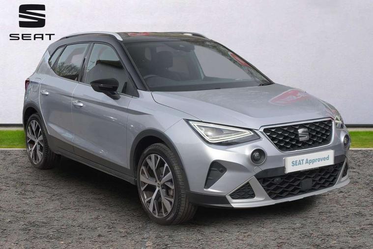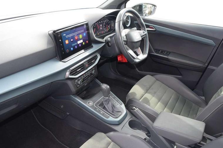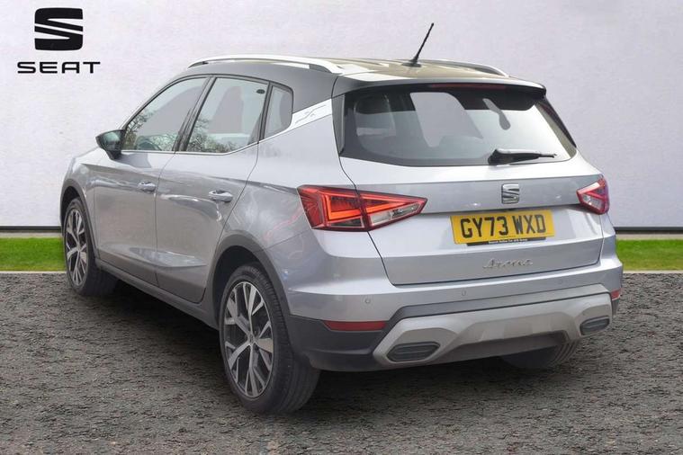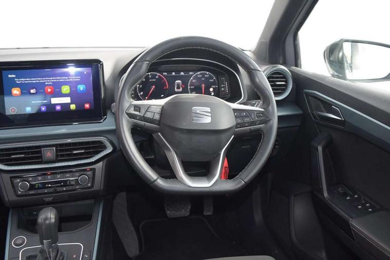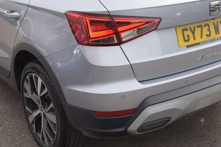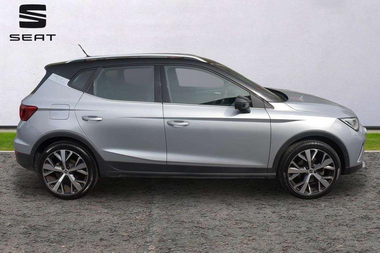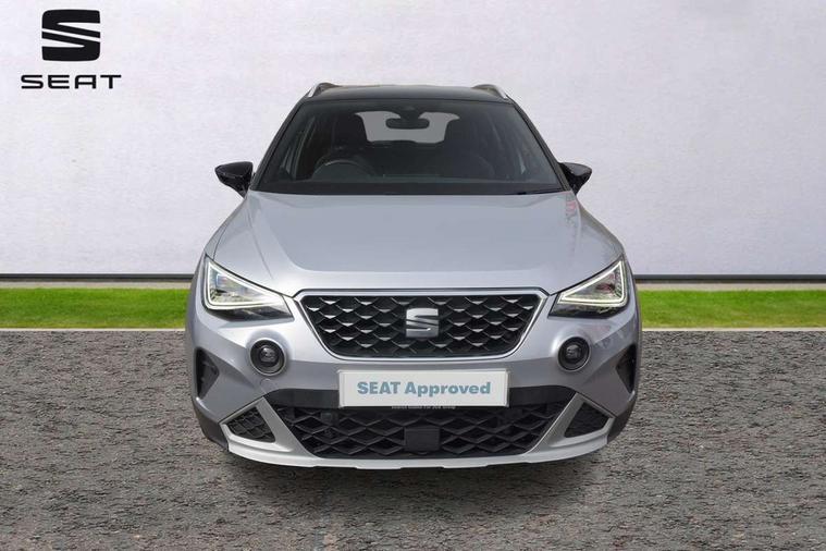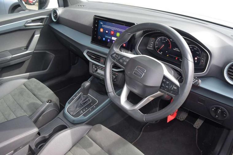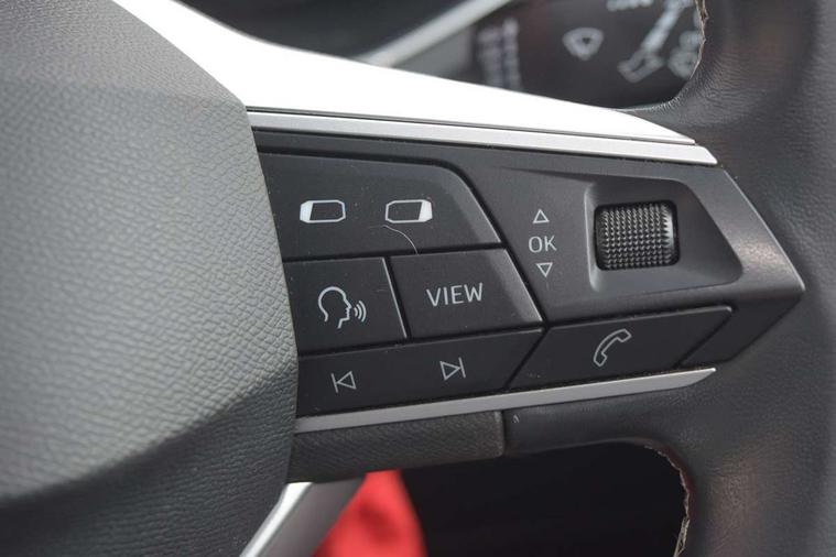 'Lights On' Reminder warning buzzer, 10" Digital cockpit, Digital clock, E-call, Electric speed sensitive power steering, Front parking sensor, Full Link Smartphone Integration with Mirror Link, Apple Car Play, Google Android Auto with USB Type C cable for Apple and Android compatibility, Lane keeping system, Low fuel warning light, Outside temperature display, Park assist system, Rear parking sensor, Rear view camera, RPM counter, Seat connect with safety, service, remote and online, Trip computer, Wireless phone charger, 9.2" colour touchscreen with navigation system, voice control and USB port (type c), Bluetooth interface for hands free and audio streaming, DAB digital radio and AM/FM radio, Steering wheel mounted audio controls, Anti theft roof antenna, Auto dimming interior rear view mirror, Automatic activation of hazard warning lights, Body coloured bumpers, Body coloured door handle inserts, Chrome roof rails and window surrounds, Electric front/rear windows, Electrically adjustable, heated and folding door mirrors, Front fog lights with cornering function and rear fog light, FULL LED automatic headlights with dynamic headlight range control, coming and leaving home, LED daytime running lights, Hidden exhaust pipe, LED rear tail lights and licence plate lights, Protective side mouldings, Rain sensing wipers, Rear side wing doors, Rear spoiler, Rear window wash/wipe, Roof colour door mirrors, Third brake light, Visible VIN plate, Windshield wiper with intermittent control and potentiometer, 2 cupholders, 3 seat bench in 2nd row, 60/40 split folding rear seat, Aircare filter, Black interior roof, Double boot floor, Driver sunvisor with covered mirror + card holder, Dual zone climate control, Flat bottomed leather steering wheel/gear knob/handbrake, Front comfort seats, Front courtesy light with front reading lights, Front seat back storage pockets, Gear shift indicator, Heated front seats, Height adjustable front seats, Height/reach adjustable steering column, Illuminated boot, Instrument lighting with brightness control, Interior ambient lighting, Interior light in footwell, central console and door panel, ISOFIX points in outer rear seats with top tether anchorage points, Leather steering wheel/gear knob/handbrake, Microsuede cloth upholstery, Passenger sunvisor with vanity mirror, Single front passenger seat, Storage net on centre console, Two front and three rear height adjustable headrests, Interior chrome pack - Arona, Safety and driving pack (M) - Arona, Storage pack - Arona, 3 point seatbelts on all rear seats, ABS, Active front headrests, Child locks on rear doors, Driver and front passenger airbags with front passenger airbag de activation, front side and curtain airbags, Electronic stability control, Emergency Brake Assist (EBA) and front assist, Front and rear seatbelt reminder, Hill hold control, Multi-Collision braking, Tiredness recognition system, Traction control, Tyre pressure monitoring system, Alarm with back-up horn, Electronic engine immobiliser, KESSY Keyless entry and go, Locking wheel bolts, Remote central locking + deadlocks, Tow away protection, Titan black dashboard, 18" Performance Nuclear grey alloy wheels,
