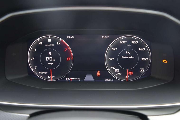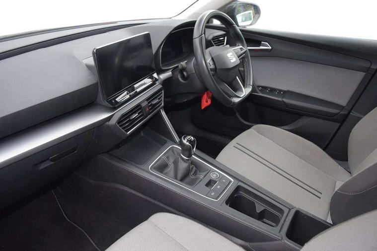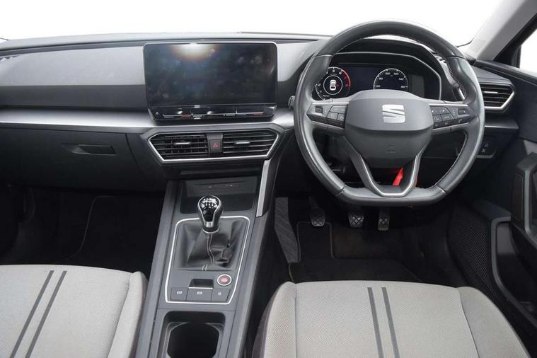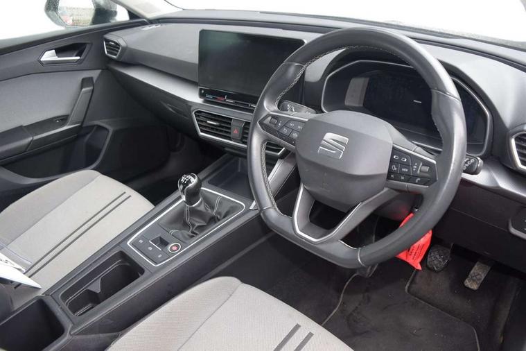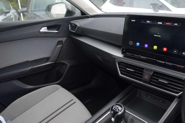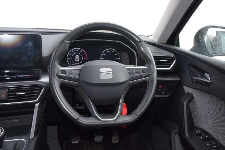Cruise control with speed limiter, Digital cockpit, Front assist with forward collision warning braking reaction to vehicles, pedestrians and cyclists, Full link smartphone integration with Mirror Link, wireless Apple CarPlay and wired Google Android Auto, Lane keeping system, Lockable tailgate, Park assist (inc front/rear parking sensors), Power assisted speed sensitive electro-mechanical steering, RPM, trip computer, outside temp gauge, instrument light brightness, low fuel warning light, lights on reminder, gearshift indicator, Service interval indicator, Start/stop system with regenerative braking, Standard suspension, XDS electronic differential lock and dynamic traction support, Auxiliary input socket, Body colour door handles, Body coloured bumpers, Body coloured exterior mirrors with integrated LED indicators, Dark tinted rear windows, Electric front/rear windows, Electrically adjustable and heated door mirrors, LED front fog lamps with cornering function, LED headlights and LED tail lights, LED rear fog lamp, Manual dimming rear view mirror, Rear wash/wipe, Separate daytime running light with automatic headlight control, 12v power point in centre console, 60/40 split rear bench seat, Air conditioning, Cloth upholstery, Driver seat lumbar adjustment, Driver/passenger manual seat height adjustment, Dust/pollen filter, Folding boot cover, Front and rear height adjustable headrests, Front and rear reading lights X 4, Front seatback storage pockets, Height/reach adjust steering wheel, Interior lighting with LED lighting in sunvisor, glovebox and rear headlining, ISOFIX points in outer rear seats with top tether anchorage points, Leather flat bottomed, perforated steering wheel and leather gearstick, Luggage tie-down hooks, Sunvisors with covered illuminated mirror, Media system plus with navigation - Leon SE, 3 point seatbelts on all rear seats, ABS, Brake control system - ESC and brake booster, Child proof door locks, Driver and front passenger airbags with front passenger airbag de-activation, front side and curtain airbags, Electronic parking brake, Extended safety system - seat belt tensioner, window closure and hazard lights, Hill hold control, Rear disc brakes, Seat belt reminder for front and rear seats, Tiredness recognition system, driver alert system, Tyre pressure monitoring system, Anti theft alarm system with interior monitoring in cab, backup horn and towing protection, KESSY Go (Keyless start), Locking wheel bolts, Chrome interior detailing, 17" Dynamic tri-spoke alloy wheels with 91W tyres, Tool kit,
