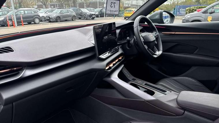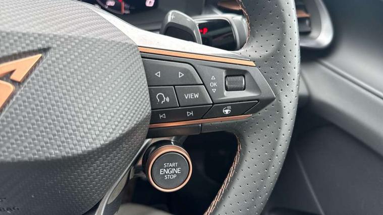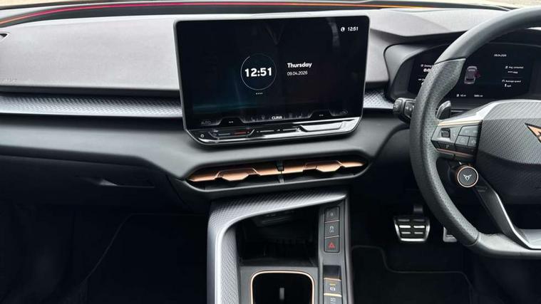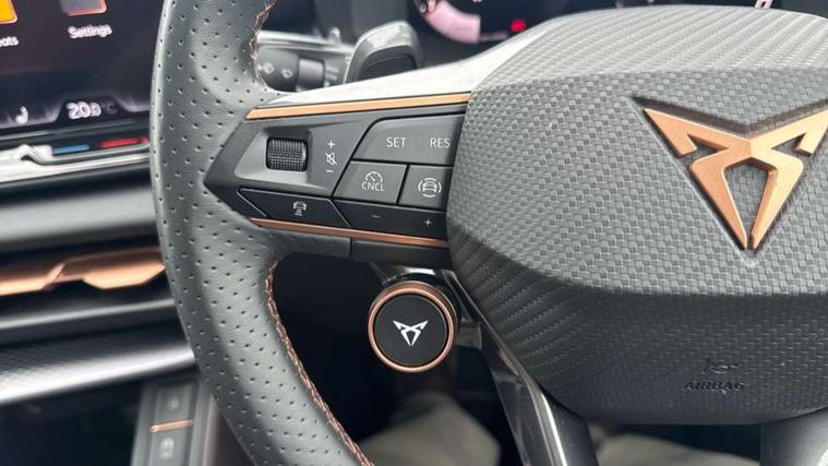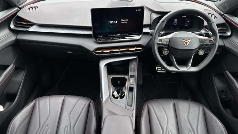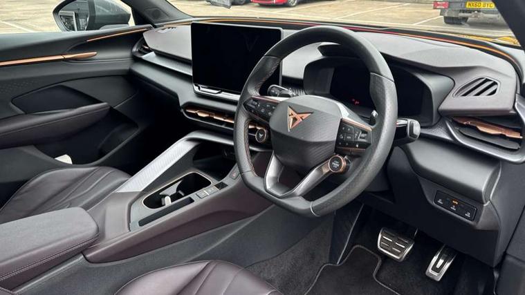 10.25" digital cockpit and configurable dashboard, Adaptive cruise control with follow-to-stop and speed limiter, Advanced driver alert system, Advanced lane assist with semi-automatic vehicle control in a medical emergency and traffic jam assist, Driving profile selection (DCC- Comfort, performance, CUPRA, Individual, Dynamic road sign display, E-call, Electric tailgate with virtual pedal, Emergency steering support with turn assist, Front and rear parking sensors, Front assist (Forward collision warning with automatic braking) with multifunction camera and front cross traffic assist, Head up Display, Intelligent park assist, Media system with Nav - 12.9" touch display, voice control, full link phone (wired/wireless), DAB and Steering wheel mounted controls, Rear traffic assist, Side and exit assist, Speed sensitive power steering, Start/stop system with regenerative braking, Top view camera (front camera, rear camera, 2 side cameras), Wireless phone charger, Adaptive chassis control with a 2-valve shock absorber, Auto dimming rear view mirror, Black roof rails, CUPRA 3D rear lights with ceremony & swiping indicator and illuminated logo, Dark tinted rear windows, Daytime running lights with automatic headlight control and Coming and Leaving home function, Door mirrors with memory function and lowing function on passenger mirror, Electric front/rear windows, Electrically adjustable, heated and folding door mirrors, Front fog lamps with cornering function, Heat reflecting windscreen, High beam assist, Rain sensing wipers, Rear fog light on one side, back up light on both sides, Rear side wing doors, Rear wash/wipe, Third brake light, Welcome lights (within exterior mirror housing), 3 seat bench in 2nd row, Black roof lining, Cupra sports pedals, Driver seat memory function, Electrically adjustable front seats including lumbar support, Four x USB Type C ports (2 in front and 2 in rear), Front and rear head restraints, Front and rear reading lights X 4, Front centre armrest, Heated front seats, Heated leather wrapped multi function sports steering wheel with tiptronic, Illuminated interior front door sills, Isofix, Leather upholstery, Operating voltage 12V, Single front passenger seat, Smart wraparound interior lighting, Sunvisors with illuminated mirror, Three zone climate control with control panel in rear, Unsplit rear seat bench, split folding backrest, with centre armrest, Variable luggage/load compartment floor, Pure performance pack - Terramar, 3 point seatbelts in front with pretensioner and electric height adjustment, 3 point seatbelts on all rear seats, Brake control system - ESC and brake booster, Child proof door locks, Driver and front passenger airbags, Electronic parking brake, Front and rear disc brakes, Front interaction airbag, Front passenger airbag deactivation switch, Front side airbags with curtain airbags, Pre-crash front and rear seat belt tensioner, window closure and hazard lights, Tyre pressure monitoring system, Visual and acoustic seat belt reminder, electric contact in front and rear, Anti theft alarm, Keyless locking and starting system with keyless access, Locking wheel bolts, Black decorative trims, Chrome interior detailing, Performance tyres in polmer coating, Tool kit,