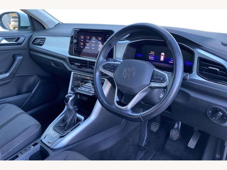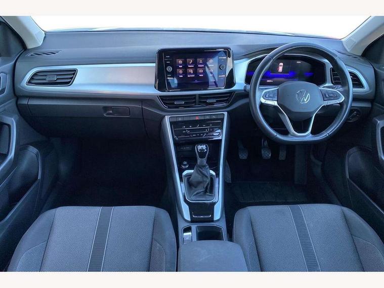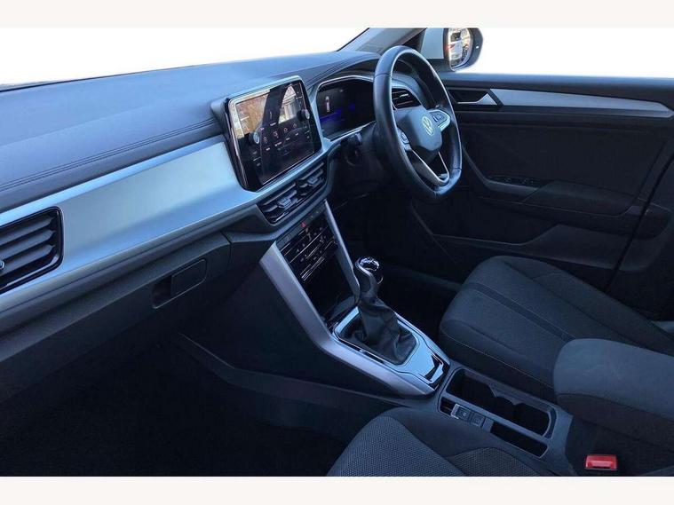 Bluetooth mobile phone interface, Driver alert system with fatigue detection, Driver tips and journey analysis, Emergency call service, Lane keeping system Lane Assist, Modified key software - reduce switch off time for key status change to Long no motion, Online services, Park assist including front and rear parking sensors, Power assisted speed sensitive steering, Service interval indicator, Tailgate/trunk lid release from outside, Think blue trainer driver tips and journey analysis, Warning sound and light for front seatbelts unfastened, Wireless app connect, Battery regeneration during braking, Front shock absorption, Rear shock absorption chassis with increased ride height, Start/stop function with battery regeneration, DAB Digital radio, Diversity antenna for FM reception, Front and rear 6 speakers, Music playback - MP3, WMA and AAC files, Premium USB cable in choice of either Apple or Android smartphone compatibility, SD card slot, Simultaneous pairing of 2 compatible mobile devices, Title and cover art display, We Connect and We Connect Plus functionality, 3rd brake light, Auto dimming interior rear view mirror, Automatic hazard lights activation under emergency braking, Automatic headlight control with LED separate daytime running lights with coming/leaving home function, Black roof rails, Body coloured bumpers and radiator grille with chrome trim and front fog lamps with chrome bezel, Body coloured exterior mirror housings and door handles, Extended roof spoiler, Exterior mirrors aspherical on driver side, convex on front passenger side, External USB type C socket and charging sockets, Front windscreen wiper with intermittent wipe and 4 position delay, Heated rear window, LED Headlights, LED rear combination lamps, LED rear number plate lights, LED tail lamp rear comination lamps, Power windows with comfort operation and circuit breaker, Rain sensor, Rear exhaust tailpipe, Rear fog light on one side and reversing lights on both sides, Rear side wing doors, Rear wash/wipe with intermittent wipe setting, Remote electrically foldable door mirrors, puddle lights and reverse activated passenger's door mirror, 12V power socket in centre console, 3 rear head restraints, 3 seat bench in 2nd row, 4 load lashing points in luggage compartment, Air care climatronic air conditoning system with active combination filter and 2-zone temperature control, Ambient lighting with mirror logo projection, Cloth upholstery, Door and side trim panel in cloth, Drawer under drivers seat, Driver/front passenger seat height adjustment, Front centre armrest, Front comfort sports seats, Front cupholders x 2, Front reading light, Instrument lighting, white adjustable panel illumination, Interior light delay, Isofix child seat preparation, Leather gearshift handle, Load-through provision with cup holder when folded down ('Unsplit rear seat bench, split folding backrest, with centre armrest), Luggage compartment lighting, Lumbar support for driver's and front passengers seat, Non-folding front passenger seat backrest, Single front passenger seat, Storage compartment in left and right luggage area, Storage compartment in rear doors, Storage compartments in driver and front passenger doors, Sunvisors with illuminated vanity mirrors, Variable boot floor, height adjustable and removable, Driver assistance pack without proactive passenger protection - T-Roc, 3 point height adj front seatbelts + pretensioners, 3 point seatbelts in outer rear with ECE label, ABS, Child locks on rear doors, Driver and front passenger airbag with front passenger airbag deactivation, Driver and front passenger safety-optimised head restraints, Drivers seatbelt reminder, Electronic parking brake, Electronic Stability Control (ESC) inc EDL (Electronic Differential Lock) and ASR (Traction Control), Front and rear passengers curtain airbag system including front side airbags, Front assist with city emergency braking and pedestrian monitoring, Front disc brakes, Front seat side impact airbags, Hill start assist, Predictive pedestrian protection, Rear disc brakes, Single tone horn, Tyre pressure loss indicator, Volkswagen roadside assistance, Alarm with interior protection, Anti-theft alarm system with interior monitoring, backup horn, and towing protection, Remote central locking with SAFELOCK, radio remote control with 2 remote control folding keys, Pewter matt decorative inserts for intrument panel, centre console and door panels at the front, Trims for alloy wheels,