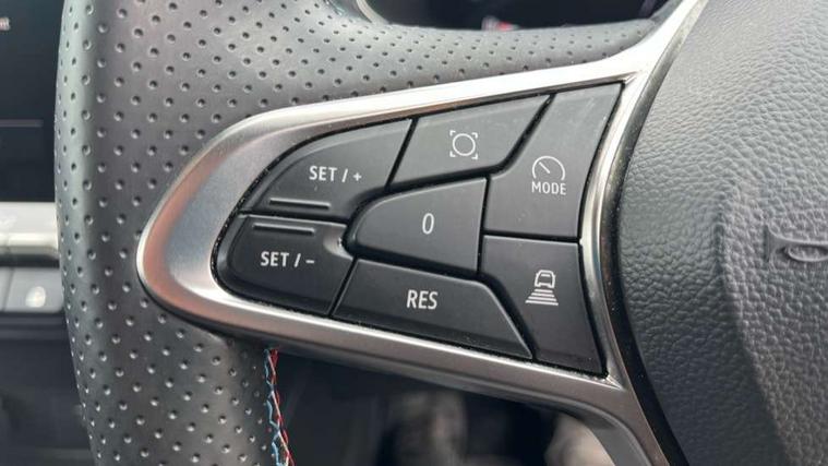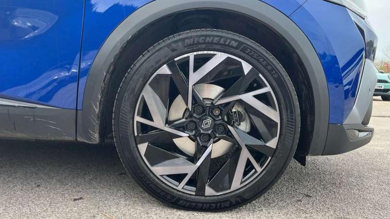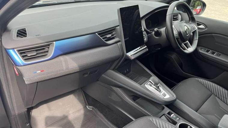 10.25" digital driver display, 10.4" OpenR link touchscreen with with built in Google Automotive Services and navigation, Adaptive cruise control with speed limiter, Driver attention alert system, Driver drowsiness alert system, Eco mode, Emergency lane keep assist including solid line, oncoming traffic and road edge detection, Front and rear parking distance sensors, Gear change indicator, Lane departure warning system, Multisense with 3 driving modes + 8 ambient lighting colours, Rear view camera, Renault automatic emergency assist, Side parking sensors, Traffic sign recognition with over speed prevention, Trip computer, Variable assistance power steering, Wifi smartphone integration compatible with Apple CarPlay and Android Auto, Wireless phone charger, 2 front USB-C ports, 2 rear USB-C ports, DAB radio with Bluetooth, Auto dimming rear view mirror with light and rain sensor - frameless, Automatic front wipers with rain sensors, Automatic headlights, Automatic high/low beam, Body colour door handles, Body coloured bumpers, Body coloured door mirrors, Chrome around front air deflectors, on front wing deco element and window lining, Dark tinted glass in rear windows and tailgate, Day time running light, Diamond black contrasting roof, Drivers one touch window with anti-pinch feature, Electrically folding door mirrors, Front and rear electric windows, Full LED front and rear lights, Gloss black window frame, Heated door mirrors, Heated rear windscreen, LED high level brake lights, LED turn indicators on door mirrors, Longitudinal roof bars, Rear fog lights, Rear side wing doors, Rear wiper, Shark fin antenna, 12V Accessory socket, 2 front roof LED lights and central rear roof light with 3 reading LED lights, 3 bench rear seats in 2nd row, Aluminium sports pedals, Automatic climate control with one touch demist function and air quality regulator, Driver and front passenger seat with electric height adjustment, esprit Alpine enveloping synthetic leather/cloth upholstery, Esprit alpine interior styling, Flying console for auto transmission, Front head restraints, Glovebox, Heated front seats, Heated steering wheel, Heating system with pollen filter, Height/reach adjust steering wheel, ISOFIX child seat fixing points on rear outermost seats, Middle console with armrest and storage, Modular boot floor, Rear air vents, Rear head restraints, Rear seats - 1/3:2/3 foldable sliding bench, Single front passenger seat, Sunvisor with mirror and light, Synthetic leather steering wheel, 3 rear seatbelts, ABS+EBA, AEBS - active emergency braking system, Approaching vehicle sound for pedestrians, Distance warning alert, Driver and front passenger and 3 rear passengers seatbelt reminder, Driver and front passenger, side, head and curtain airbags, Driver height adjustable seat belt, Electric parking brake with auto hold function, Electronic stability control, Front dash warning indicator in case of heavy braking, Front driver and passenger side airbag deactivation, Hill start assist, Manual passenger airbag deactivation function, Rear door and window child locking function for rear door, Tyre pressure warning light, Anti drill door locks and locking fuel cap, Central door locking, Deadlocking system, Hands free keycard with push button and start/stop function, RAID (Renault Anti-Intruder Device) automatic door locking, Black soft touch dashboard, 19" esprit Alpine Elixir alloy wheels,