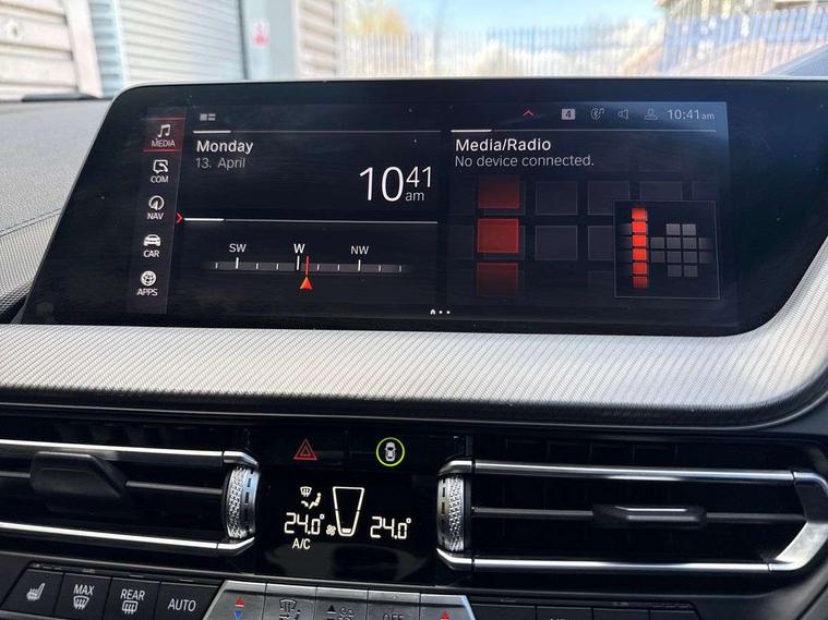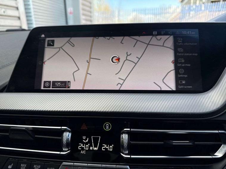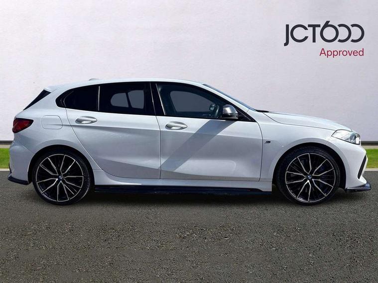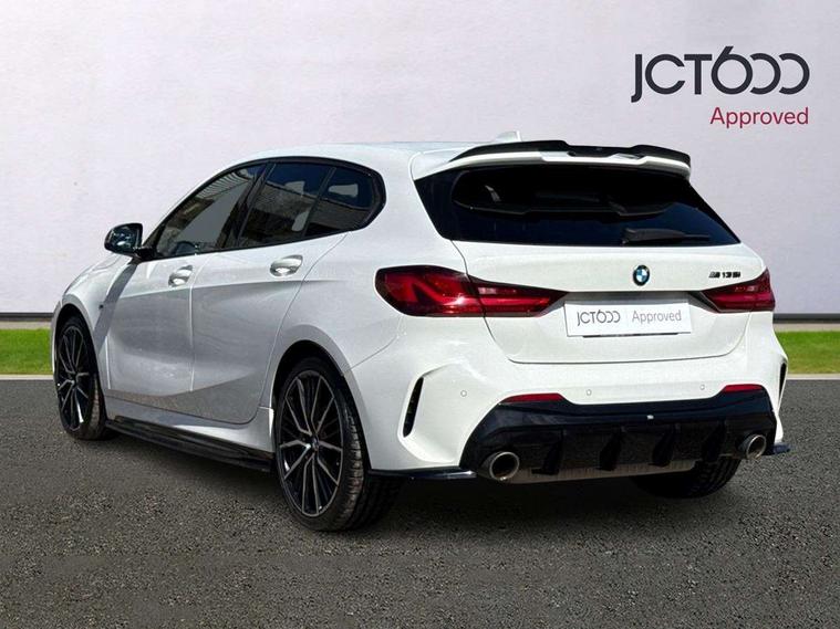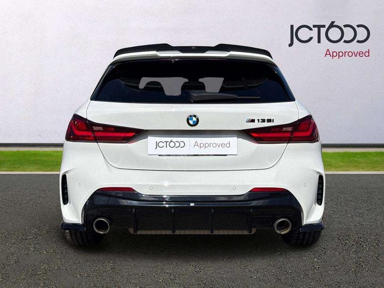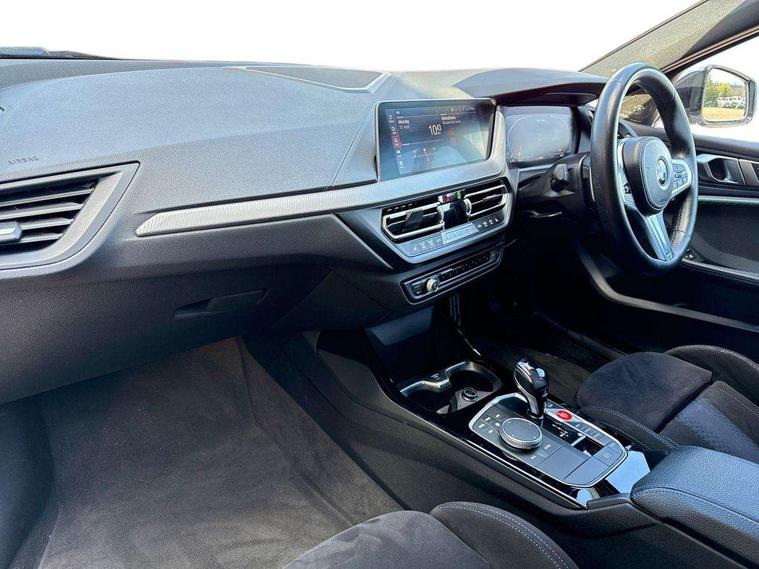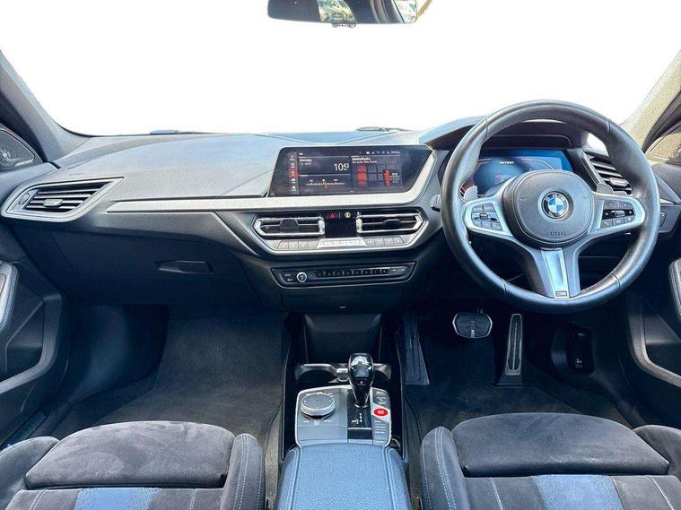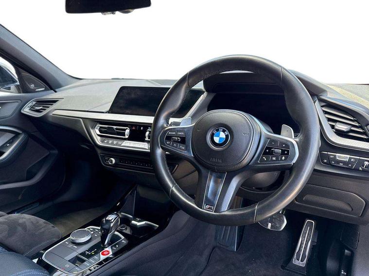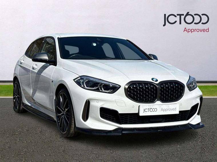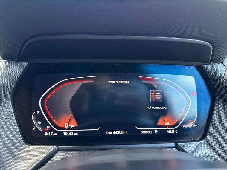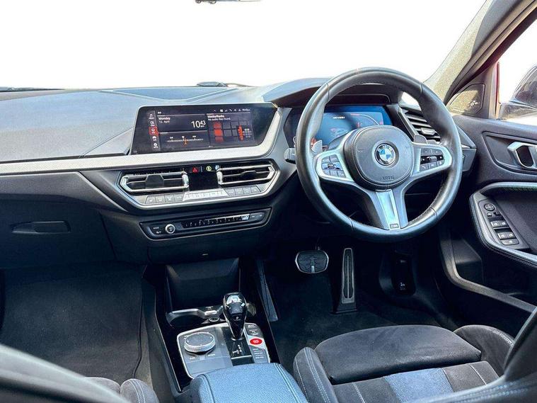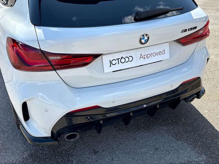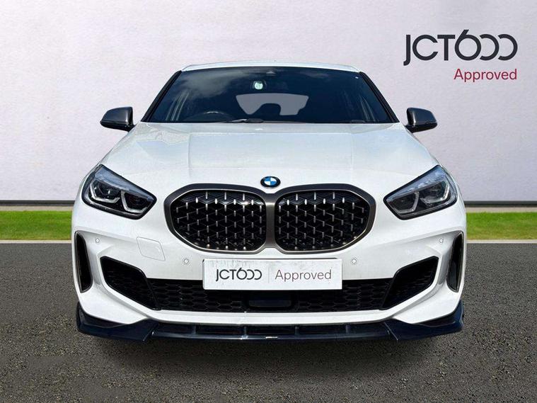 Active guard plus, Attentiveness assist, BMW Live Cockpit Professional sat nav system including 10.25" high resolution display and Intelligent Voice Assistant, BMW Online services, BMW Teleservices, Check Control warning system for monitoring of lights and door/luggage compartment open warning, Eco pro mode, Gearshift time display in manual mode, Integrated owners handbook, M Sports steering, Oil sensor for level and grade, On board computer, Optimum shift indicator, Personal Profile, Pull away assistant, Speed limiter, Sporty fast gear shifting in sport mode, Aluminium lightweight construction, Anti roll bar front and rear, Balancer shaft, Double VANOS, Drive Performance Control, Eight speed sport automatic transmission with electronic selector lever, Electronic differential lock, Engine cover with M performance designation, High precision injection, Larger fuel tank capacity (50 litres), Launch control, Petrol Particulate Filter, VALVETRONIC engine management, Bluetooth audio streaming, DAB Digital radio, Auto dimming rear view mirror, Automatic headlight beam throw control, Body colour door handles, Cerium grey exterior mirror caps, Direction indicator side lights in exterior mirrors, Electric folding and anti dazzle exterior mirrors, Fading support, Follow me home headlights, Front and rear electric windows with open and close fingertip control, anti trap facility and comfort closing, Front door sill finishers with M135i designation, Green tinted heat protection glazing, Heated, electrically adjustable exterior mirror aspheric on driver side, convex on passenger side, High gloss shadow line exterior trim, High gloss shadowline window frame, Recess cover mirror frames and B/C pillar embelisher trim, High level third brake light, Kidney grille frame in Cerium Grey with Mesh design, LED daytime running lights, LED eyebrow turn indicators, Lightweight engineering, M logo designation side in cerium grey, M performance exhaust system, M rear spoiler, Matt black air guide grilles, Model designation on right side of tailgate, Nearside reverse light in rear light cluster, Rain sensor including auto headlights activation, Rear fog lights, Rear window wiper, Round exhaust system with twin cerium grey tailpipes in left and right split, Shark fin antenna, Visible VIN plate, Welcome lighting, Windscreen wipers with integrated washing jets, 12V power socket in centre console, 2 cupholders in front centre console, 3 rear seat head restraints, 3 spoke M sports design leather steering wheel finished in nappa leather with specific M badge, Anthracite headlining, Anthracite Velour floor mats, Child seat ISOFIX attachment for two outer rear seats and front passenger seat with anchorage points, Conditioned based service, Driver and front passenger seat heating, Driver side folding compartment in instrument panel, Folding rear clothes hook, Folding rear seats, Four grab handles integrated in roof lining, Front and rear door pockets, Front and rear side armrest integrated into door trim, Front armrest foldable with integrated storage compartment, Front M seats, Glove compartment, Height adjustable front head restraints, Manual adjust steering wheel, Multi-function controls for steering wheel, Rear seat backrest with manual 60:40 split folding with 3 top tether clips integrated on rear of seat panels, Storage compartment in centre console, Sun visors with vanity mirrors and insert tab, Two zone automatic air conditioning, Connected pack professional - 1 Series, Extended Lighting pack - 1 Series M135i, Extended storage pack - 1 Series, Interior lights pack - 1 Series, Luggage compartment pack - 1 Series, M Sport exterior styling aerodynamics pack - 1 Series 135i, 2 tone horn, 3 point seatbelts on all seats, front pyrotechnic belt tensioners, stopper and belt force limiters, rear coded belt buckles, Airbags - Front driver and passenger, front and rear head, front side, curtain head protection, Anti lock braking system (ABS) with brake assist, BMW emergency call, Brake drying, Braking readiness, Crash sensor activating central locking release, hazard warning lights, fuel cut off, interior lighting + activation of safety battery terminal clamp, Driver and front passenger seat belt security check, Dynamic stability control + (DSC+), Dynamic Traction Control - DTC, Electrically operated hand brake, Front and rear disc brakes, Front passenger manual airbag deactivation, M Sport braking system, M sport seatbelt, Rear child proof door locks, Seatbelt warning, Side impact protection, Torsen mechanical limited slip differential, Tyre pressure monitoring system, Warning triangle and first aid kit, Automatic drive away locking facility, Central locking switch for all doors, fuel filler cap and luggage compartment, Deadlocking function system to all doors, Locking wheel bolts, Remote control with integrated key with High-gloss Black inlay and M designation and 1 button for open/ close lock, window, open luggage compartment, Start/stop button with comfort go keyless engine start and auto start stop deactivation button, Thatcham Cat.1 alarm and immobiliser, Contrast stitching on instrument panel, 18" Burnished M double spoke Bi-colour alloy wheels finished in Cerium grey matt - style 556M, BMW mobility system, Reduced rolling resistance tyres,