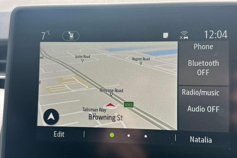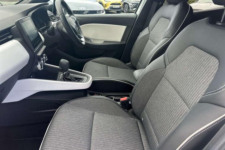 7" driver information display cluster, Apple car play/Android Auto, Cruise control + speed limiter, E-call, Easy link navigation with 7" touchscreen+4x20W amplifier+FM DAB double tuner, sound auditorium, 2xUSB/1xjack/bluetooth, smartphone integration plus, Eco mode driving function, Emergency call system, Front parking sensors, Gear change indicator, Lane departure warning system, Lane keep assist, Over speed prevention warning, Rear parking sensors, Rear view camera, Traffic sign recognition, Trip computer, Variable assistance electric PAS, Wireless phone charger, E-TECH battery, Auto dimming rear view mirror, Auto high beam assist, Auto light control and rain sensing wiper, Automatic headlights, Black wing mirrors, Body colour door handles, Body colour rear roof spoiler, Body coloured bumpers, Chrome front grille, Chrome insert on lower side doors with Clio embossing, Chrome side window surrounds, Drivers one touch window with anti-pinch feature, Electric front windows, Electric rear windows, Exterior rear hidden door handles, Extra tinted glass on rear windows + tailgate, Front and rear LED roof light x 2, Full LED front and rear headlamps integrating daytime running lights at the front and rear, Heated rear windscreen, LED front fog lights, LED reverse light, Manual folding wing mirror mechanism, Manually adjustable door mirrors, Rear fog lights, Rear side wing doors, Rear wiper, Shark fin antenna, Third brake light, Variable speed on front windscreen wipers, 12V Accessory socket, 3 rear height adjustable headrests, 3 seat bench in 2nd row, 3D Fabric velvet upholstery, 6.2L front glovebox, 60/40 split and fixed base rear seat bench, Air recirculation control, Auto climate control, Black headlining, Black hooks on boot floor x 4, Centre console with storage and armrest, Front cupholders, Front door storage bin, Grey dashboard and door panel, Height adjustable front headrests, Height/reach adjust steering wheel, Isofix system on outer rear seats, Luggage nets in boot, Matted grey interior roof lining and a pillar, Mechanical height adjustable front seats, Multi function steering wheel, Multisense including ambient lighting and selectable drive modes, Pollen filter, Single front passenger seat, Sun visor without light, Synthetic leather steering wheel, System for Restraint and Protection SRP-front seats, Vision grey interior detail includes light grey on doors, lower part of dash and gear stick, 3 point seatbelts on all rear seats, ABS, AEBS - active emergency braking system, BAS (Brake Assist System), Curtain airbags, Distance warning alert, Driver and passenger front and side airbag deactivation, Driver/Front Passenger airbags, Electronic parking brake with auto hold, ESC - Electronic Stability Control + traction control, Front side airbags(head+thorax), Height adjustable driver's seatbelt, Seatbelt warning, Tyre pressure warning, Deadlocking system, Hands free key card with push button, start and stop function, Locking fuel filler cap, RAID (Renault Anti-Intruder Device) with automatic door locking, Rear side wing door and window child locking function (front driver door control panel), Remote central locking with thatcham approved immobiliser, Grey dashboard trim, Upper dashboard soft covered with positive thermoforming type 2, 17" Viva stella diamond cut alloy with grey/black inserts,