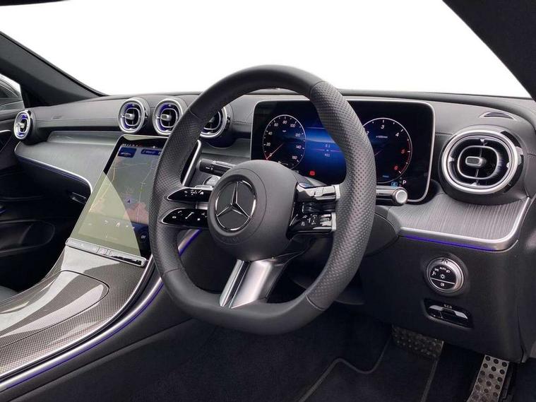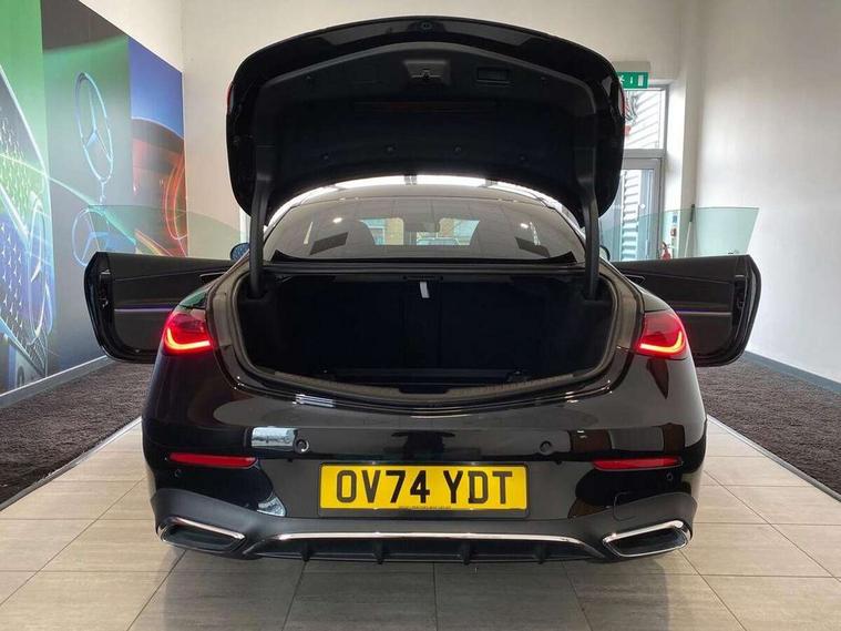 5G Communications module, Active lane keeping assist, Blind spot assist, Bluetooth connection, Car wash mode, DYNAMIC SELECT with a choice of driving modes (ECO, Comfort, Sport, Sport+ and Individual), eCall emergency call system, Evasive manoeuvre support, Fingerprint scanner, Fluorescent jacket for driver, Fully digital 12.3" driver display screen, Hard-disk navigation, Hey Mercedes Voice activation, MBUX navigation premium, PAS, Passive person presence reminder, Portrait format 11.9" touchscreen central display with driver orientation, Smartphone integration with Apple CarPlay and Android auto, Traffic sign assist, Wireless charging system for mobile devices in the front, 66 litre fuel tank, 9G TRONIC plus automatic transmission, Agility control sports suspension lowered by 15 mm, Integrated starter generator Gen 2, Sporty engine sound system, Digital radio, MBUX extended functions, MBUX multimedia system, AMG bodystyling, AMG Line exterior, Auto headlights, Electric windows, Heat insulating dark tinted glass, LED 3rd brake light, LED Day time running light, LED High performance headlamps with adaptive highbeam assist, Rain sensor windscreen wipers, Rear boot, Variable front intermittent wipers, 2 individual rear seats, 2 rear head restraints, 4 way lumbar support, Ambient lighting premium, Ambient lighting with projection of brand logo, AMG floor mats, AMG line interior, Belt feeder, Black fabric roof liner, Folding rear seat backrests, Front headrests, Heated front seats, Illuminated door sill panels with Mercedes Benz lettering, Instrument panel and beltlines in ARTICO manmade leather in nappa look, Leather upholstery, Multifunction sports steering wheel in nappa leather, Power height and reach adjustable steering column, Single front passenger seat, THERMATIC automatic climate control, Interior light pack - CLE, Memory seat pack - CLE, Mirror pack - CLE, Parking package with reversing camera - CLE, Stowage space package - CLE, USB package plus - CLE, Active braking assist, Anti-lock braking system (ABS), Braking system with larger brake discs on the front axle, Centre airbag, Dual front airbags, Electric parking brake, Electronic Stability Programme (ESP), Front and rear seatbelt reminder, Hill start assist, Pedestrian protection, Pre Safe system, Tyre pressure monitoring system, Anti theft alarm system, Guard 360 degree vehicle protection plus, Increased anti-theft protection, Interior monitoring system, Keyless Go, Keyless Go starting function, Anthracite linestructure lime wood trim with mixed fabric look metal finish centre console, 18" AMG 5 twin spoke light alloy wheels painted in tantalite grey with high sheen finish, Tirefit,