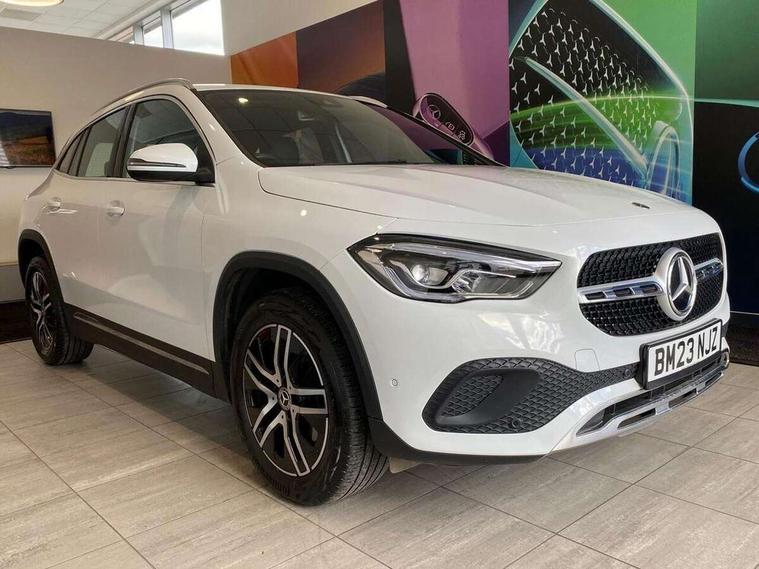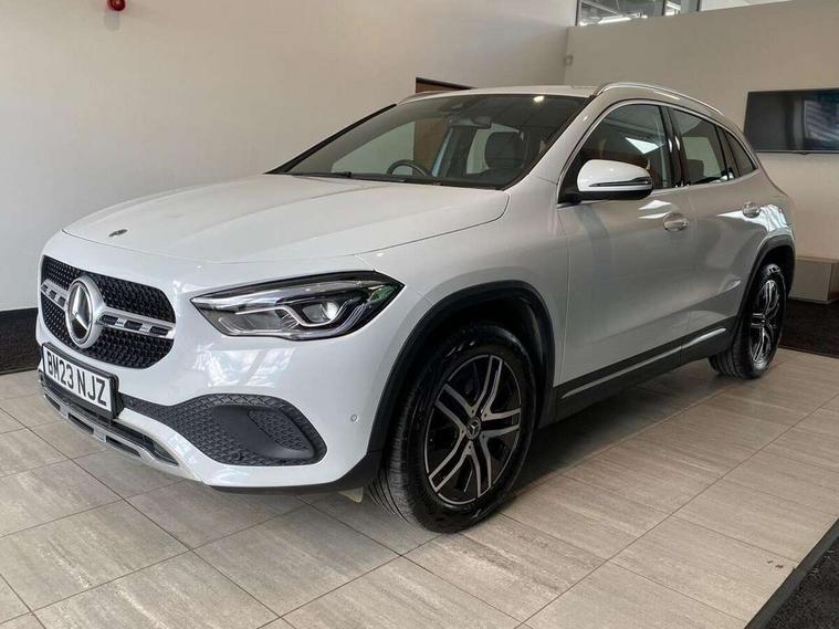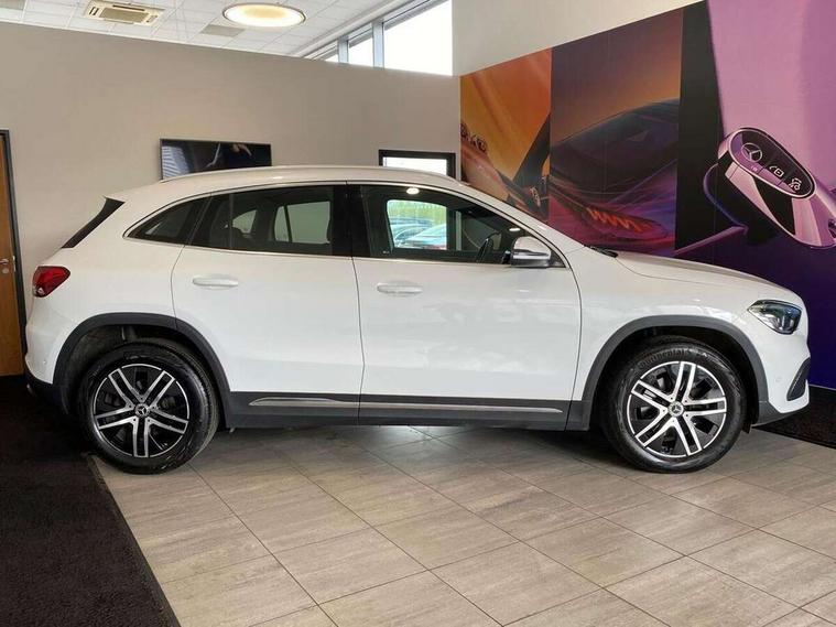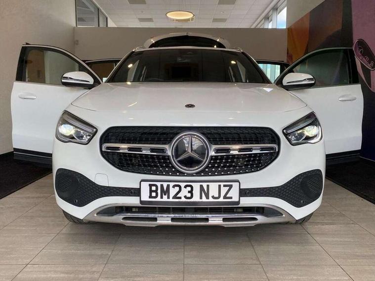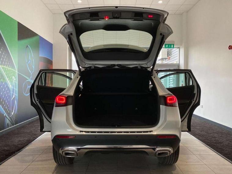 10.25 inch touchscreen central media display, 7 inch digital instrument cluster display, Active lane keeping assist, Attention assist, Cruise control + speed limiter, DYNAMIC SELECT with a choice of driving modes (ECO, Comfort, Sport and Individual), ECO start/stop function, Fluid level warning indicator for fuel, oil, coolant and washer fluid, Hard-disk navigation, Hey Mercedes Voice activation, Lamp failure indicator, Mercedes me connect including emergency call system, accident recovery, breakdown and maintenance management, Mercedes me remote services, Multi function trip computer, Outside temperature gauge, Owners manual and service booklet in English, Pre-installation of private car share, Radio aerial integrated into front and rear windshields, Service indicator (ASSYST), Smartphone integration with Apple CarPlay and Android auto, Speed limit assist, Speed sensitive power steering, Status display for rear seat belts in instrument cluster, Comfort suspension, Rear axle multi-link, 2 USB ports (type C) in rear stowage compartment and one in front of center console, Bluetooth connectivity including audio streaming, DAB Digital radio, MBUX multimedia system, Media interface, Mercedes-Benz sound system - 100W, Adaptive brake lights, Aerial for GPS, Aluminium roof rails, Automatic headlamp activation, Beltline strips and weather strip in chrome, Black grained claddings with chrome parts, Body colour bumpers, Body colour door handles, Body colour door mirrors, Car wash function, Dark chrome front and rear apron trim, Electric front windows, Electric rear windows, Electrically adjustable and heated door mirrors with integrated LED indicators, Exhaust system with dual flow exhaust pipes in chrome (non-functional), Front bumper with underride guard in high gloss chrome, Front door sills with Mercedes-Benz lettering, Heated glass rear windscreen + timer control, Heated windscreen wash system, Interior mirror with black reading lamps and frameless, LED high performance headlamps with integrated LED daytime running lights, LED tail lights in two piece design, LED third brake light, Rain sensor windscreen wipers, Rear fog lights, Rear side wing doors, Rear wiper, Roof spoiler, Simulated body styling underguard in matt chrome, Single lamella radiator grille painted in silver matt with chrome inlay and black dots, 12V power socket in centre console, 3 seat bench in 2nd row, 3 spoke leather multifunction sports steering wheel with chrome elements, 40:20:40 split folding rear seat backrests, Adjustable head restraints, Air conditioning - Two zone thermotronic luxury automatic climate control with display, Artico man-made leather/Bertrix fabric upholstery, Auto Mercedes-Benz child seat recognition sensor, Black roof lining, Comfort seats, Courtesy light in boot, Floor mats in velour, Front centre armrest with stowage, Gearshift paddles, Heated front seats, Illuminated glovebox, Leather trimmed gearknob, Luggage net on driver/front passenger seat backrest, Manually height and reach adjustable steering column, Multi-gesture touchpad control on center console, Single front passenger seat, Stowage compartment in centre console, Stowage compartment with retractable cover, Sunvisors with illuminated vanity mirrors, Twin front cup holders, Two outer rear seat isofix and top tether child seat fixing points, Comfort seat pack - GLA Class, Interior lighting with light and sight pack - GLA, Load compartment pack - GLA, Mirror pack - GLA Class, Parking pack - GLA, 3 rear 3 point seatbelts, ABS with Brake Assist, Active bonnet pedestrain safety measure which detects an impact and raises bonnet by 65mm, Active brake assist includes forward collision warning system with autonomous braking, Adaptive brake assist with hold function and hill start assist, Bonnet with power domes, Brake pad wear warning indicator, Childproof locks manually operated for rear doors and electrically operated for rear power windows, Crash responsive emergency lighting, Driver and passenger head and side airbags, Drivers knee airbag, Dual stage driver/passenger airbags, Electronic parking brake, ESP curve dynamic assist, ESP with ASR, Front and rear seatbelt reminder, Front passenger seat occupancy sensor, Tyre pressure monitoring system, Warning triangle and first aid kit, Window airbags, Alarm system with immobiliser and interior protection -Thatcham category 1, Keyless Go starting function, Remote central locking and crash sensor with emergency opening function, Urban guard vehicle protection, Vehicle key with decorative surround in chrome, Chrome air vent surrounds, Spiral look trim, 18" 5 twin spoke light alloy wheels aerodynamically optimised painted in black with a high sheen finish, Summer tyres, Tirefit tyre sealant kit,