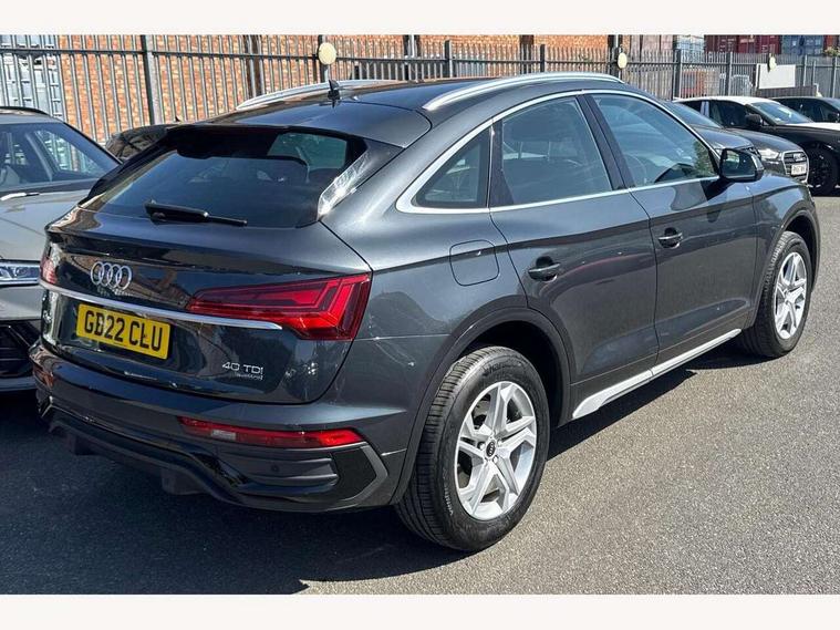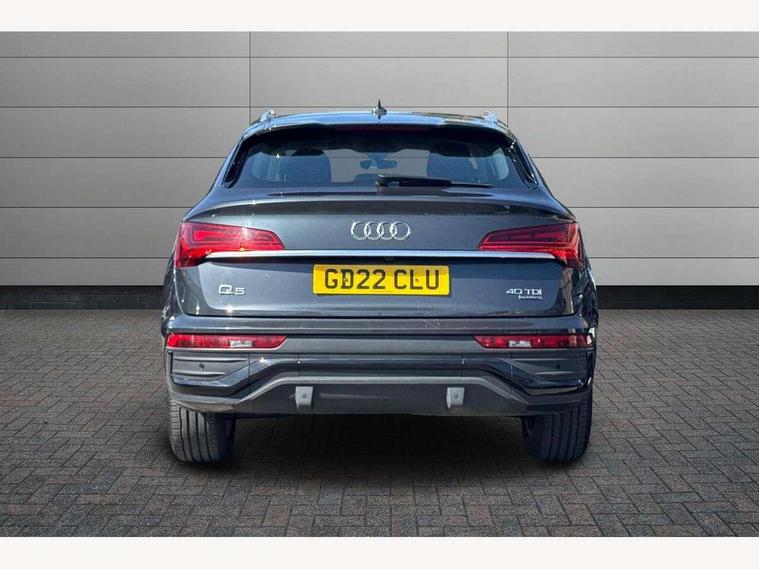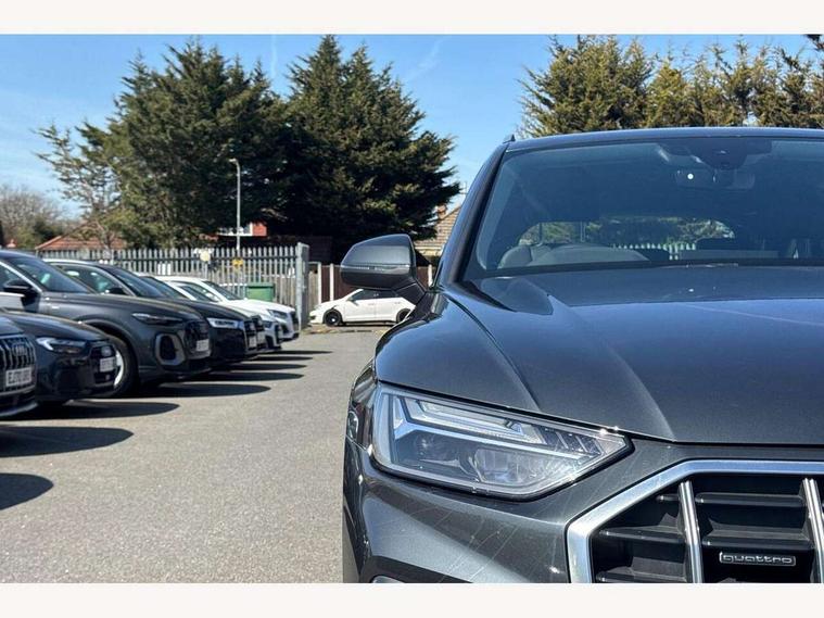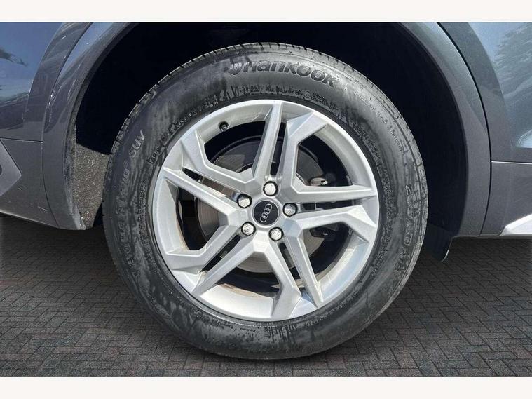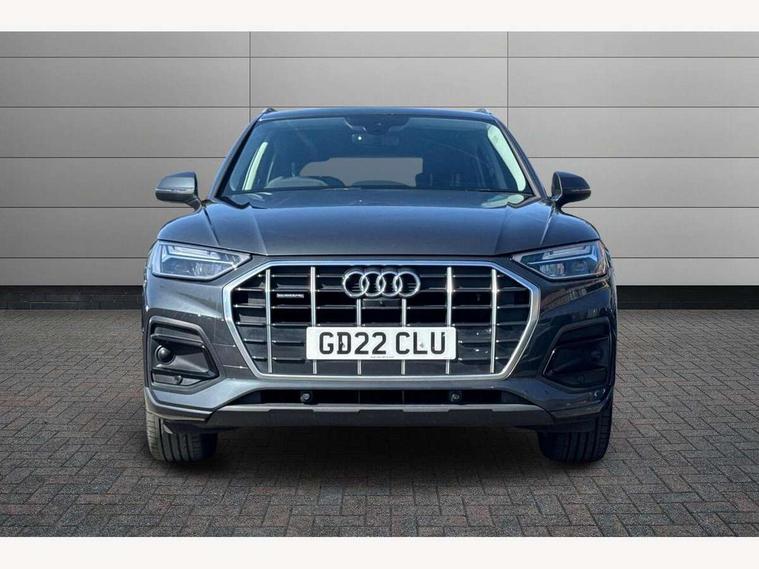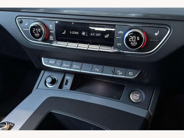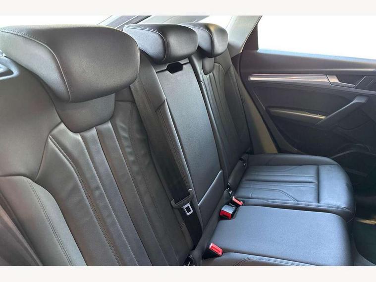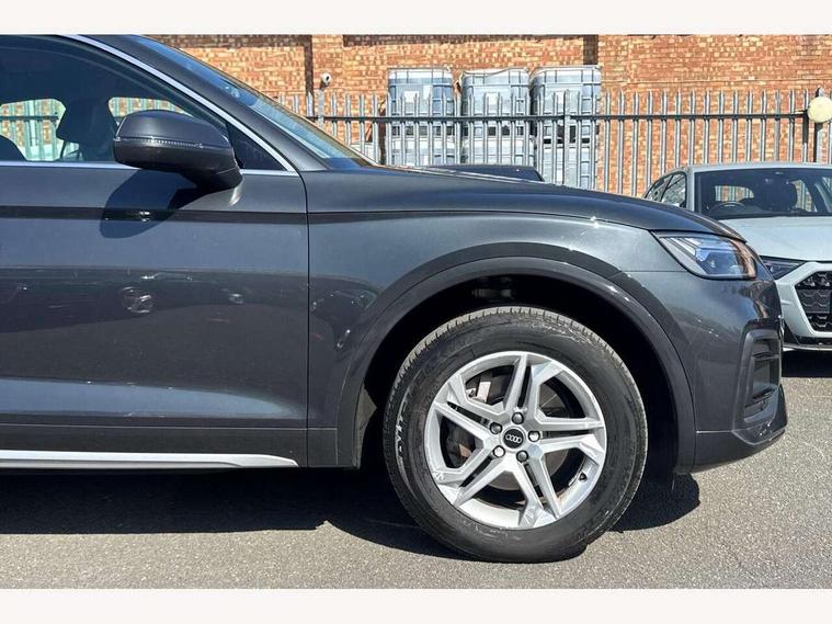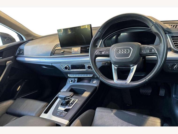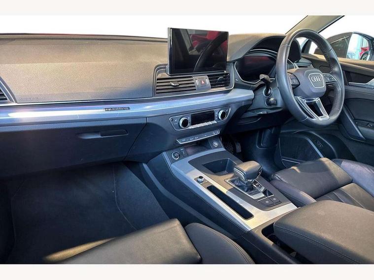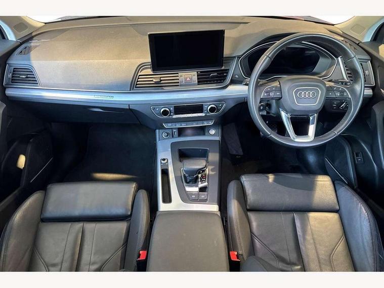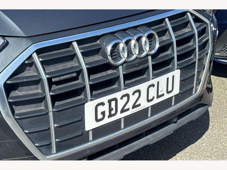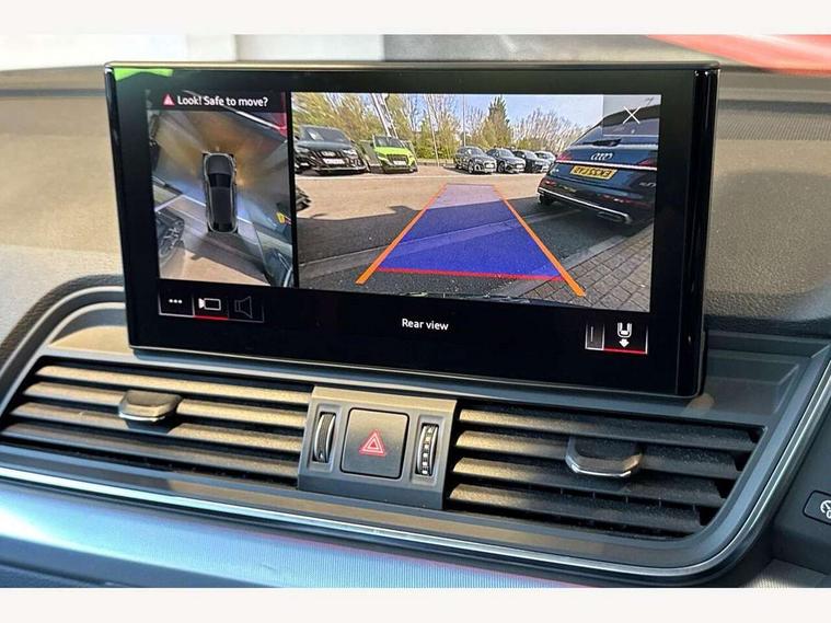 Audi connect safety and service (e-call), Audi connect with Amazon Alexa Integration, Audi drive select, Audi virtual cockpit plus with 12.3" screen and three different layout designs, Audi wireless smartphone interface, Automatic start-stop system with coasting functionality and efficiency programme, Bluetooth interface, Cruise control + speed limiter, Electro - mechanical power assisted steering, MMI navigation plus with 10.1" touch screen, Power tailgate, Reversing camera, Service interval indicator, Voice control system with Audi hotword activation "Hey Audi", Diesel particulate filter, Dynamic suspension, Quattro on demand, DAB Digital radio, Acoustic windscreen, Air inlets in matt titanium black with blades in matt aluminium silver, Aluminium roof rails, Auto dimming door mirrors, Auto dimming rear view mirror, Automatic headlights and windscreen wipers, Body colour door mirrors, Chrome plated exhaust trims, Daytime running lights, Door sills in Selenite silver, Electric adjustable/heated/folding door mirrors, Front and rear electric windows, High level LED brake light, LED headlights and LED tail lights, Lower bumpers painted in contrast Manhattan grey, Matt selenite silver underbody protection, Matt twilight grey radiator grille with chrome vertical struts, Rear chrome trim strip below lights, Rear diffuser strip in selenite silver, Rear side wing doors, Rear spoiler, Rear wiper, Roof bars, 2 x USB charging port with aux input socket, 3 rear headrests, 3 spoke multifunction leather steering wheel with shift paddles, 40:20:40 split folding 3 rear bench seat in 2nd row with rear centre armrest, Comfort front centre armrest, Deluxe 3 zone electronic climate control, Door sills trims with aluminium inlays, Front head restraints, Front/rear floor mats, Heated front seats, Height/reach adjustable steering column, ISOFIX child seat mounting and top tether, Manual seat adjustment with 4-way electric lumbar support, Removable luggage compartment floor, Silver cloth headlining, Single front passenger seat, Sunvisors with vanity mirrors, Trunk roller cover, Twin leather upholstery + front sports seats, High gloss pack - Q5, LED interior light pack - Q5, 3 point seatbelts on all seats, 6 airbags - Driver, front passenger, curtain and side airbags, Electrically operated child locks on rear doors, Electromechanical parking brake, Electronic stabilisation control including ABS, ASR and EDL, Front passenger airbag deactivation, Hill descent control, Hill hold assist, Multi collision brake assist, Pop-up bonnet for pedestrian protection, Pre sense city, Seat belt force limiter, Seatbelt monitoring, Tyre pressure warning, Warning triangle and first aid kit, Anti theft alarm, Anti-theft wheel bolts, Keyless Go access/ignition system, Remote central locking, Aluminium rhombus inlay,
