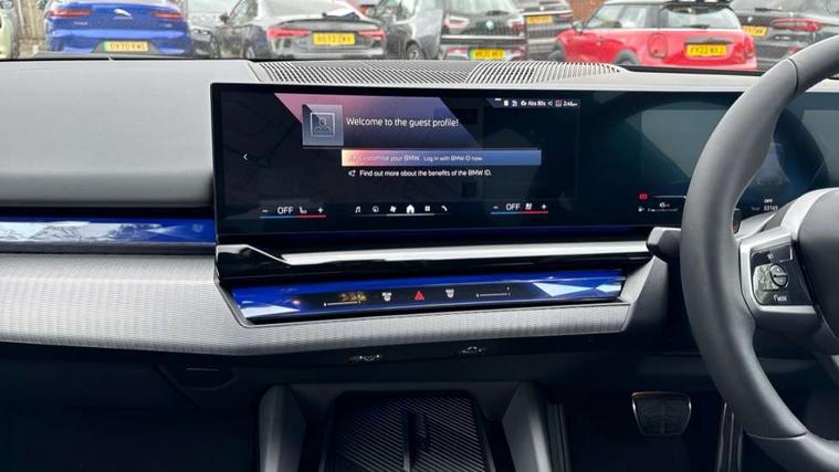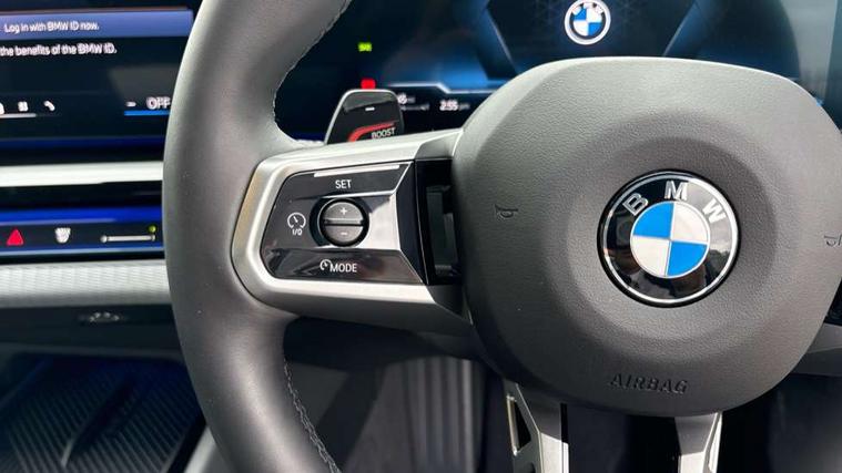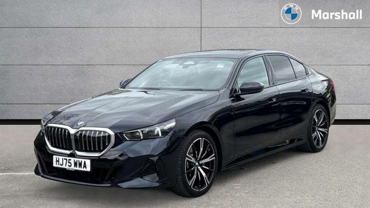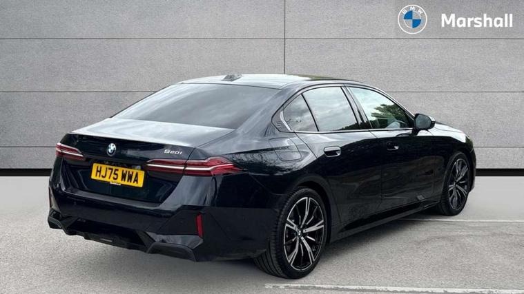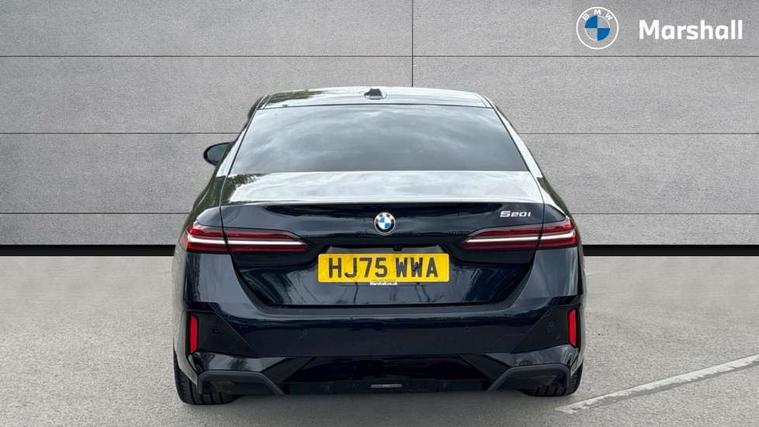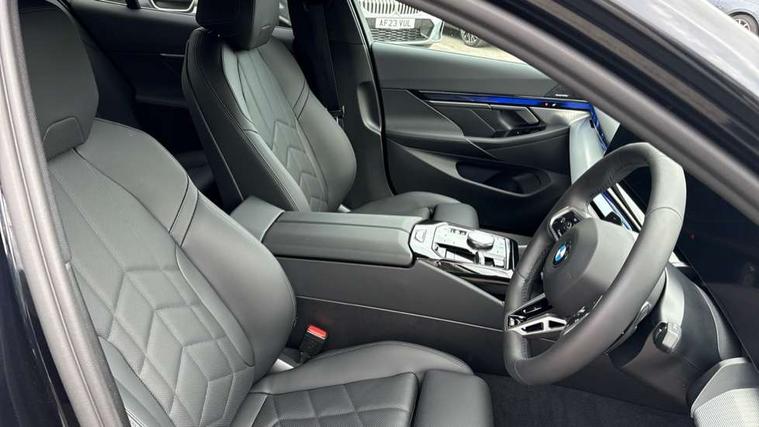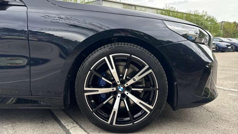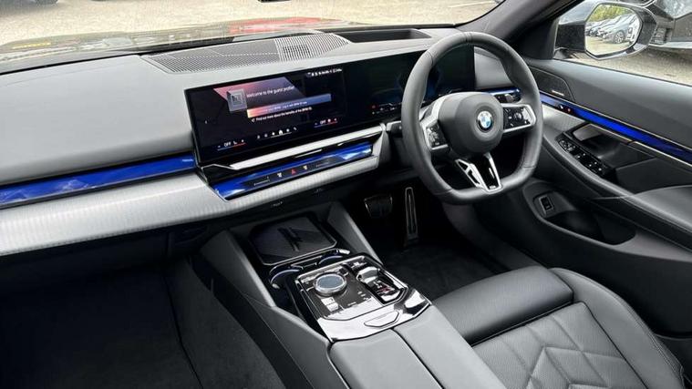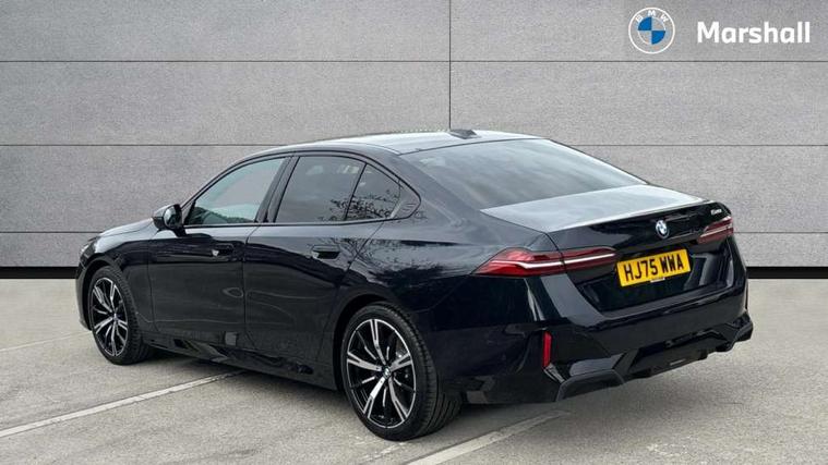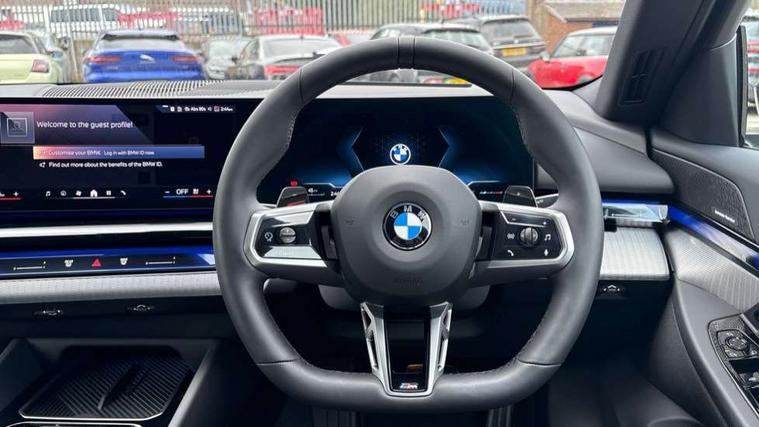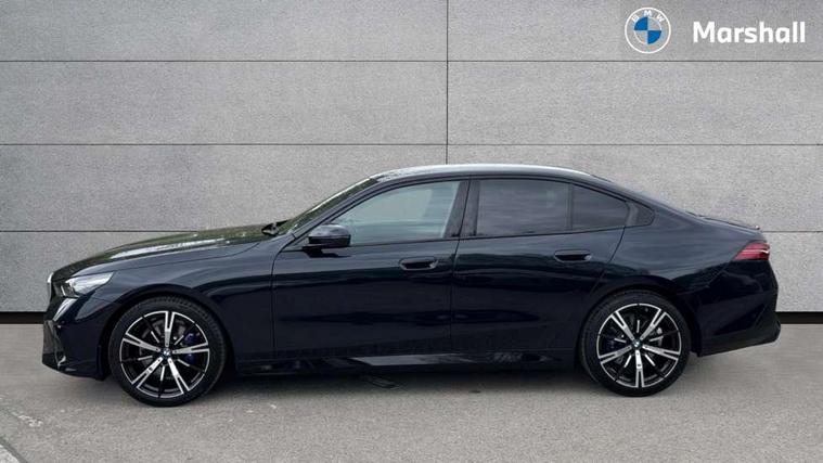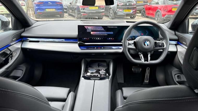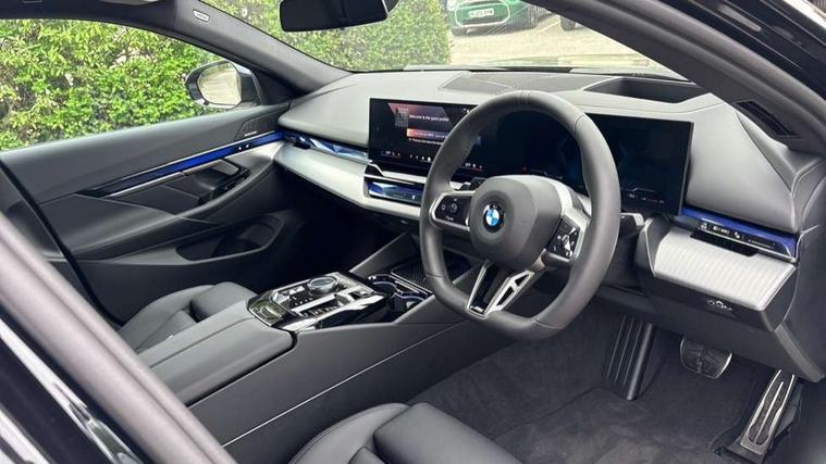 BMW ConnectedDrive online services, BMW legal emergency call, BMW Teleservices, Brake pad wear indicator, Cruise control with brake assist, Driving Assistant Plus Preparation, Front collision warning with brake intervention, Lane departure warning with active return, Left turn warning with brake function, Multifunctional instrument panel, Oil sensor for level and grade, On board computer inc. average speed, fuel consumption, liquid crystal Info display, journey computer, outside temperature display, personal profile, On-board diagnosis - OBD, PAS, Personal e-SIM, Powered by Operating System 7.0, Run flat indicator, Service interval indicator, Speed limit Info with manual speed limit assist, Stop/start button, 8 speed automatic steptronic transmission with gearshift paddles, DAB tuner, Acoustic glazing, Adaptive LED Headlights, Automatic cornering lights, Automatic windscreen wipers and automatic headlight, BMW selective beam, Body colour door handles, Body coloured bumpers, Dynamic brake lights with LED technology, Electric adjustable door mirrors, Electric front and rear windows with fingertip open/close + anti-trap facility and comfort closing function, Follow me home headlight function, Headlight elements in blue, Heated windscreen washer jets, LED daytime running lights, LED third brake light, Light colour close to that of ordinary daylight, Optimum, homogeneous illumination of the road, Rear boot, Rear side wing doors, 2 zone automatic air conditioning, 3 seat bench in 2nd row, 3 spoke leather M steering wheel in BMW M specific design with M badge, Armrest - front and rear integrated door trim, centre console includes storage compartment, rear centre includes 2 cupholders, Child seat ISOFIX attachment with rear outer seats includes top tether, Coat hook on upper B-pillar panel, Electric adjustable steering column, Electrically adjustable lumbar support for driver and front passenger, Heated driver and front passenger seats, High-gloss black door switch cluster, power window switch and tailgate button on first and second row seat, M Anthracite headlining, M Sport pedal covers in stainless steel, Rear headrests, Single front passenger seat, Through loading system with 40/20/40 rear seat backrest split, Velour floormats, Wireless charging tray, Ambient lighting pack - 5 Series/I5, Connected package professional - 5 Series/I5, Driving assistance pack - 5 Series/I5, Expanded exterior mirror package - 5 series/I5, M high gloss shadow line pack - 5 Series/ I5, M Sport exterior styling pack - 5 Series/I5, 3 rear three point seatbelts, Active protection, Airbag deployment is controlled with respect to the intensity and scope, Anti-lock braking system (ABS), Brake assist, Brake energy regeneration, Cornering brake control (CBC), Crash sensor activating central locking release, hazard warning lights, fuel cut off and interior lighting, Driver and front passenger airbags, Driver central airbag, Driver/front passenger side airbags, DSC - Dynamic Stability Control, Dynamic brake control, Dynamic Traction Control - DTC, Electromechanical parking brake with automatic drive away release and auto hold function, Electronic brake force distribution, Engine drag torque control, Front and rear brake discs with interior ventilation, Front and rear curtain airbags, Front head restraints with anti-whiplash, Head airbags for first and second row seats, Hill start assist, Locking of doors after driving off, M Sport brake in blue high gloss painted brake callipers with monochrome logo on front calliper, Mechanical child proof lock on rear doors, PC iBrake PostCrash approach control warning with light braking function, Side impact protection, Trailer stability control, Two tone horn, Tyre pressure monitoring system, Warning triangle and first aid kit, Alarm system, Locking wheel bolts including wheel bolt adapter, Tyre repair kit plus,
