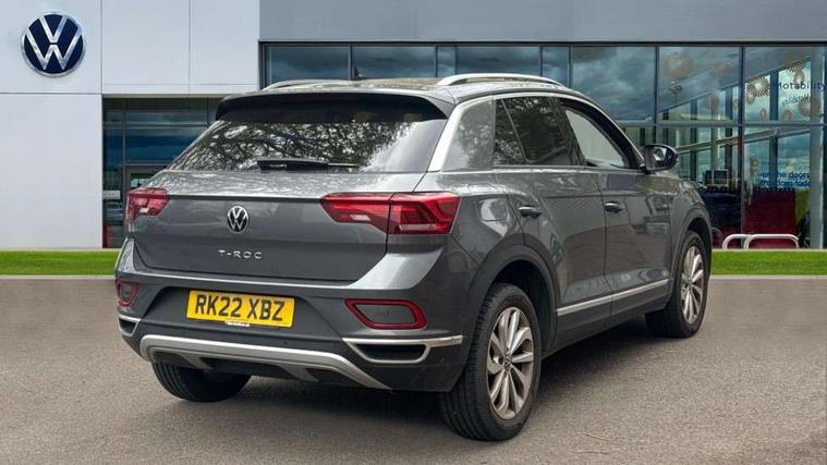 10.25" Digital cockpit pro, Bluetooth mobile phone interface, Driver alert system with fatigue detection, Driver tips and journey analysis, Emergency call service, Lane keeping system Lane Assist, Modified key software - reduce switch off time for key status change to Long no motion, Online services, Park assist including front and rear parking sensors, Service interval indicator, Tailgate/trunk lid release from outside, Think blue trainer driver tips and journey analysis, Warning sound and light for front seatbelts unfastened, Wireless app connect, Battery regeneration during braking, Start/stop function with battery regeneration, Diversity antenna for FM reception, Front and rear 6 speakers, Music playback - MP3, WMA and AAC files, Premium USB cable in choice of either Apple or Android smartphone compatibility, SD card slot, Simultaneous pairing of 2 compatible mobile devices, Title and cover art display, We Connect and We Connect Plus functionality, 3rd brake light, Auto dimming interior rear view mirror, Automatic hazard lights activation under emergency braking, Automatic headlight control with LED separate daytime running lights with coming/leaving home function, Body colour sports bumpers with silver metallic underbody fascia, Dynamic headlight range control with self adjusting whilst driving, Extended roof spoiler, Exterior mirrors aspherical on driver side, convex on front passenger side, External USB type C socket and charging sockets, Front windscreen wiper with intermittent wipe and 4 position delay, Heated rear window, LED Plus headlamps, LED rear combination lamps, LED rear number plate lights, LED tail lamp rear comination lamps, Light mode for poor weather, rain, fog or snow, Power windows with comfort operation and circuit breaker, Rain sensor, Rear exhaust tailpipe, Rear fog light on one side and reversing lights on both sides, Rear side wing doors, Rear wash/wipe with intermittent wipe setting, Remote electrically foldable door mirrors, puddle lights and reverse activated passenger's door mirror, 12V power socket in centre console, 3 rear head restraints, 3 seat bench in 2nd row, 4 load lashing points in luggage compartment, Air care climatronic air conditoning system with active combination filter and 2-zone temperature control, Chrome plated radiator grille inserts, air vent surrounds and light switch surrounds, Door and side trim panel with leatherette insert, Drawer under drivers seat, Front + rear carpet mats, Front centre armrest, Front comfort sports seats, Front cupholders x 2, Front footwell illumination, Instrument lighting, white adjustable panel illumination, Interior ambient lighting and surround lighting, Interior light delay, Isofix child seat preparation, Leather gearshift handle, LED interior light with switch off delay/dimmer and 2 front/rear LED reading lights, Load-through provision with cup holder when folded down ('Unsplit rear seat bench, split folding backrest, with centre armrest), Luggage compartment lighting, Non-folding front passenger seat backrest, Single front passenger seat, Storage compartment in left and right luggage area, Storage compartment in rear doors, Storage compartments in driver and front passenger doors, Sunvisors with illuminated vanity mirrors, Variable boot floor, height adjustable and removable, Driver assistance pack - T-Roc, 3 point height adj front seatbelts + pretensioners, 3 point seatbelts in outer rear with ECE label, ABS, Child locks on rear doors, Driver and front passenger airbag with front passenger airbag deactivation, Driver and front passenger safety-optimised head restraints, Drivers seatbelt reminder, Electronic parking brake, Electronic Stability Control (ESC) inc EDL (Electronic Differential Lock) and ASR (Traction Control), Front and rear passengers curtain airbag system including front side airbags, Front assist with city emergency braking and pedestrian monitoring, Front seat side impact airbags, Predictive pedestrian protection, Rear disc brakes, Single tone horn, Tyre pressure loss indicator, Volkswagen roadside assistance, Alarm with interior protection, Anti-theft alarm system with interior monitoring, backup horn, and towing protection, Remote central locking with SAFELOCK, radio remote control with 2 remote control folding keys, Trims for alloy wheels,