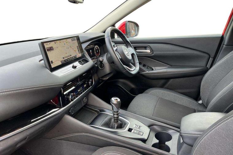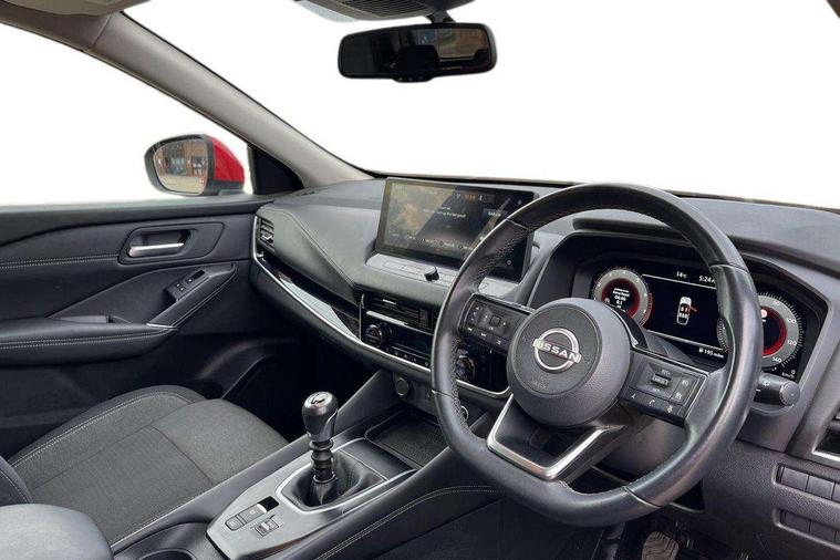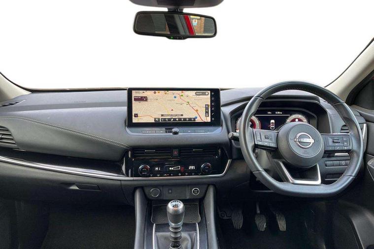 Android auto/Apple CarPlay (Wired), Blind spot warning, Drive modes (sport, normal, eco), Electric speed sensitive power steering, Emergency and breakdown call, Front and rear parking sensors, Full Digital 12.3" TFT Digital Combimeter, Google maps services - search, weather, 3D maps and Google street view, Idle stop/start system, Intelligent around view monitor, Intelligent Cruise control (ICC), Intelligent driver alert system, Intelligent forward collision warning, Intelligent lane intervention, Lane departure prevention, Lane departure warning system, Maximum speed limiter, Moving object detection, Nissan connect 12.3 inch touchscreen infotainment system, Nissan connect navigation, Push button starter, Rear cross traffic alert, Rear view camera, Remote control services - door locks, lights, horn and car locator, Telematics - notifications and connectivity services, TomTom live traffic services, Traffic sign recognition with legal speed adjustment, Trip computer, Virtual personal assistant and firmware over the air capability, Wireless apple carplay, 6 speakers, AM/FM audio system with DAB, Bluetooth audio streaming, Front USB connections (Type-A and Type-C), Rear USB charging only ports (Type-A and Type-C), Auto dimming rear view mirror, Auto rear wiper when reversing, Automatic hazard signal with emergency stop signal, Body colour mirror caps, Body coloured door handles, Bodyside mouldings, Chrome side window finisher, Door handle with button, Dusk sensor, Electric auto folding door mirrors, Electrically adjustable and heated door mirrors with LED turn indicator, Follow me home headlights, High beam assist, Intelligent auto headlights, LED daytime running lights, LED Headlights, LED rear lights, One touch front and rear electric windows with remote opening and closing, Partially body coloured bumpers, Privacy glass, Rear bumper with graphite insert, Rear reversing light (bulb lighting), Rear roof spoiler, Rear side wing doors, Rear styling plate, Shark fin antenna, Splash free rain sensing wipers, Super UV and infrared cut glass, Three blink turn signal, 12v power socket in dashboard and luggage, 2 way electrical driver lumbar adjustment, 2x Rear coat hooks, 3 bench rear seats in 2nd row, 3 rear headrests, 4 folding assist grip, 6 Luggage hooks - 4 on floor, 2 on side, 6-way manually adjustable driver's seat, 60/40 split folding rear seat bench, Ambient lighting around centre console, Centre console storage tray, Chrome interior door handles, Cloth monoform upholstery, Driver and front passenger sunvisors with illuminated vanity mirrors, Driver seat back pocket, Dual zone automatic climate control with pollen filter, Front and rear door storage, Front centre console and armrest, Front cupholders x 2, Front door with bottle holders, Glovebox with light, Hard trunk cover, Height adjustable front headrests, Height adjustable passenger seat, Leather shift knob, Leather steering wheel, Luggage board system, Luggage space lighting, Manually adjustable passenger (slide recline + lifter), Multifunction steering wheel, Passenger seat back pocket, Rear armrest with 2 cupholders, Rear door bottle holders, Single front passenger seat, Soft PVC kneepad, Steering wheel switches, Sunglasses holder, Tilt/telescopic adjustable steering wheel, Two rear isofix child seat anchorage points with top tether, Welcome light and console tray ambient lighting, 3x3 point rear seatbelt pretensioners + load limiters, ABS with EBD and brake assist, Active brake limited slip, Auto hold function, Child locks on rear doors, Curtain and front side, far side airbags, Driver and passenger airbags, Driver, passenger and 2nd row rear seat belt reminder, Electronic parking brake, Front seatbelt pretensioners + load limiters, Height adjustable front seatbelts, Hill start assist, Intelligent blind spot intervention, Intelligent front emergency braking with pedestrian, cyclist recognition and junction assist, Intelligent rear automatic braking, Tyre pressure monitoring system, Vehicle dynamic control, Capless fuel filler, Engine immobiliser, Nissan i-key, Remote central door locking with deadlocking, Thatcham Cat.1 alarm, Interior instrumental panel B finisher, 18" Diamond cut alloy wheels, Tyre puncture repair kit,