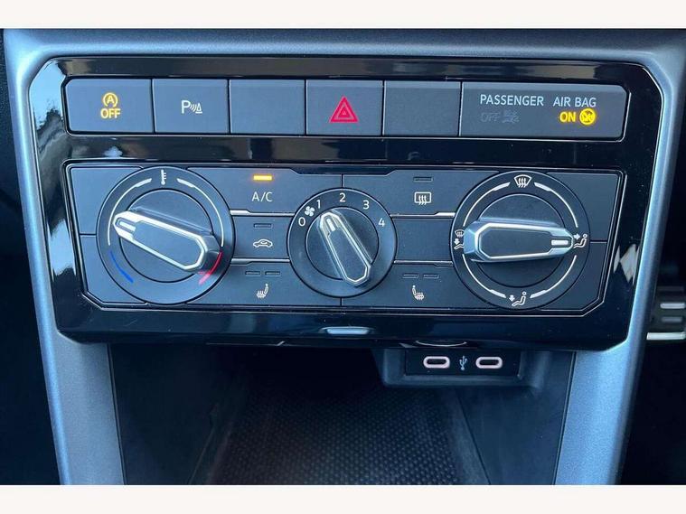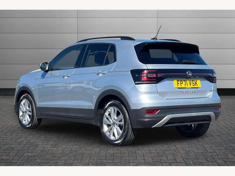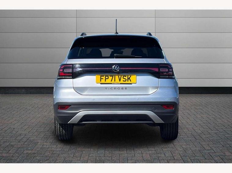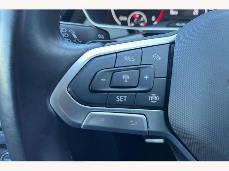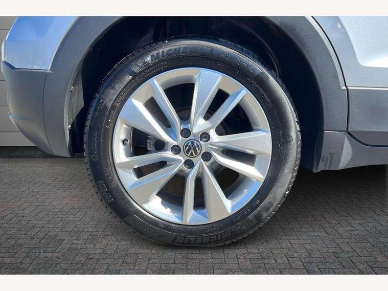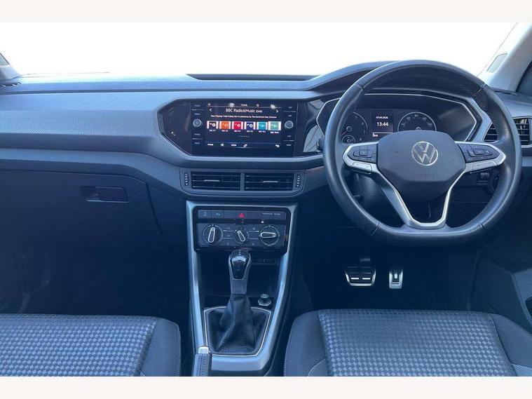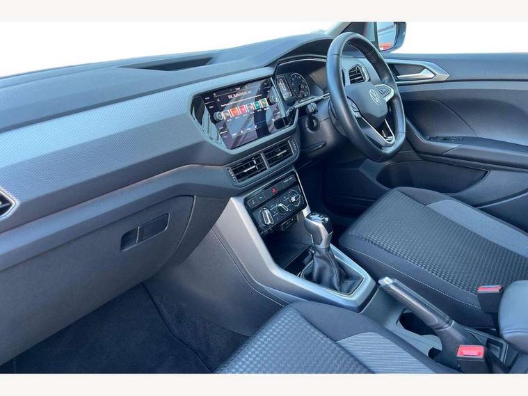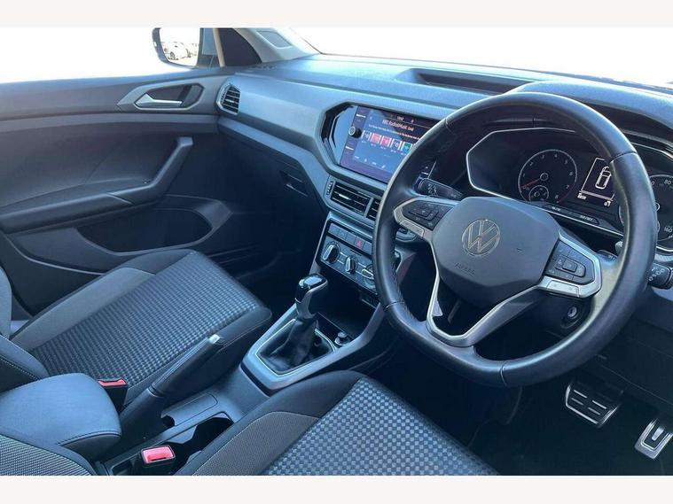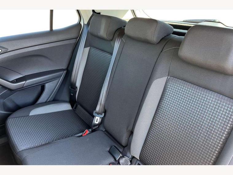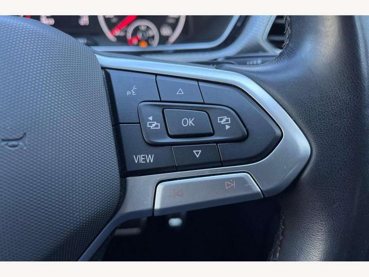 'Lights On' Reminder warning buzzer, Adaptive cruise control including front assist, forward collision warning, autonomous emergency braking, speed limiter, Blind spot monitoring, Bluetooth telephone and audio connection for compatible devices, Car information display, Driver alert system, eCall emergency call system, Lane assist, Low washer fluid warning light, Multifunction computer with visual gear change recommendation for fuel consumption, Operating permit alteration, Power assisted speed sensitive steering, Speedo, rev counter, electronic odometer, trip, service interval display, exterior temperature and fuel gauge, Stop/start system, Warning sound and light for doors and tailgate open, Warning sound and light for front seatbelts unfastened, We Connect Go Dongle, Wireless Car net app connect with Apple CarPlay, combined functionality of Apple CarPlay/Android Auto and MirrorLink, Battery regeneration during braking, Misfuel prevention device, 2x USB connection with USB charging sockets and in rear centre console, DAB Digital radio receiver, Diversity antenna for FM reception, Multi device interface (MDI) with USB connection, Music playback - MP3, WMA and AAC files, Premium USB cable for Apple or Android smartphone compatibility, Simultaneous pairing of 2 compatible mobile devices, Title and cover art display, 3D active badge on B-pillar, Active door sills, Active sill panel trims, Automatic hazard lights activation under emergency braking, Black roof rails, Body colour door handles, Body coloured bumpers, Dusk sensor + automatic driving lights, Electrically foldable, adjustable and heated door mirrors with reverse activated kerb view adjustment on passenger's side, Front and rear electric windows, Front fog lights with static cornering function, Galvanised body, Heated rear window, High level 3rd brake light, Lower door sills and door pillars in black, Radiator grille with high gloss surface and chrome strip, Rear fog light on one side, reversing light on both sides, Rear lights incorporating LED technology, Rear side wing doors, Rear tinted glass 65% approx light absorbing from B pillar backwards, Rear window aerial, Rear windscreen washer and wiper with interval delay, Reflectors in all doors, Tailgate with integrated roof spoiler, Windscreen wipers/ intermittent wipe + 4 position delay, 12V Accessory socket in centre console, 3 rear head restraints and 3 rear three point seat belts with ECE label, 3 seat bench in 2nd row, 60/40 split folding rear seat backrest, Ambient lighting and sourround lighting, Brushed stainless steel pedals, Drawer under drivers seat, Driver and front passenger sunvisor with vanity mirror, Driver's sunvisor with ticket holder, Dust and pollen filter, Front + rear carpet mats, Front and rear reading lights X 2, Front centre armrest with storage compartment, Front seat back storage pockets, Front seats with adj lumbar support, Glovebox, Heating and fresh air system with 4 stage blower, Height/reach adjust steering wheel, Instrument lighting white adjustable panel illumination, Interior light with delay, Isofix child seat preparation for 2 rear child seats, Luggage compartment cover, Luggage compartment lighting, Moveable and foldable Rear bench seat, Single front passenger seat, Storage compartment in drivers and front passengers door, Three spoke multi-function leather trimmed steering wheel and gearknob, Trapeze cloth upholstery, Variable boot floor, Winter pack - T-cross, Anti-lock Braking System (ABS) with Hydraulic Brake Assist (HBA), Automatic post collision braking system, Driver and front passenger safety-optimised head restraints, Drivers and Front Passengers airbags with front passengers airbag deactivation switch, ESC with EDL, ASR, EDTC and trailer stabilisation function, Extended and proactive pedestrian protection, Front and rear curtain airbags, Front seat side impact airbags, Height adjustable 3 point automatic front seatbelts with pretensioners, Hill start assist, Pre crash preventive occupant protection, Rear door child safety locks, Rigid safety cell with front and rear crumple zones, Single torn horn, Tyre pressure loss indicator, Volkswagen roadside assistance, Alarm with interior protection and deactivation via infotainment system, Child security locks in rear doors, Electronic engine immobiliser, Remote tailgate unlocking using key fob, Decorative strips in doors in matt silver/ center console, 17" Clayton alloy wheels + anti theft wheel bolts, Breakdown kit,