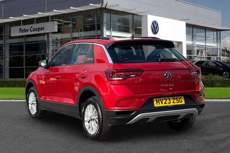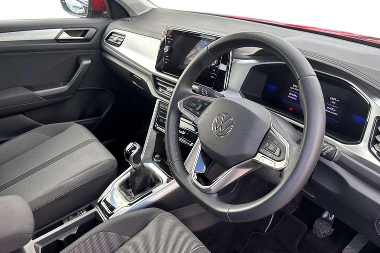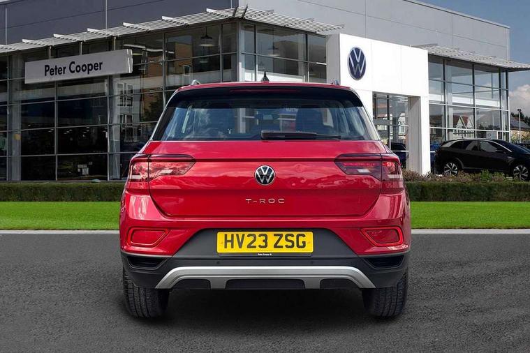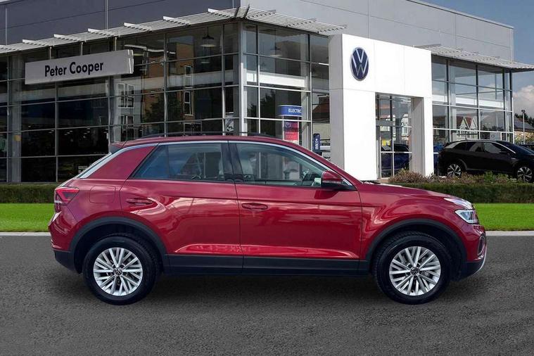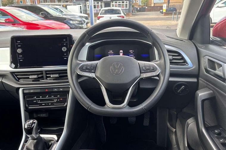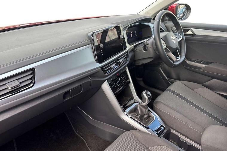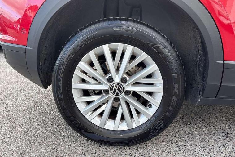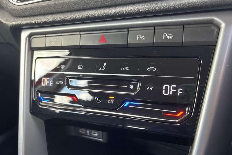 Bluetooth mobile phone interface, Driver alert system with fatigue detection, Driver tips and journey analysis, Emergency call service, Lane keeping system Lane Assist, Modified key software - reduce switch off time for key status change to Long no motion, Online services, Park assist including front and rear parking sensors, Power assisted speed sensitive steering, Service interval indicator, Tailgate/trunk lid release from outside, Think blue trainer driver tips and journey analysis, Warning sound and light for front seatbelts unfastened, Wireless app connect, Battery regeneration during braking, Front shock absorption, Rear shock absorption chassis with increased ride height, Start/stop function with battery regeneration, DAB Digital radio, Diversity antenna for FM reception, Front and rear 6 speakers, Music playback - MP3, WMA and AAC files, Premium USB cable in choice of either Apple or Android smartphone compatibility, SD card slot, Simultaneous pairing of 2 compatible mobile devices, Title and cover art display, We Connect and We Connect Plus functionality, 3rd brake light, Auto dimming interior rear view mirror, Automatic hazard lights activation under emergency braking, Automatic headlight control with LED separate daytime running lights with coming/leaving home function, Black roof rails, Body coloured bumpers and radiator grille with chrome trim and front fog lamps with chrome bezel, Body coloured exterior mirror housings and door handles, Extended roof spoiler, Exterior mirrors aspherical on driver side, convex on front passenger side, External USB type C socket and charging sockets, Front windscreen wiper with intermittent wipe and 4 position delay, Heated rear window, LED Headlights, LED rear combination lamps, LED rear number plate lights, LED tail lamp rear comination lamps, Power windows with comfort operation and circuit breaker, Rain sensor, Rear exhaust tailpipe, Rear fog light on one side and reversing lights on both sides, Rear side wing doors, Rear wash/wipe with intermittent wipe setting, Remote electrically foldable door mirrors, puddle lights and reverse activated passenger's door mirror, 12V power socket in centre console, 3 rear head restraints, 3 seat bench in 2nd row, 4 load lashing points in luggage compartment, Air care climatronic air conditoning system with active combination filter and 2-zone temperature control, Ambient lighting with mirror logo projection, Cloth upholstery, Door and side trim panel in cloth, Drawer under drivers seat, Driver/front passenger seat height adjustment, Front centre armrest, Front comfort sports seats, Front cupholders x 2, Front reading light, Instrument lighting, white adjustable panel illumination, Interior light delay, Isofix child seat preparation, Leather gearshift handle, Load-through provision with cup holder when folded down ('Unsplit rear seat bench, split folding backrest, with centre armrest), Luggage compartment lighting, Lumbar support for driver's and front passengers seat, Non-folding front passenger seat backrest, Single front passenger seat, Storage compartment in left and right luggage area, Storage compartment in rear doors, Storage compartments in driver and front passenger doors, Sunvisors with illuminated vanity mirrors, Variable boot floor, height adjustable and removable, Driver assistance pack without proactive passenger protection - T-Roc, 3 point height adj front seatbelts + pretensioners, 3 point seatbelts in outer rear with ECE label, ABS, Child locks on rear doors, Driver and front passenger airbag with front passenger airbag deactivation, Driver and front passenger safety-optimised head restraints, Drivers seatbelt reminder, Electronic parking brake, Electronic Stability Control (ESC) inc EDL (Electronic Differential Lock) and ASR (Traction Control), Front and rear passengers curtain airbag system including front side airbags, Front assist with city emergency braking and pedestrian monitoring, Front disc brakes, Front seat side impact airbags, Hill start assist, Predictive pedestrian protection, Rear disc brakes, Single tone horn, Tyre pressure loss indicator, Volkswagen roadside assistance, Alarm with interior protection, Anti-theft alarm system with interior monitoring, backup horn, and towing protection, Remote central locking with SAFELOCK, radio remote control with 2 remote control folding keys, Pewter matt decorative inserts for intrument panel, centre console and door panels at the front, Trims for alloy wheels,