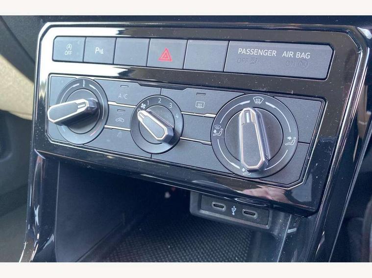 'Lights On' Reminder warning buzzer, Adaptive cruise control including front assist, forward collision warning, autonomous emergency braking, speed limiter, Blind spot monitoring, Bluetooth telephone and audio connection for compatible devices, Car information display, Digital cockpit, Driver alert system, eCall emergency call system, Lane assist, Low washer fluid warning light, Multifunction computer with visual gear change recommendation for fuel consumption, Operating permit alteration, Power assisted speed sensitive steering, Speedo, rev counter, electronic odometer, trip, service interval display, exterior temperature and fuel gauge, Stop/start system, Warning sound and light for doors and tailgate open, Warning sound and light for front seatbelts unfastened, We Connect Go Dongle, Wireless Car net app connect with Apple CarPlay, combined functionality of Apple CarPlay/Android Auto and MirrorLink, Battery regeneration during braking, Misfuel prevention device, 2x USB connection with USB charging sockets and in rear centre console, DAB Digital radio receiver, Diversity antenna for FM reception, Multi device interface (MDI) with USB connection, Music playback - MP3, WMA and AAC files, Premium USB cable for Apple or Android smartphone compatibility, Simultaneous pairing of 2 compatible mobile devices, Title and cover art display, Automatic hazard lights activation under emergency braking, Black door mirrors, Black roof rails, Body colour door handles, Body coloured bumpers, Dusk sensor + automatic driving lights, Electrically foldable, adjustable and heated door mirrors with reverse activated kerb view adjustment on passenger's side, Front and rear electric windows, Front fog lights with static cornering function, Galvanised body, Heated rear window, LED third brake light, Lower door sills and door pillars in black, Radiator grille with high gloss surface and chrome strip, Rear fog light on one side, reversing light on both sides, Rear lights incorporating LED technology, Rear side wing doors, Rear tinted glass 65% approx light absorbing from B pillar backwards, Rear window aerial, Rear windscreen washer and wiper with interval delay, Reflectors in all doors, Tailgate with integrated roof spoiler, Windscreen wipers/ intermittent wipe + 4 position delay, 12V Accessory socket in centre console, 3 rear head restraints and 3 rear three point seat belts with ECE label, 3 seat bench in 2nd row, 60/40 split folding rear seat backrest, Comfort front sport seats, Diag cloth upholstery, Drawer under drivers seat, Driver and front passenger sunvisor with vanity mirror, Driver's sunvisor with ticket holder, Dust and pollen filter, Front + rear carpet mats, Front and rear reading lights X 2, Front centre armrest with storage compartment, Front seat back storage pockets, Front seats with adjustable lumbar support, Glovebox, Heating and fresh air system with 4 stage blower, Height/reach adjust steering wheel, Instrument lighting white adjustable panel illumination, Interior light with delay, Isofix child seat preparation for 2 rear child seats, Luggage compartment cover, Luggage compartment lighting, Manual air conditioning, Moveable and foldable Rear bench seat, Storage compartment in drivers and front passengers door, Three spoke multi-function leather trimmed steering wheel and gearknob, Variable boot floor, Anti-lock Braking System (ABS) with Hydraulic Brake Assist (HBA), Automatic post collision braking system, Driver and front passenger safety-optimised head restraints, Drivers and Front Passengers airbags with front passengers airbag deactivation switch, ESC with EDL, ASR, EDTC and trailer stabilisation function, Front and rear curtain airbags, Front disc brakes and rear drum brakes, Front seat side impact airbags, Height-adjustable front three-point seat belts with tensioners, Hill start assist, Pre crash preventive occupant protection, Rear door child safety locks, Rigid safety cell with front and rear crumple zones, Single torn horn, Tyre pressure loss indicator, Volkswagen roadside assistance, Alarm with interior protection and deactivation via infotainment system, Child security locks in rear doors, Electronic engine immobiliser, Remote tailgate unlocking using key fob, Decorative inserts transition high gloss black/platnium grey, 17" Manila black diamond turned surface alloy wheels + anti theft wheel bolts, Breakdown kit,