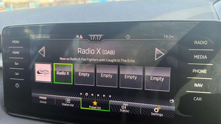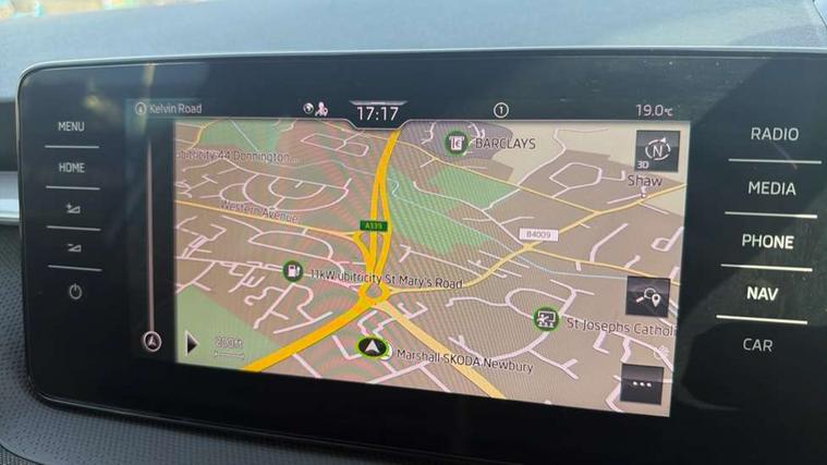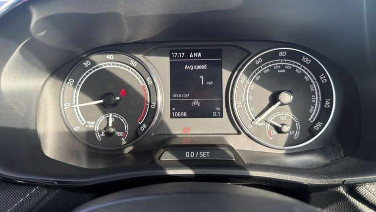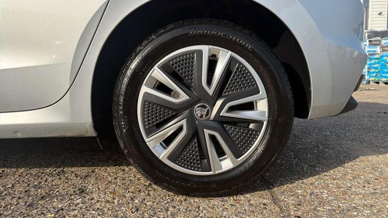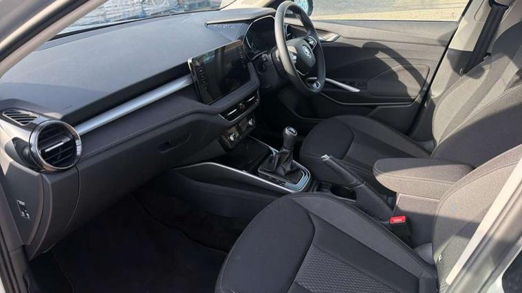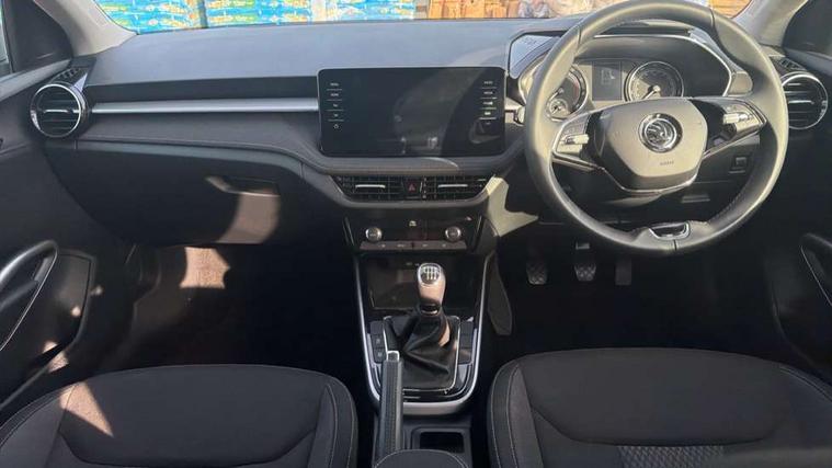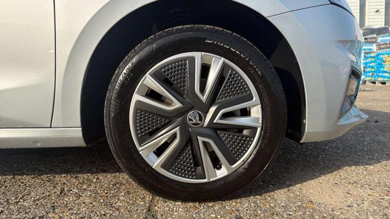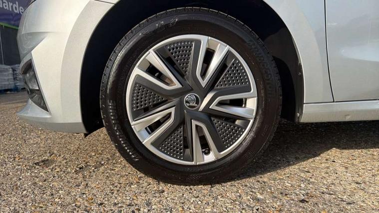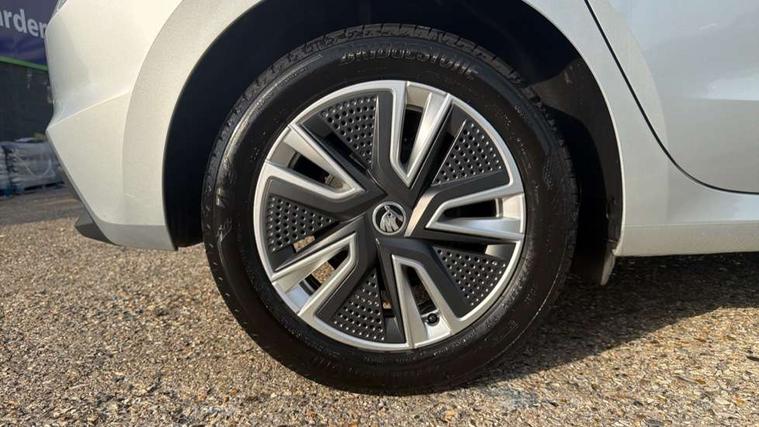 Bluetooth connection, Driver alert system - DAS, Electromechanical power steering, Exterior temperature gauge, Service interval indicator, 2x USB-C in the front (for data transmission and charging), 6 Speakers (4 in front and 2 in rear), Auxiliary socket for external MP3 player, DAB digital radio reception, Web radio, Auto dimming rear view mirror, Basic LED Headlights, Body colour door mirrors, Body coloured bumpers, Chrome window surround, Door mirror integrated indicators, Electrically adjustable and heated door mirrors, Front and rear electric windows, Front fog lights, Front window wiper intermittent control, Headlight range control - Automatic, Ice scraper in fuel cap, LED daytime running lights with coming and leaving home feature, Rain sensor, Rear LED fog light, Rear side wing doors, Rear window wiper with washing nozzles, Roof mounted spoiler, SKODA tailgate lettering in chrome, Third brake light, 3 rear headrests, Backrest split and folding, Central console with fixed cup holder and storage box, Chrome handbrake release button, Comfort seats, Fabric upholstery, Front centre armrest, Gearshift knob/handle in leather, Hand brake lever handle in leather, Height adjustable front headrests, Height adjustable front seats, Height adjustable steering wheel, ISOFIX and TopTether anchorage points to the outer rear seats, ISOFIX and TopTether on the front passenger seat, Luggage compartment lighting, Manually adjustable lumbar support in front seats, Pollen filter, Rear seat bench unsplit, Removable cup holder, Single front passenger seat, Storm grey headlining, Sun visors with mirror and airbag label on passenger side, Textile floor mats, Ticket holder, Umbrella in drivers door, 3-point height adjustable front seats belts with pretensioner and force limiter, Automatic warning lights in case of crash, Driver and passengers airbag with switch off function, e-Call+, ESC including ABS, MSR, ASR, EDS, HBA and XDS, Front and rear seat belt warning, FRONT ASSIST (AEB City and AEB Inter Urban), Front side airbags, Head airbags, One tone horn, Pedestrian protection, Three rear 3-points safety seat belts with pretensioner and force limiter including stop function for outer rear seat belts, Tyre pressure monitoring system, Anti-theft alarm system including immobiliser, interior monitoring, backup horn, and towing protection, Central locking with radio remote control, interior controls, SAFE function and 2 foldable keys, KESSY - Keyless engine start/stop, Chrome edged air vents, Satin black door and side trim panel in front, Anti-theft wheel bolts protection, Super-low rolling resistance tyres,