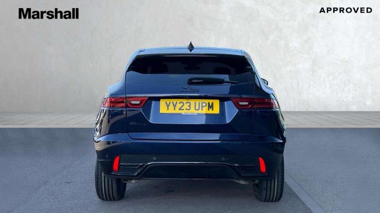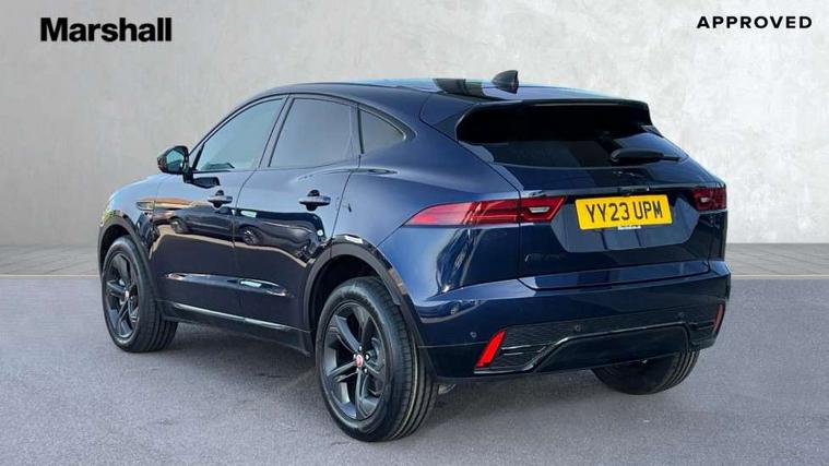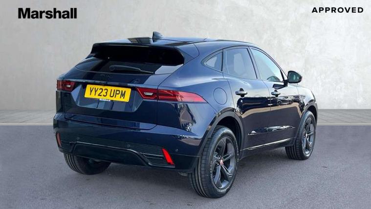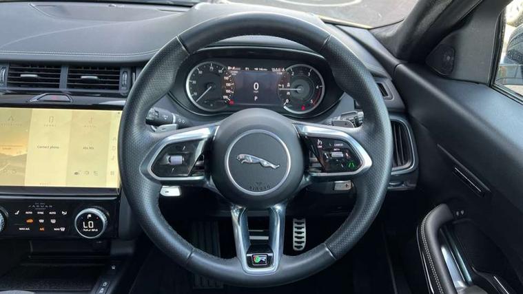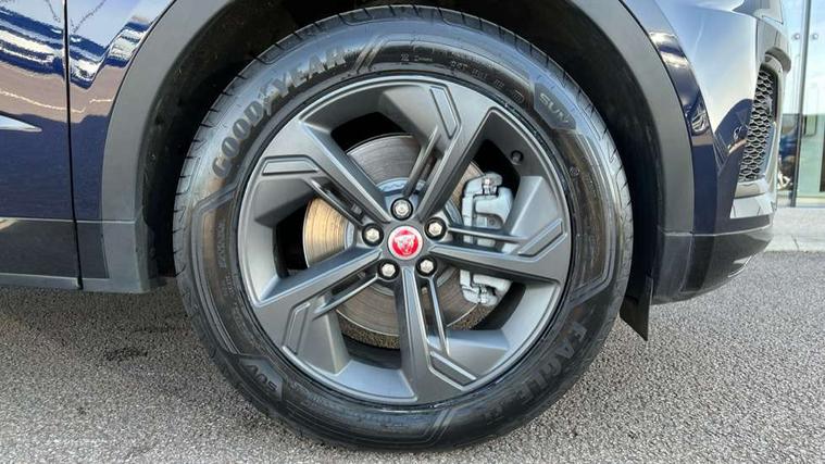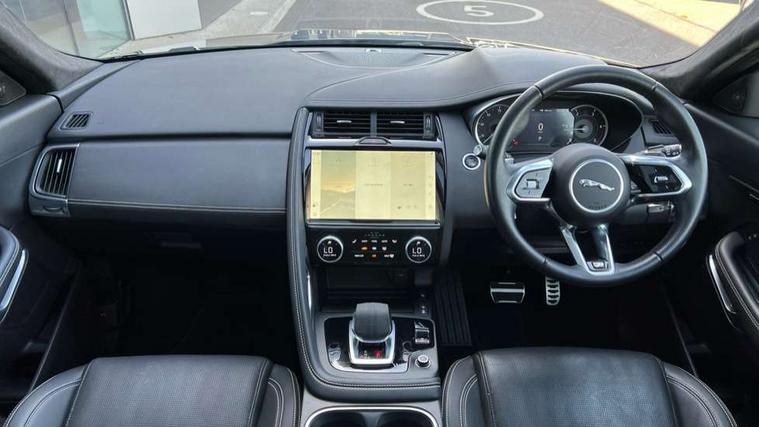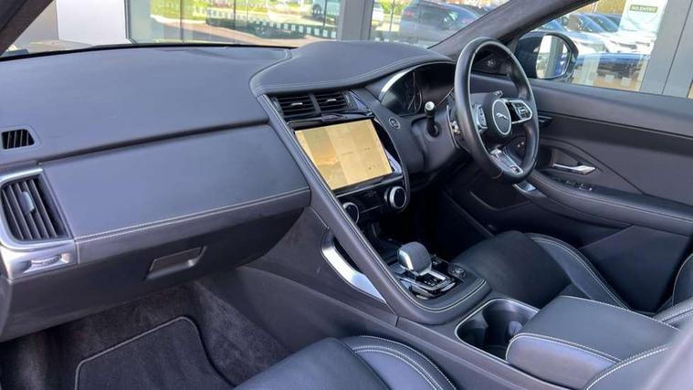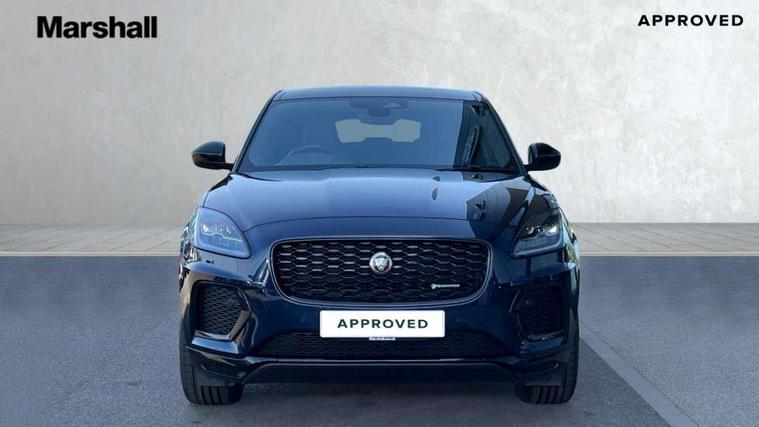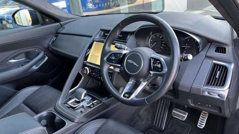 11.4" touchscreen with central ICP, 12.3" full digital instrument panel, Adaptive cruise control, Android Auto, Apple car play, Driver condition monitor, Eco driving style assistant, Electric power assisted steering, Emergency services call system, Front and rear parking aid, InControl remote, Jaguar drive control with adaptive surface response, Jaguar Toggle sport shift selector, Lane keep assist, Outside temperature gauge, Pivi pro connected infotainment system with smart settings and navigation pro, Push button start, Speed proportional steering, Traffic sign recognition with adaptive speed limiter, Trip computer, Voice control system, Configurable dynamics, Diesel particulate filter, Efficient Driveline, Passive suspension, AM/FM DVD MP3 radio, Bluetooth connectivity including audio streaming, DAB digital audio broadcast, Dynamic volume control, 3 flash lane change indicators, Approach Illumination, Auto high beam assist, Automatic headlights, Body colour door handles, Body colour upper spoiler, Body coloured side sills, Centre high-mounted stop light, Electric front/rear windows with one touch/auto up/down, Electric heated/power fold memory door mirrors with approach lights and auto dimming driver side, Embossed leaper for grained and windsor leather, Fixed panoramic glass sunroof, Heated washer jets, Heated windscreen, Jaguar script and leaper, LED tail lights, LED third brake light, Narvik black antenna pod and side pillar finisher, Narvik black door mirrors, Narvik black front and rear low bumpers, Narvik black lower side cladding, Privacy glass, R Dynamic badge, Rain sensor windscreen wipers, Rear fog lights, Rear side wing doors, Rear wash wiper, Satin black grained front outer grille, low grill mesh and low bumper valence, side fender vent mesh and finisher, rear tow eye cover and grille mesh, Twin exhaust tailpipe, Variable front intermittent wipers, 3 rear head restraints, 3 seat bench in 2nd row, 40:20:40 rear seat fold, Bright metal pedals, Carpet mats, Centre console with armrest, Enhanced ambient lighting, Hooks loadspace, ISOFIX on outer rear seats, Loadspace cover, Loadspace light, Loadspace storage net, Luggage tie-downs in loadspace, Manual height/reach adjust steering wheel, Multifunction steering wheel, Overhead lighting console, Passive front head restraints, Power sockets, R-Dynamic branded leather steering wheel, Rear air vents, Rear bench seats, Satin chrome gearshift paddles, Single front passenger seat, Sunvisors with illuminated vanity mirrors, Twin front cupholders, Two zone climate control, Exterior black pack - E-pace, 3x3 point rear seatbelts, ABS, All surface progress control (ASPC), Child locks on rear doors, Customer configurable autolock, DSC - Dynamic Stability Control, Electronic brake force distribution, Electronic parking brake, Emergency brake assist, Emergency braking, Front airbags with passenger seat occupant detector, Front and rear curtain airbags, Front and rear seatbelt reminder, Front passenger airbag deactivation, Front seatbelt pretensioners, Front side airbags, Height adjustable front seatbelts, Hill start assist, Low friction launch, Power child locks, Torque vectoring brake, Tyre pressure monitoring system, Intrusion sensor and alarm, Locking wheel nuts, Remote central locking,